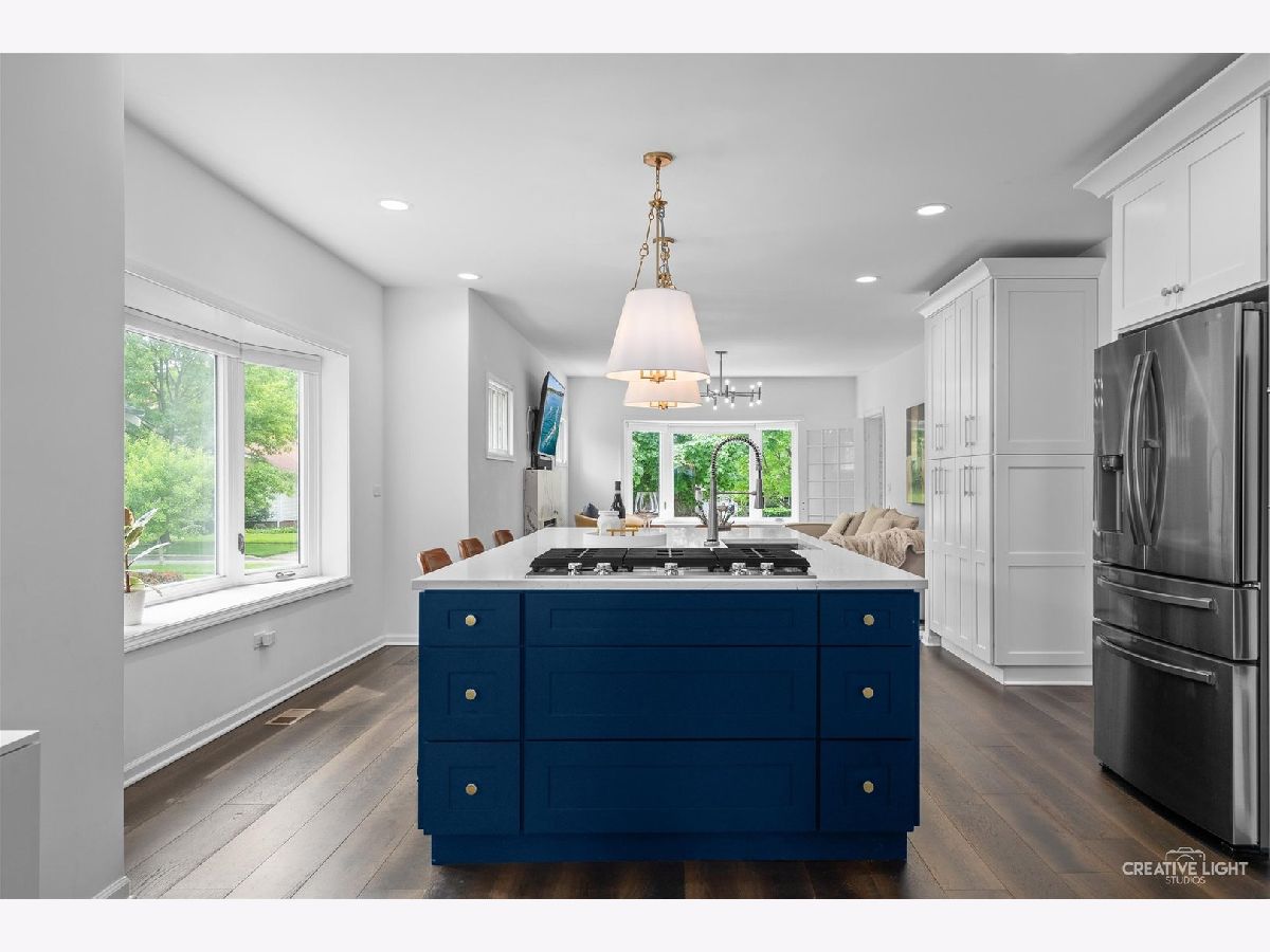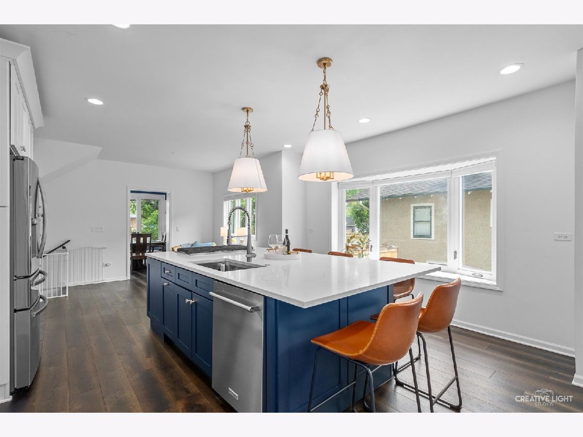 Experience the vibrant lifestyle of downtown Naperville with this stunning residence that perfectly blends modern elegance with vintage charm. Recently remodeled in 2022, this home is conveniently located just two blocks away from the Naperville Metra Train Station and only a few short blocks from the heart of downtown Naperville. The house boasts beautiful hardwood floors, high-end lighting, and large windows that allow for abundant natural light. The family room and kitchen are the heart of the home and provide a warm and welcoming space for family gatherings and entertaining. The family room features a wood-burning fireplace and a marble surround, while the kitchen is centered around a huge 11' x 5' island with high-end KitchenAid stainless steel built-in range with drop down vent, oven and microwave with convection feature, quartz countertops, and nearly floor-to-ceiling white cabinets. Enjoy your formal meals in the lovely dining room located off the back of the house overlooking the beautiful yard. The first floor of the house includes a bedroom with an adjacent full bath, perfect for in-laws or guests, and a private office. Upstairs, there's a loft area that could make a second office or homework area. The luxurious primary suite features a spacious walk-in closet, a primary bath with beautiful marble tile, and a large walk-in shower. Two additional bedrooms on the second floor are serviced by the hall bath. Doing laundry is made super convenient with the washer and dryer system located on the second floor just outside the master bedroom. The finished basement offers even more living space, with a flex room that could be used as an office or playroom, a second laundry room with a smart washer-dryer, and another full bath. You will never run out of storage with three storage rooms available. Outside, there is a large brick paver patio, fully fenced private backyard, and a two-car garage. This home also features a new furnace, A/C, tankless hot water heater, new water line, electric, and a new drain tile system. Plus, it is located in the highly acclaimed Naperville School District 203 and is within walking distance to the train, schools, and vibrant downtown Naperville. Don't miss this opportunity to live in a beautiful, modern home with vintage charm in the heart of downtown Naperville.