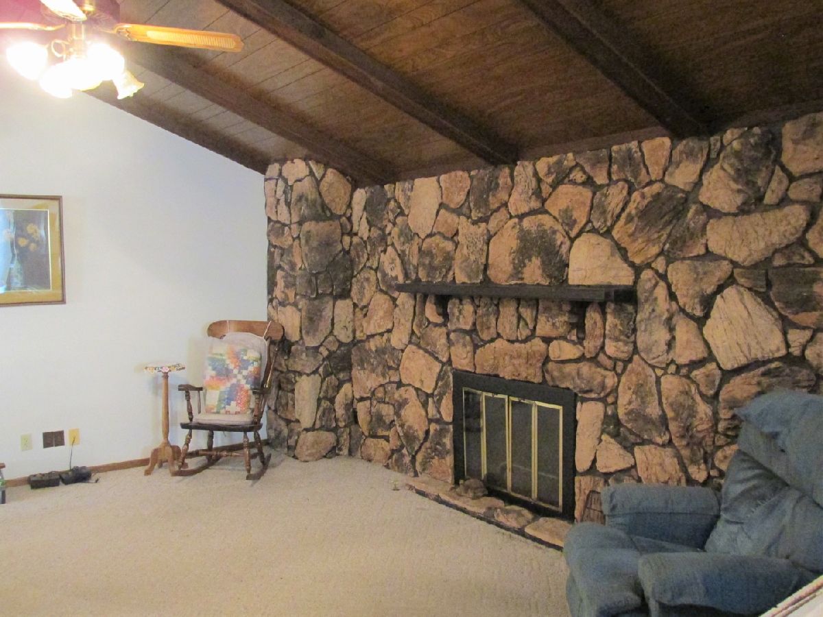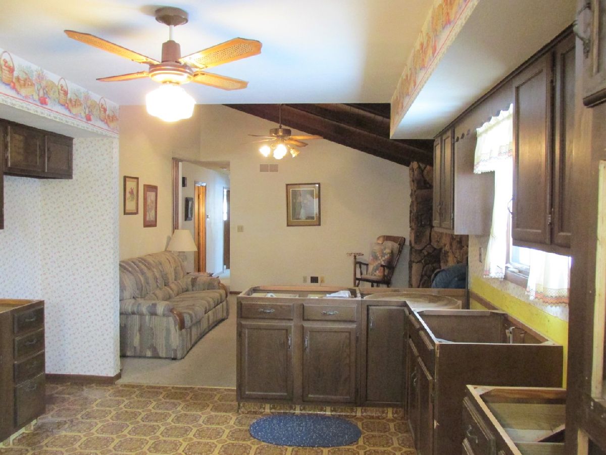 Bring your ideas and grab your work boots and toolbelt! This 4-bedroom, 3 bath ranch-style home sits on a double lot in Marengo is a great first home or investment property. The first floor features a bright dining room with a bay window bringing in lots of natural light, a large living room with vaulted, wood beam ceilings spotlighting a beautiful stone fireplace, a large kitchen space just waiting to be brightened and completed, a master bedroom with private master bath, and 2 additional bedrooms. The basement includes a large, open, and finished basement with a wood burning fireplace, a 4th bedroom or home office space and playroom/rec room opportunity. The spacious backyard makes this home great for big families and get-togethers! With a little TLC you can make this house a home! Great fixer-upper!