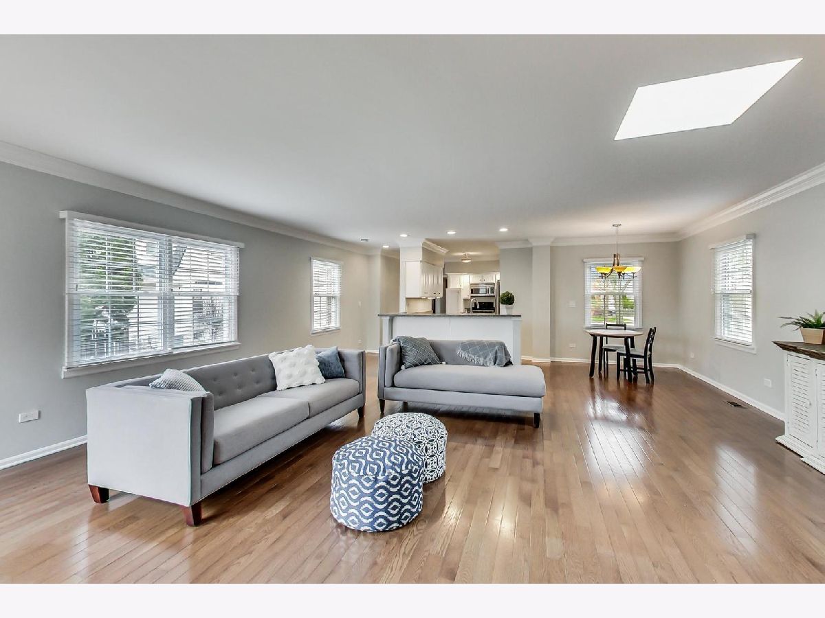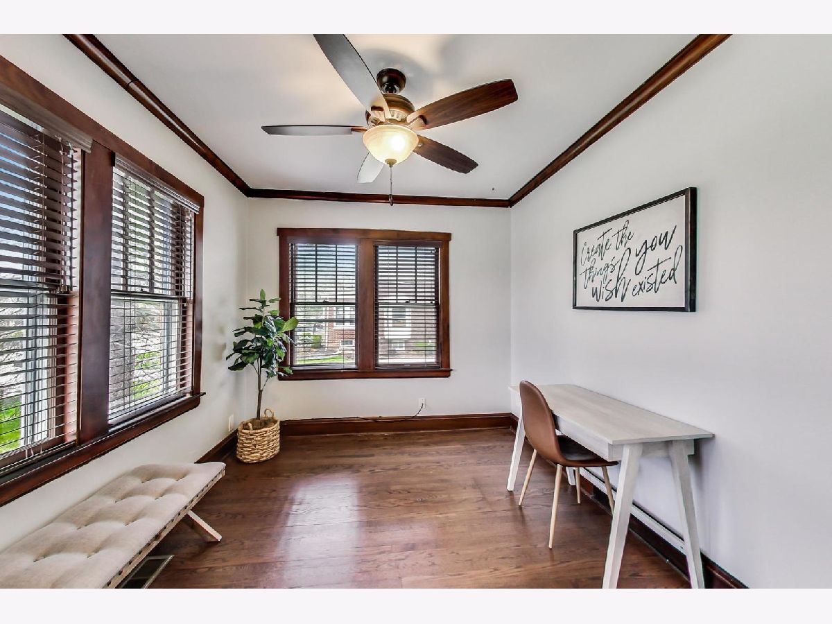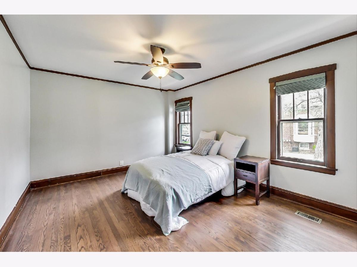 Highly sought-after, walk to town location combined with upgrades and charm! Oversized 4 bedroom, 3 full bathroom bungalow with all the bells and whistles, including a generous open, bright great room, finished basement, updated electrical (2019) and updated plumbing (2016) newer roof (2013), HVAC (2016) and attached 2.5 car garage! Be impressed by the 3-season room overlooking the large fully fenced yard. Gleaming hardwood flooring will greet you at the foyer, and lead you through the entire home (NEW Hardwood second level)! Sunlit first floor office has all the right space in all the right places. Welcoming living room, leads to the formal dining room with chair rail accents and 5 piece crown molding enhancing all the charm and quality build of yesteryear. Bright, gourmet kitchen presents with crisp, white cabinetry, granite countertops, breakfast bar and stainless steel appliances. There's an abundance of storage options including a tall pantry. Sun drenched family room sits seamlessly off the kitchen- a great place for all to gather. Light a fire in the white brick fireplace at night, or step right into the brilliant 3 seasons room overlooking picturesque views of the serene backyard. Large slider door with direct deck access is equipped for summer BBQs. Plenty of lush, green space below to run around the tree lined backyard. Tastefully updated full bathroom on the main level is thoughtfully laid out with white tiled walk-in shower and next to the 4th bedroom! Explore the finished basement, with 9' ceiling height! Upstairs is a total oasis, with BRAND NEW hardwood floor, fresh paint, and 3 generous bedrooms. Fully fenced backyard, 2.5 car attached garage, and the list goes on! All of this within a quick walk to booming downtown Arlington Heights! Expansive laundry/utility room on the lower level provides you with optimal storage solutions! Enjoy all that Arlington Heights has to offer, steps to it all, walk to Pioneer Park, Cronin park, pool and playground. Highly sought after and regarded Blue ribbon schools; Westgate Elementary, South Middle and Rolling Meadows High School. Make this one yours! Welcome home.