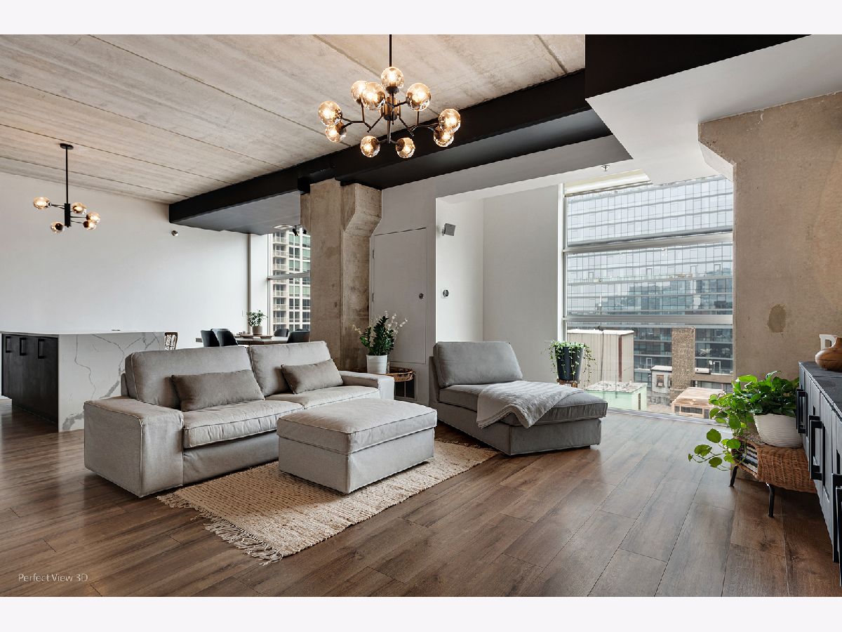 Welcome to a distinguished living experience in River North. This exquisite 3-bedroom, 2-bathroom residence, offers a blend of modern elegance and thoughtful design. Fully renovated in 2022 with no expense spared, this home sets a new standard in luxurious urban living. Step inside to discover a sophisticated space featuring hardwood floors and an open layout perfectly balanced with contemporary style. The gourmet kitchen is a culinary dream, outfitted with stainless steel appliances and adorned with sleek waterfall quartz countertops, providing an ideal setting for both cooking and entertaining. The expansive living area extends seamlessly to your private outdoor space, where city views can be enjoyed from a spacious balcony. This home uniquely combines comfort and convenience with amenities like central AC, gas heat, and an in-unit washer and dryer. One heated, attached garage parking space available for additional $20,000. Located in the heart of River North, this property is not just a home; it's an invitation to a life of refined relaxation and metropolitan excitement.