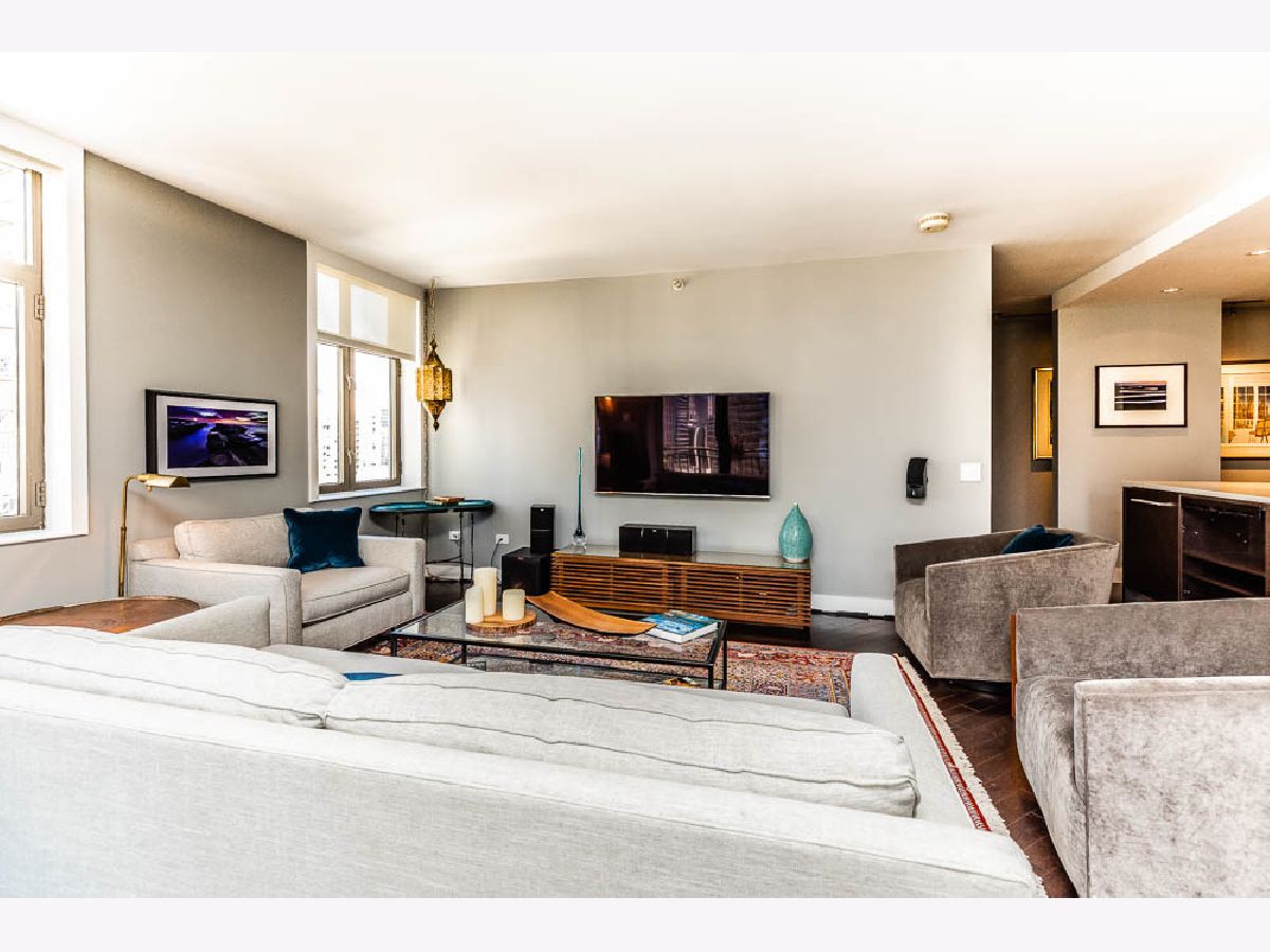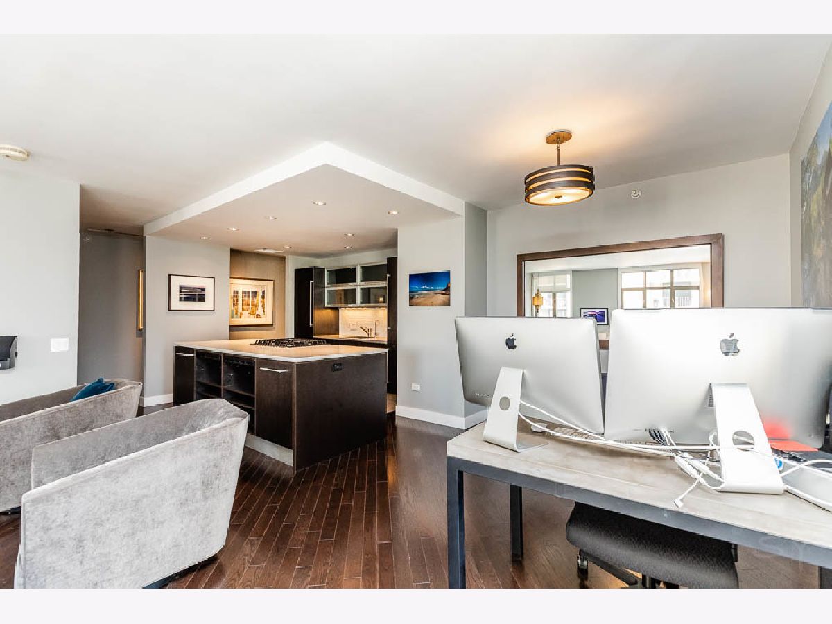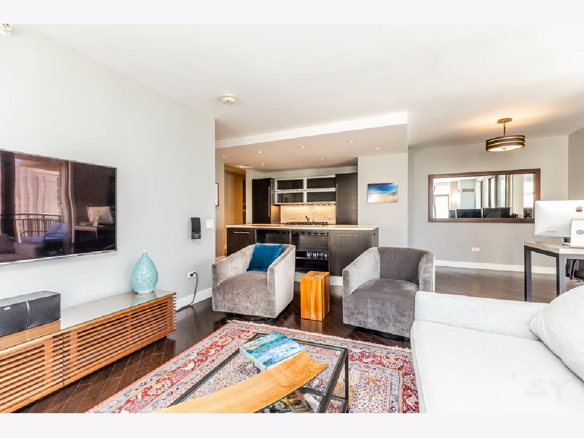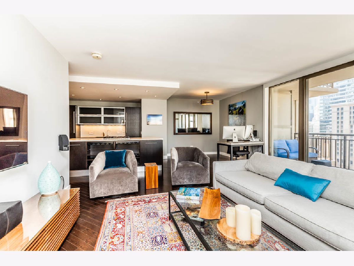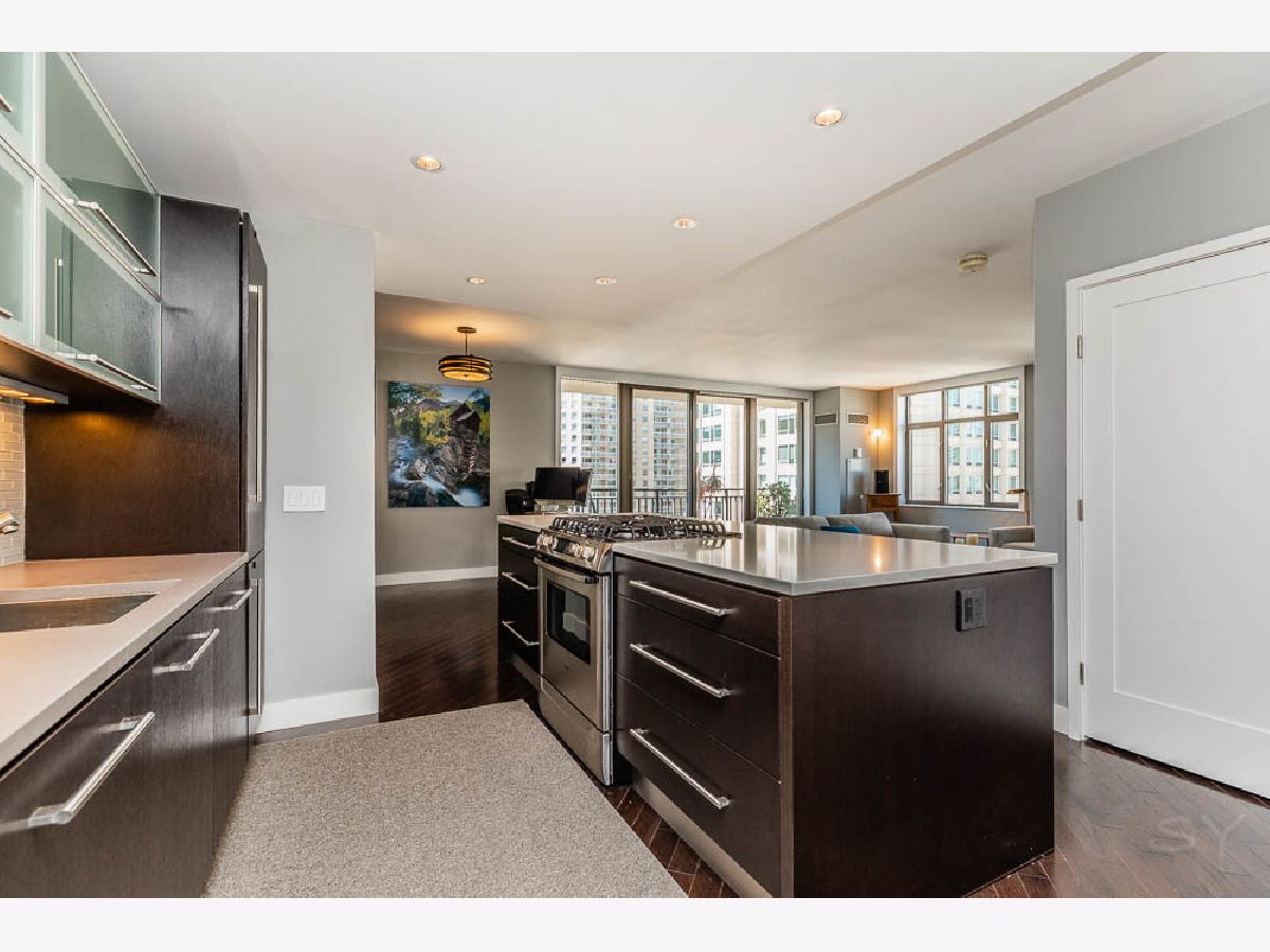 Full Designer 2 Bed - 2 Bath Remodel in the Heart of River North, with Lux High-End Finishes. Completely Reconfigured Open Floor Plan, with Bright South-West Corner Light. Enjoy the Downtown City Views from Your Private Balcony. Central Kitchen Island Perfect for Cooking and Entertaining. Fully Integrated Appliances, Silestone Single Slab Counters, Ann Sachs Tile, Custom Cabinetry and Dark Oak Wood Floors Throughout. Master Bath Suite Expanded to Include Custom Closets and Walk-In Shower. In Unit Laundry with Large Entryway Closet. Storage Cage Included, 24 Hour Door Staff, Gym, Community Room, Dry Cleaner/Receiving Room, & Bike Storage Included! Steps to Restaurants, Whole Foods & Jewel & 2 Blocks to CTA Red Line. Well Ran Building, Over $1 Million in Reserves. 2 Parking spots available for $60,000, including one with a Tesla Charger.