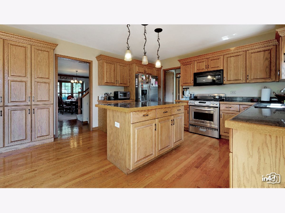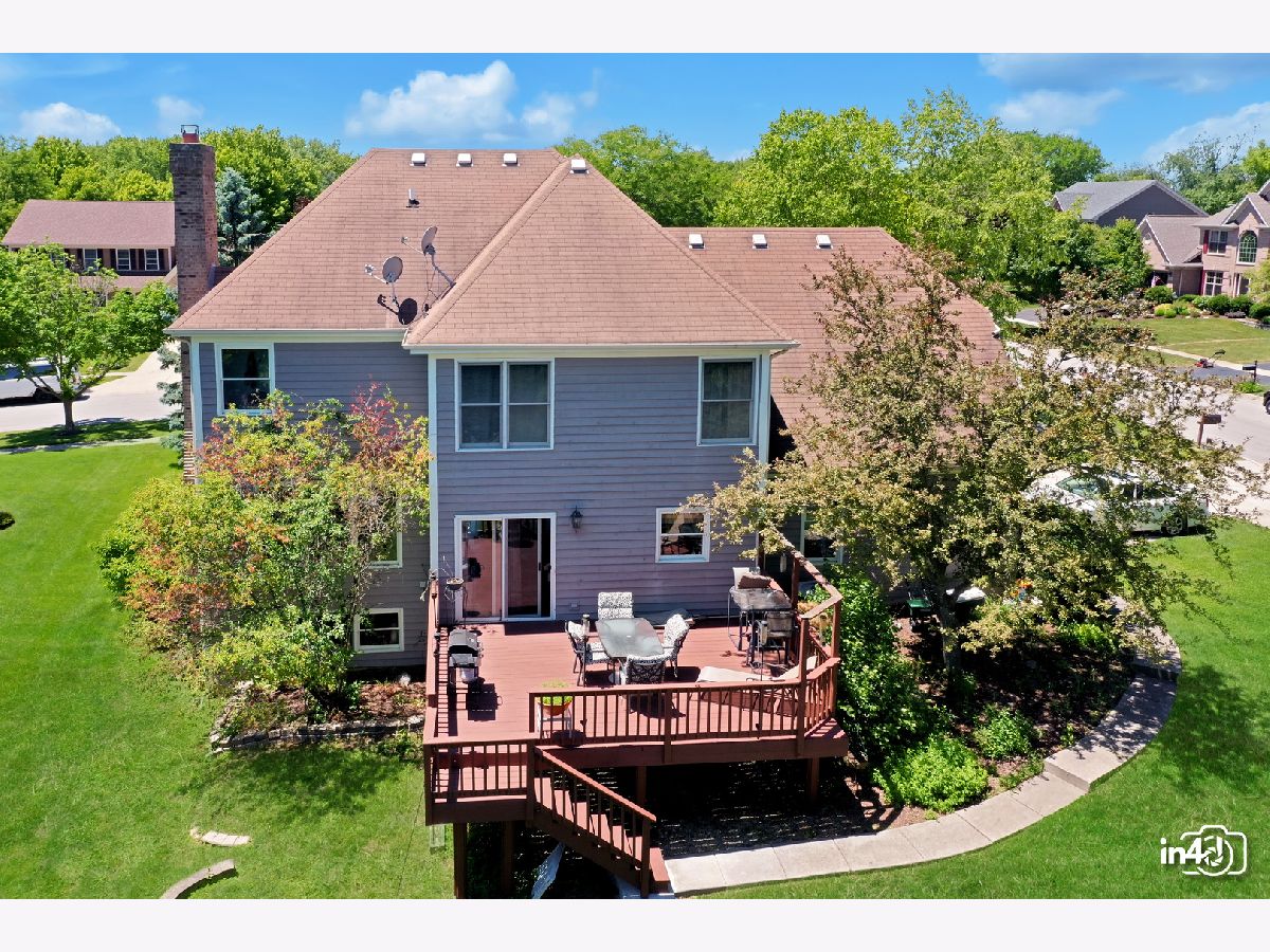 Amazing custom built Russell home in a quiet neighborhood. Two-story grand entryway with beautiful hardwood floors.Spacious kitchen with lots of cabinet space. Granite countertops, new stainless steel refrigerator and gourmet cooktop. Den and family room has custom built in's. The living room has built-in bookshelves. English Basement has a theater room, a very modern bar area, and a storage room that can be a possible fifth bedroom. Master suite with double vanity, whirlpool tub, and separate shower. Bedrooms have walk-in closets and bathroom with double vanity. TONS of storage space. The outside space on the deck is gorgeous. The deck is new remodeled, just this month. 3 1/2 car garage. Close to forest preserve and private park.