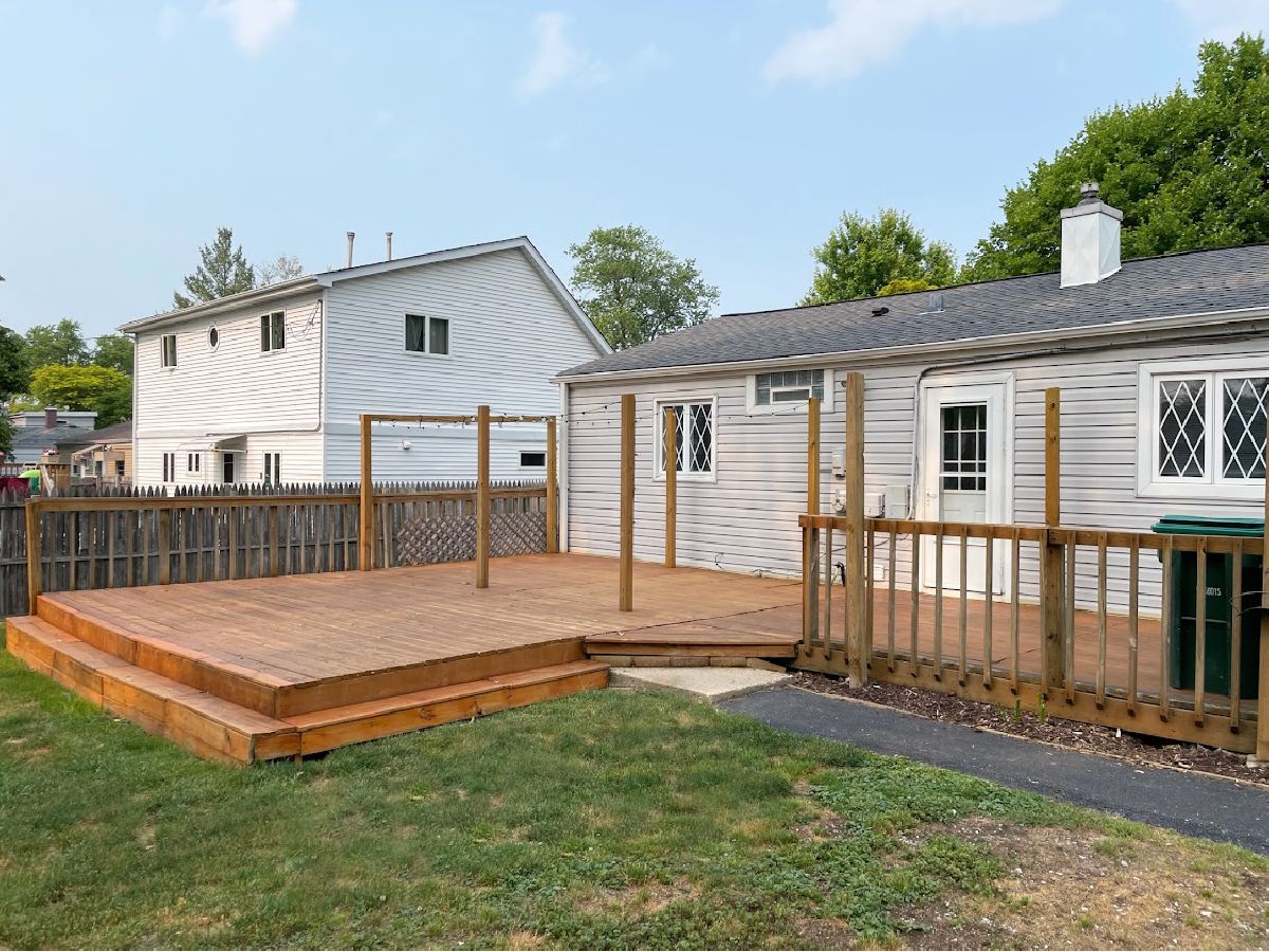 Super sharp and move in ready best describes this updated 3 bedroom, 1 bath ranch. All one level living. White trim and doors throughout. Hardwood flooring in living room and primary bedroom. Bamboo floors in other two bedrooms. Eat-in kitchen with all stainless appliances plus breakfast bar. Updates through the years include: all kitchen appliances (2017), washer & dryer (2018), driveway (2017), hot water heater (2022) and roof (2014). Extra wide 3 car detached garage with a two car overhead garage door. Fenced yard with large deck perfect for summer entertaining. Close to Lombard Lagoon Park. Short distance to downtown Lombard and Metra train. Hurry, won't last long! Ready and just waiting for new owners!