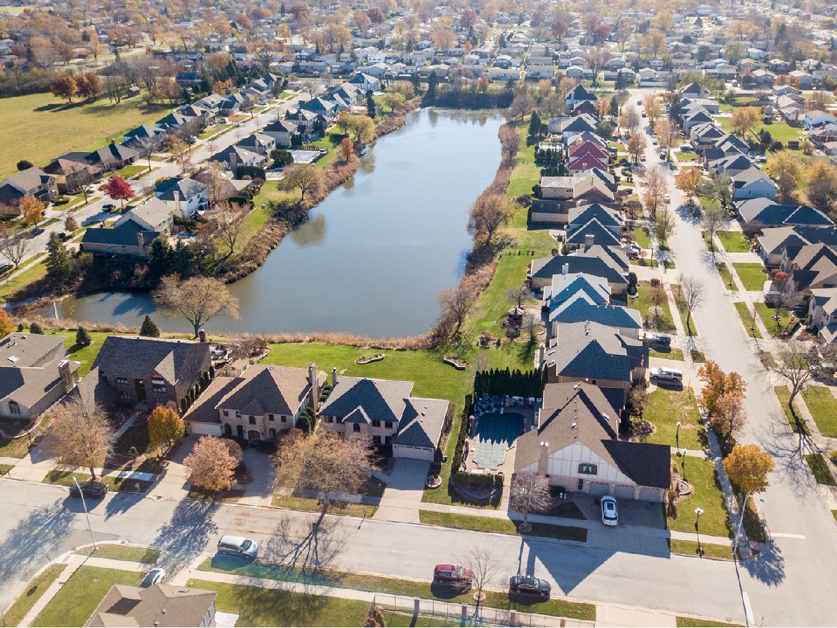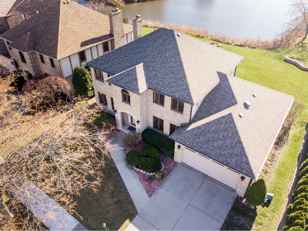 Don't miss this wonderful opportunity to own a beautiful, all brick home on a premier lot in "The Landings" subdivision of Oak Forest. This custom built 5bedroom 2 1/2 bath center entrance colonial has brought much joy to the original owners. The water front view is sure to impress. Feel the warmth and happiness as you enter the home. The separate living room and dining room are perfect for your entertaining pleasures. The Kitchen equipped with an island, desk and eating area lead to the patio overlooking the pretty yard with water view. The open concept kitchen family room has a lovely brick fireplace centered between attractive built in shelving. French doors lead to the bright, warm sunroom surrounded by windows to enjoy the pond activity. The first floor includes a laundry room with new washer and dryer (2020) off the two car attached garage with new epoxy floor (2021) and the fifth bedroom/office. The stately staircase leads to the second floor featuring a large primary suite with private bath, huge walk-in closet and office. Three other nice size bedrooms and hall bath complete the upstairs. The enormous dry basement with 11' ceilings is awaiting your decorating ideas, equipped with overhead sewers, separate storage, newer dual zoned furnace (2018) and hot water heater (2016).This beautiful property includes a lawn sprinkler system for your maintenance free living. The desirable Landings neighborhood offers a wonderful playground and close proximity to schools. Create your own loving memories today!