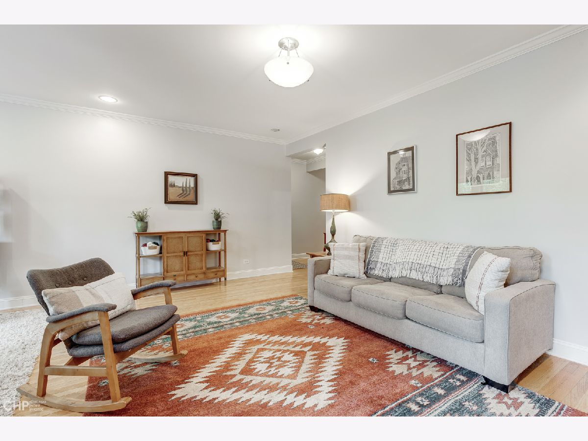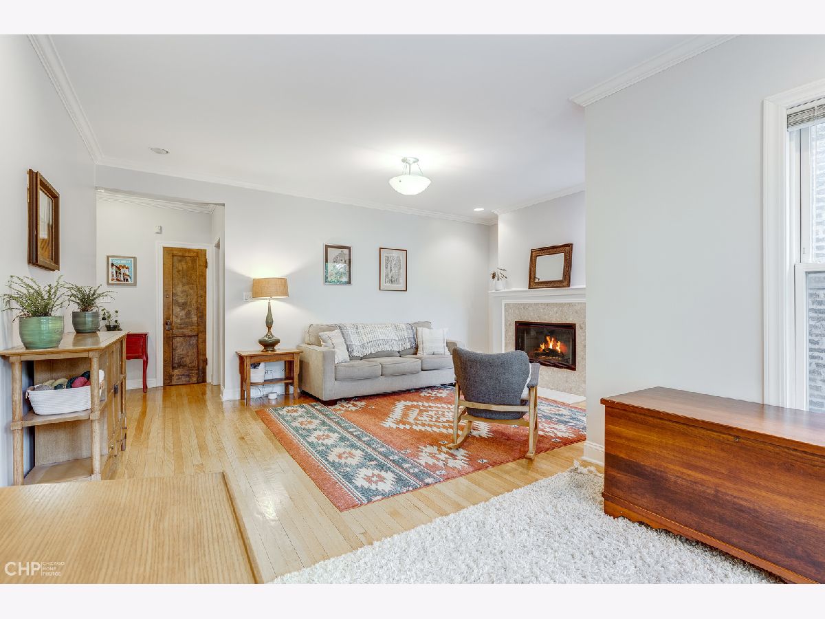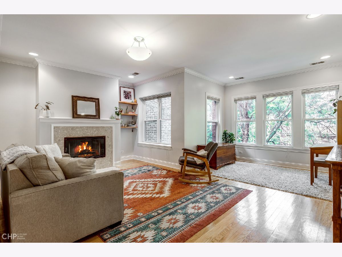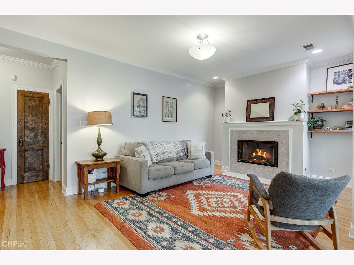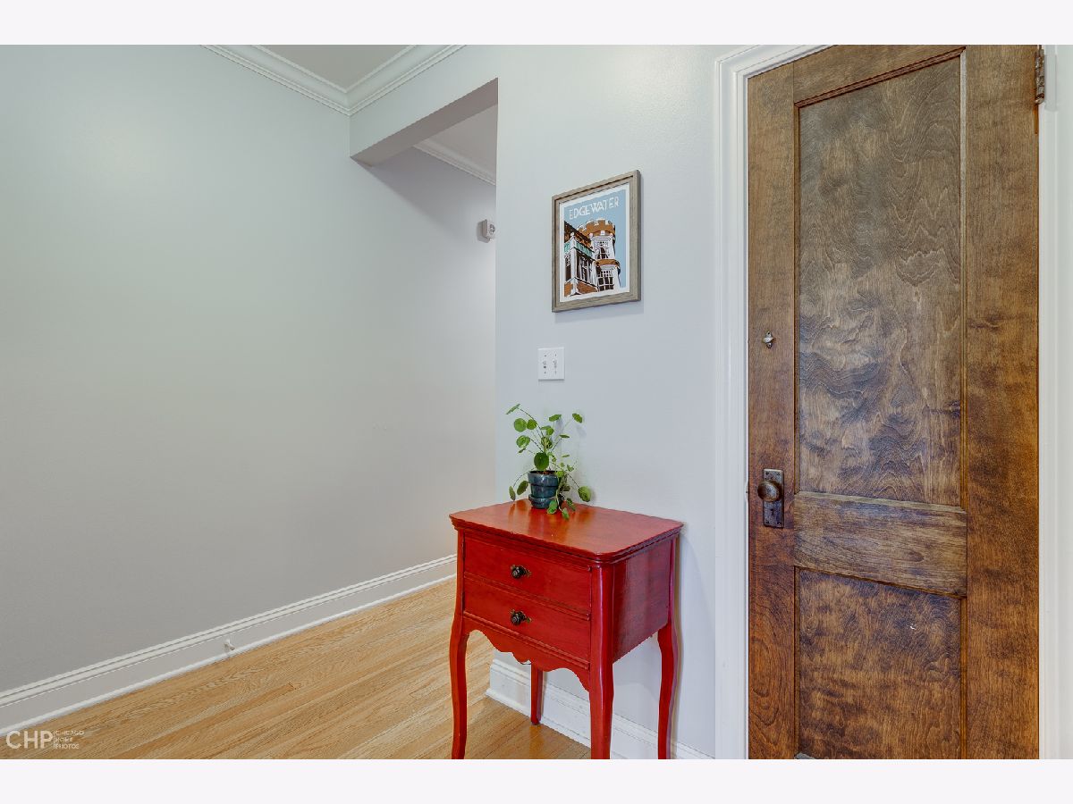This large and beautiful top floor 2 bedroom, 1 bathroom condo in Edgewater Glen near Loyola has it all with in unit laundry, a sunroom, and kitchen open to the dining room. The oversized living room is open to the sunroom with windows that face West and provide light filled afternoons. It features a wood burning fireplace with marble tile and beautiful woodwork throughout. This unit offers vintage details like real hardwood floors, gracious bedroom room sizes while mixing modern features like central air/heat and new side by side in-unit laundry. The dining room opens up to the white kitchen with a breakfast bar and new stainless steel appliances. The finished enclosed back porch, which has air/heat, provides extra office space. The common patio/backyard has an English garden feel for a relaxing get away outside your back door. It is on a quiet tree lined street yet just minutes away from neighborhood highlights like restaurants on Broadway and Devon, Whole Foods, Aldi, the Red Line, the lakefront, Target, Loyola, and the library. This is a pet friendly building with no weight limit. Incredibly easy street parking up and down the street. Come home! *Additional information regarding property details and showing restrictions located in the broker private remarks.*