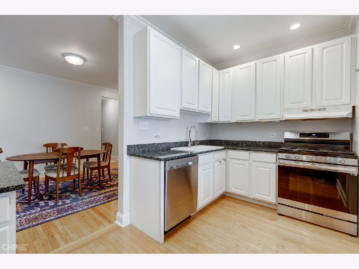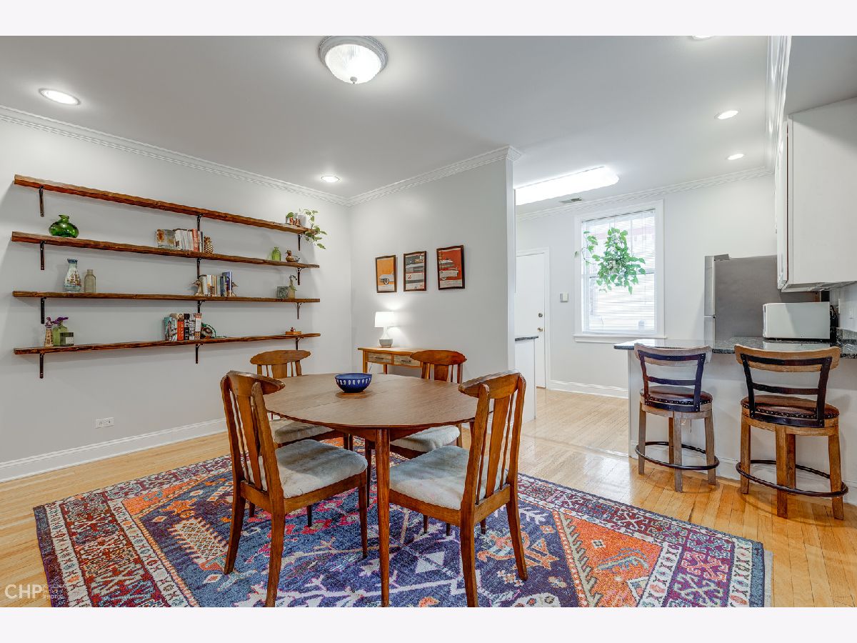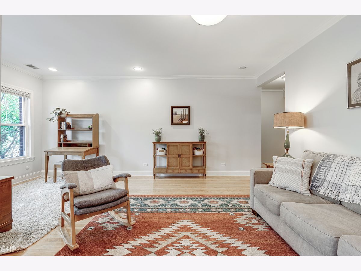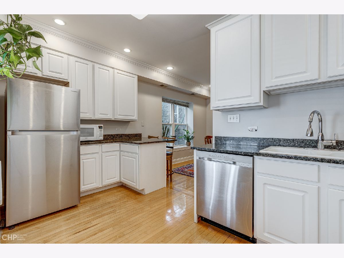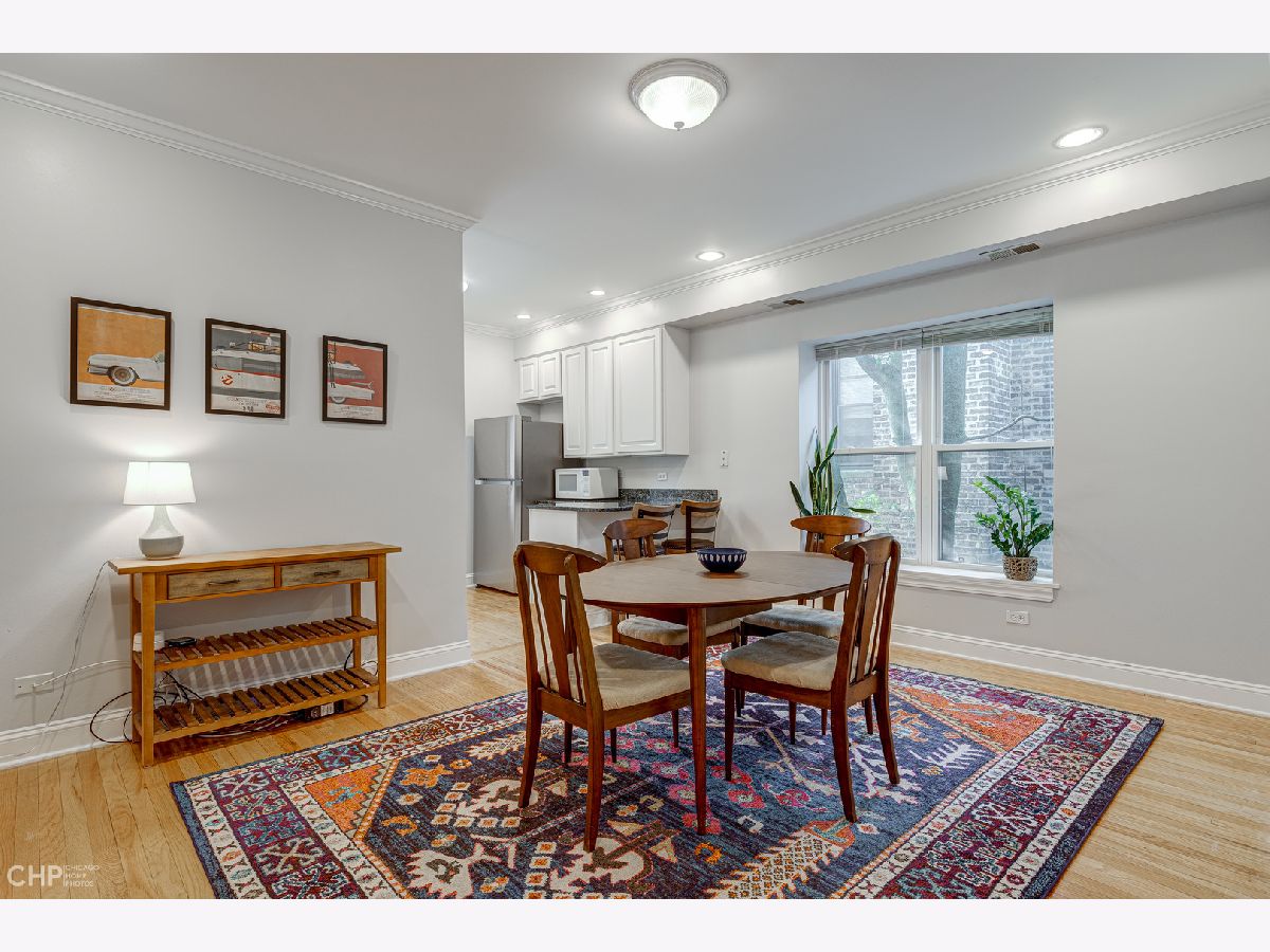 This large and beautiful top floor 2 bedroom, 1 bathroom condo in Edgewater Glen near Loyola has it all with in unit laundry, a sunroom, and kitchen open to the dining room. The oversized living room is open to the sunroom with windows that face West and provide light filled afternoons. It features a wood burning fireplace with marble tile and beautiful woodwork throughout. This unit offers vintage details like real hardwood floors, gracious bedroom room sizes while mixing modern features like central air/heat and new side by side in-unit laundry. The dining room opens up to the white kitchen with a breakfast bar and new stainless steel appliances. The finished enclosed back porch, which has air/heat, provides extra office space. The common patio/backyard has an English garden feel for a relaxing get away outside your back door. It is on a quiet tree lined street yet just minutes away from neighborhood highlights like restaurants on Broadway and Devon, Whole Foods, Aldi, the Red Line, the lakefront, Target, Loyola, and the library. This is a pet friendly building with no weight limit. Incredibly easy street parking up and down the street. Come home! *Additional information regarding property details and showing restrictions located in the broker private remarks.*