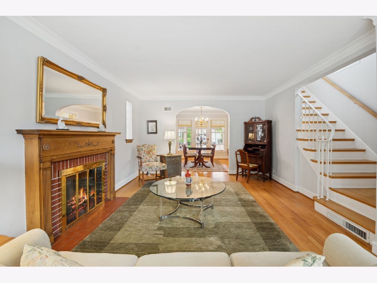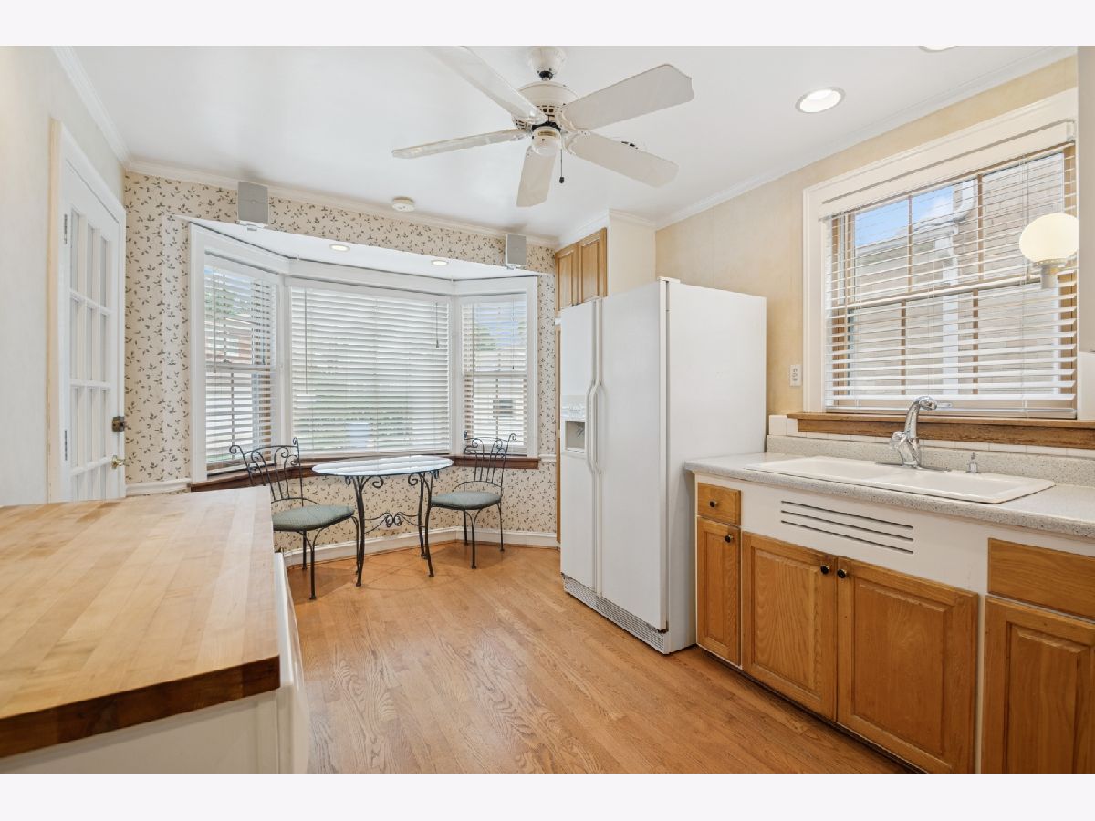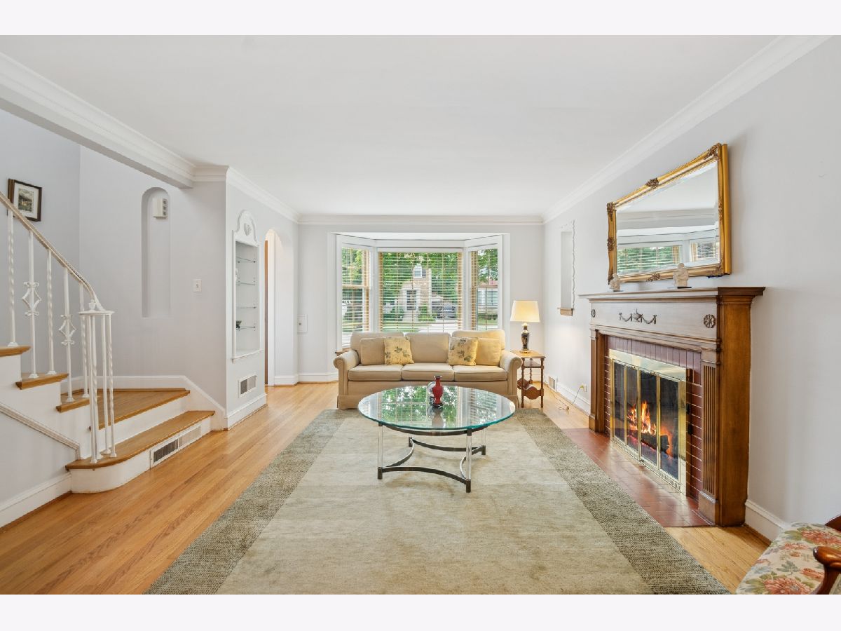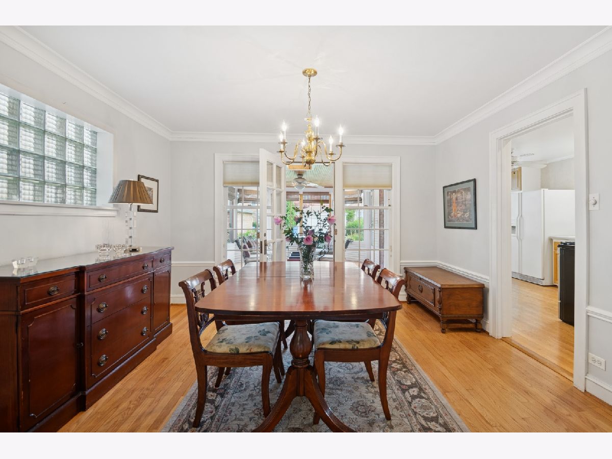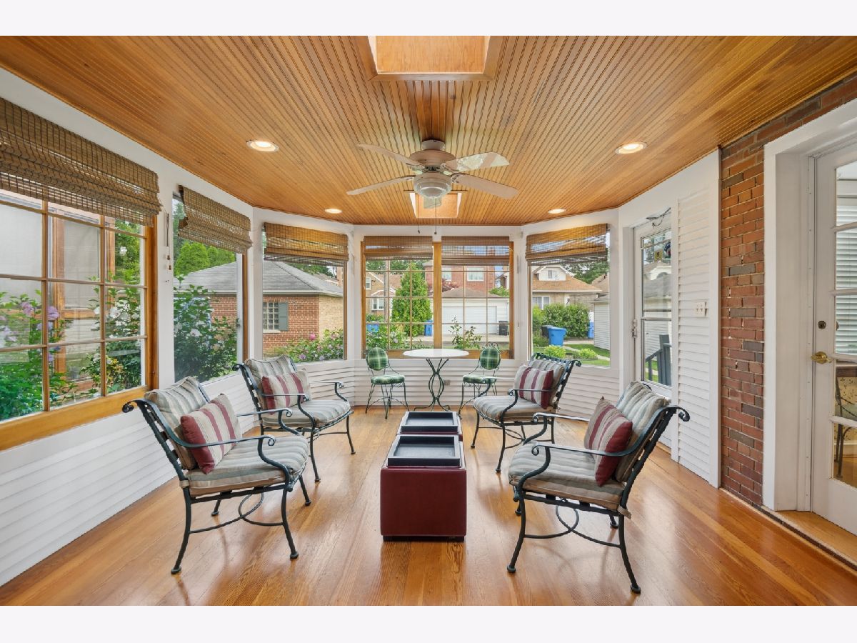 Charming brick Georgian located on a lovely tree-lined street in Edgebrook. This idyllic 1940's home has retained its timeless architectural details, along with warm HW floors throughout. The LR has classic trimwork, a light filled bay window, elegant built-ins and a wood burning fireplace with crafted mantle as the focal point of the room. There is an arched doorway leading into the separate and formal dining room with inviting French doors leading to a delightful Sunroom with views of the serene backyard. This spacious Sunroom is filled with natural light from walls of windows highlighted with a thoughtfully placed skylight. The cheery eat-in kitchen is a good size with space for a table and chairs for informal meals, plus easy access to the Sunroom and backyard. There is also a 1/2 bath and convenient doorway to the attached garage on the main level. Up the classic staircase to a large primary bedroom and (2) additional bedrooms with HW floors and attractive trimwork. There is also a full-sized bath with a walk-in shower. Step back in time into the Rec Room downstairs with its vintage paneled walls and built-in desk, bookcase and storage chest. There is a very large laundry room with storage and your grandfather's solid built-in work bench. The large backyard is perfect for entertaining or quiet evenings with its large grassy lawn accented with colorful shrubs and flowers. This is an enchanting gem with so much potential to be a warm and welcoming home for years to come. Walking distance to the Edgebrook School, Metra, Edgebrooks quaint restaurants and shops, with easy access to downtown and O'Hare. Schedule your showing today!