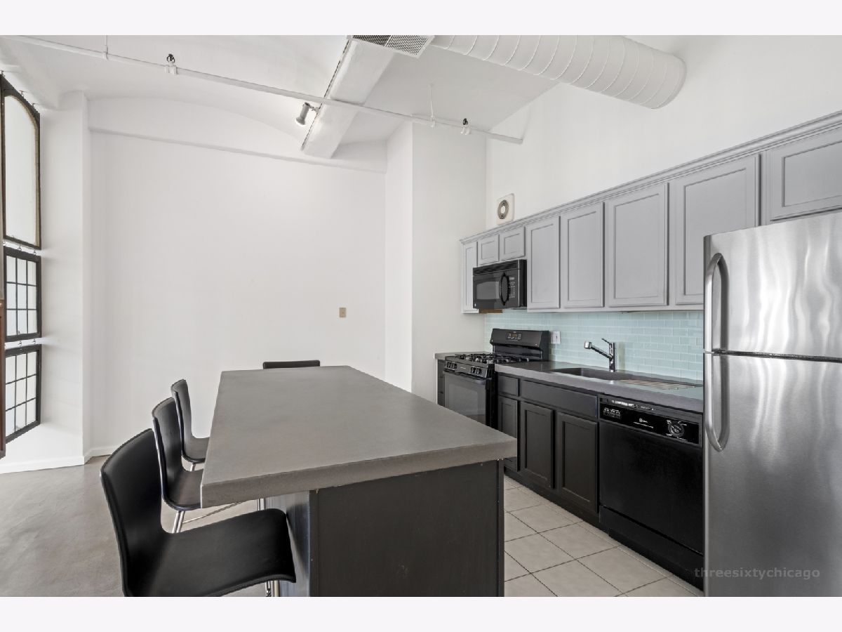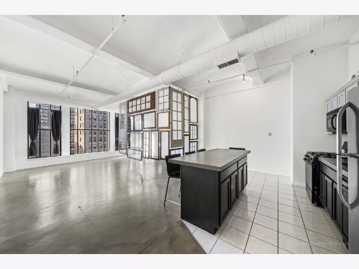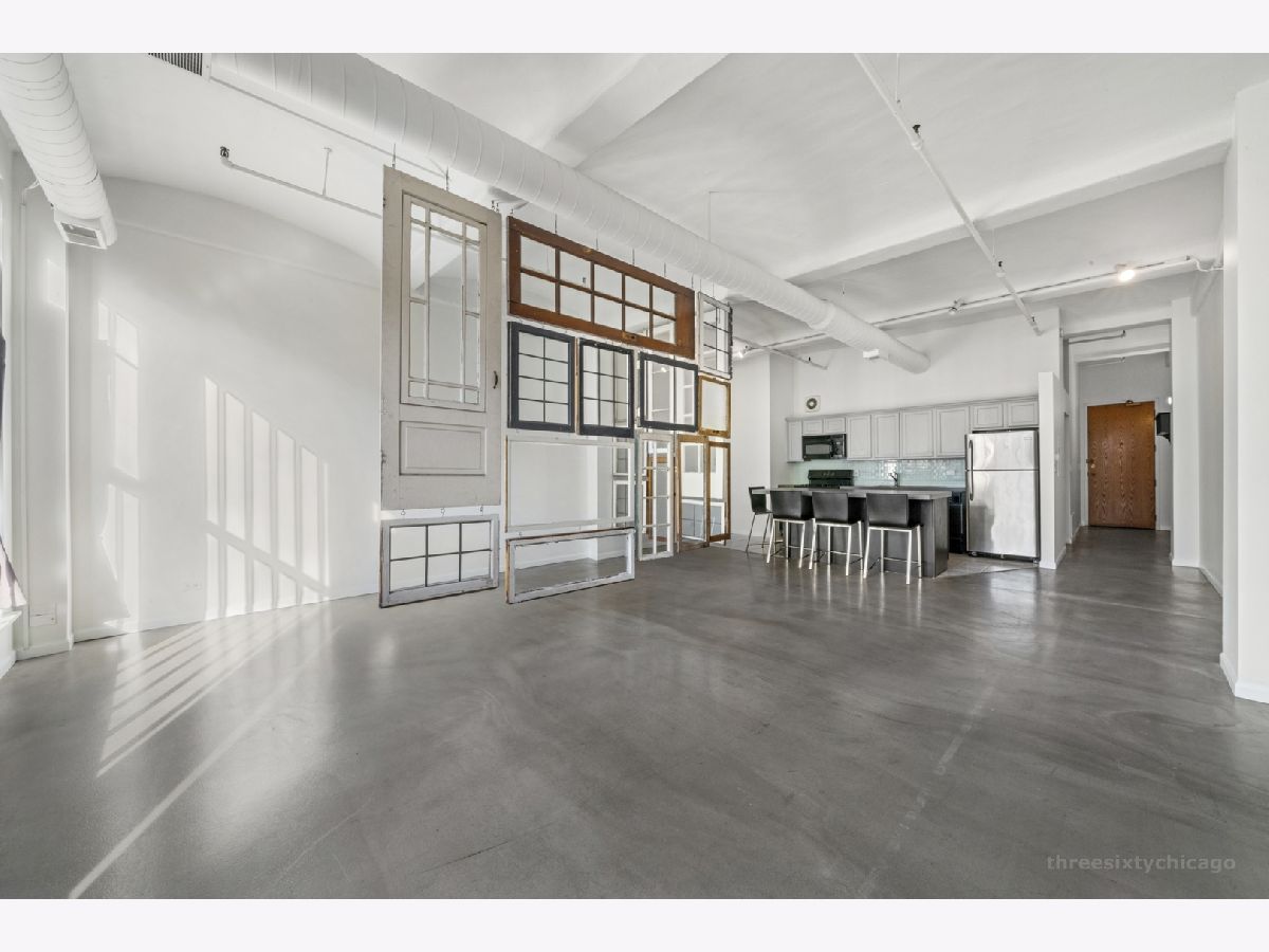 One of a kind loft space in Printers Row. This beautiful West facing unit features dramatic floor-to-ceiling windows overlooking Printers Row park, 11 foot barrel vaulted concrete ceilings, polished concrete floors and an updated kitchen with concrete countertop and island. The bedroom area is sectioned off with a beautiful artistic display of antique doors and windows. Amazing location in the heart of Printers Row near transportation (Red Line and #22 bus route), great local restaurants & neighborhood shopping. Building features storage, bike storage, laundry facilities, secured entry, newly updated elevators. Rental parking options available next door.