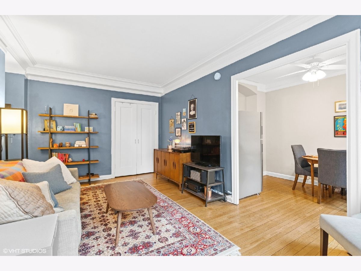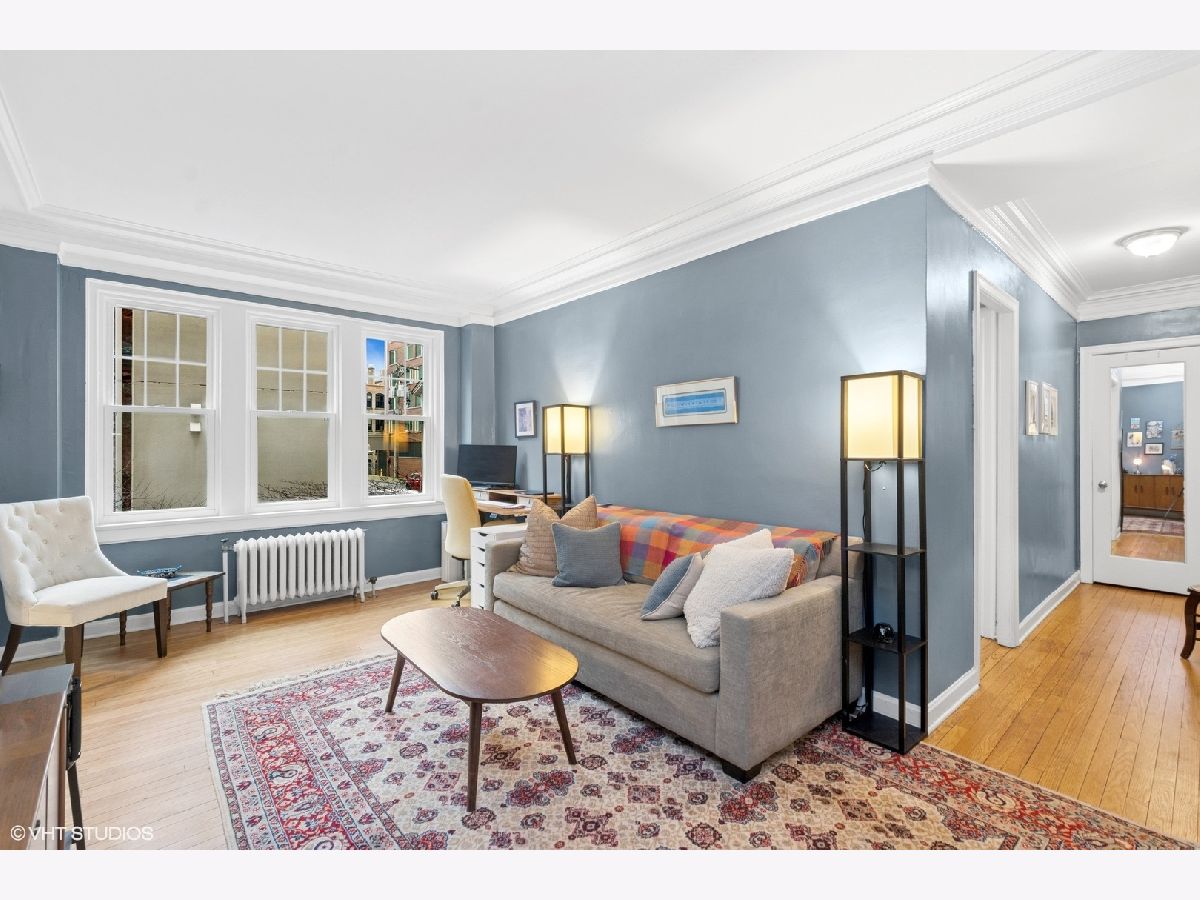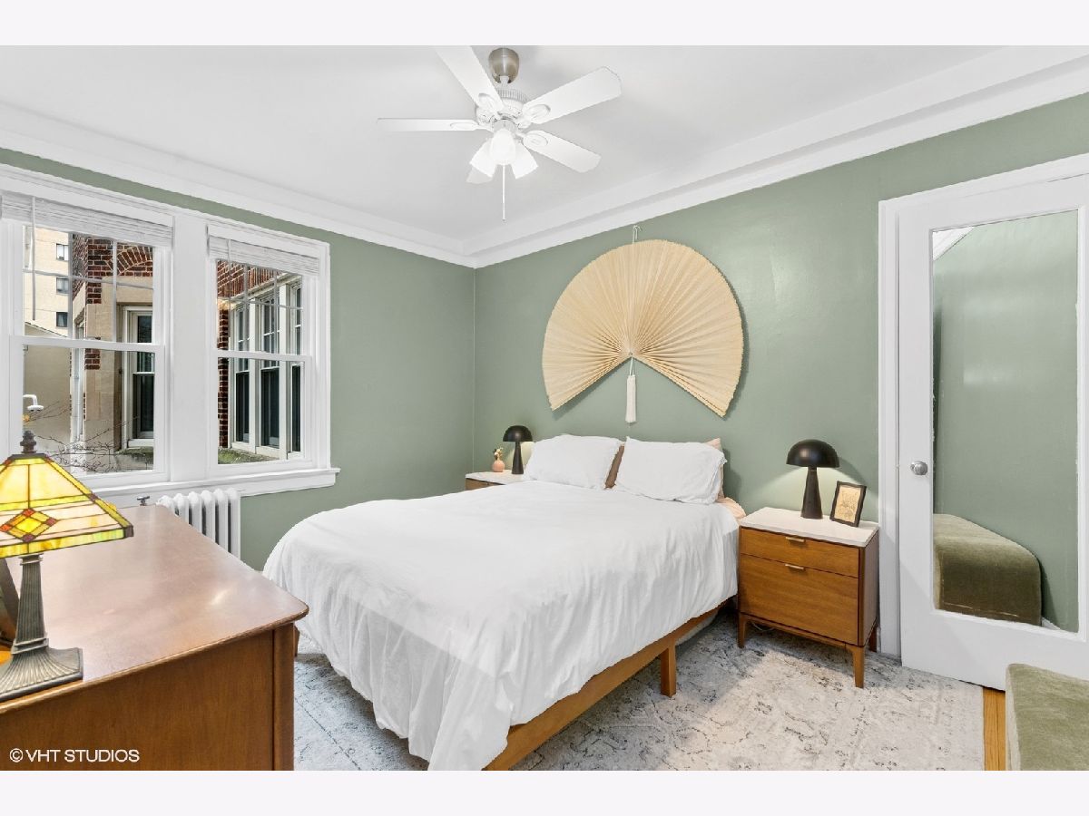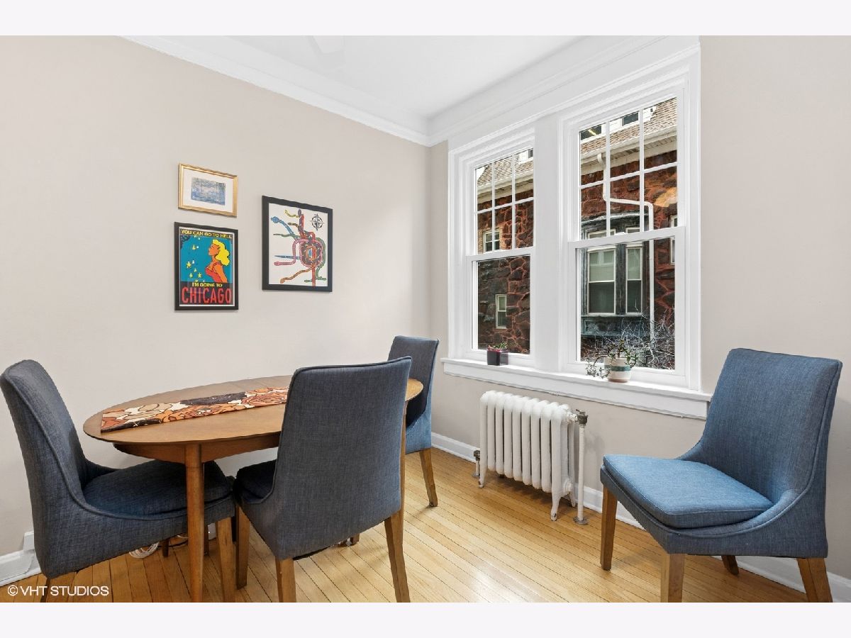 Recently updated 1-bedroom gem nestled in a charming vintage elevator building, offering serene views of a picturesque courtyard. This move-in-ready unit has been tastefully enhanced with an updated kitchen, bathroom, and refinished hardwood floors in 2023 plus full window replacement in 2024. Located just off the lake, this delightful home is perfectly positioned to enjoy the southern sun while overlooking the professionally landscaped courtyard, which bursts with greenery and vibrant flowers for much of the year. The spacious and sunny interior boasts classic hardwood floors throughout, timeless vintage details, and generously sized living and bedroom areas. The efficient kitchen features wood cabinets, sleek granite countertops, and stainless-steel appliances that open to a sunlit eating area, perfect for enjoying meals with a view. The versatile layout offers multiple options for setting up a desk or work-from-home space. This home also provides ample storage options, including a coat closet, a built-in vintage linen cabinet, an additional living room closet with double doors, and a large storage room in the basement. The building is pet-friendly and offers convenient amenities such as an on-site laundry room, bike rooms, and a fenced yard with BBQ and picnic tables for summer fun. Located just across the street from Devon Ave. Beach, this convenient location is steps away from Whole Foods, Aldi, Target, Starbucks, numerous restaurants, gyms, retail options, and more. With two express buses stopping right in front of the building, and close proximity to the Loyola and Granville Red Line stations, transportation is a breeze. Rental parking in the lot just north of the building and surrounding area. This investor-friendly property is a must-see!