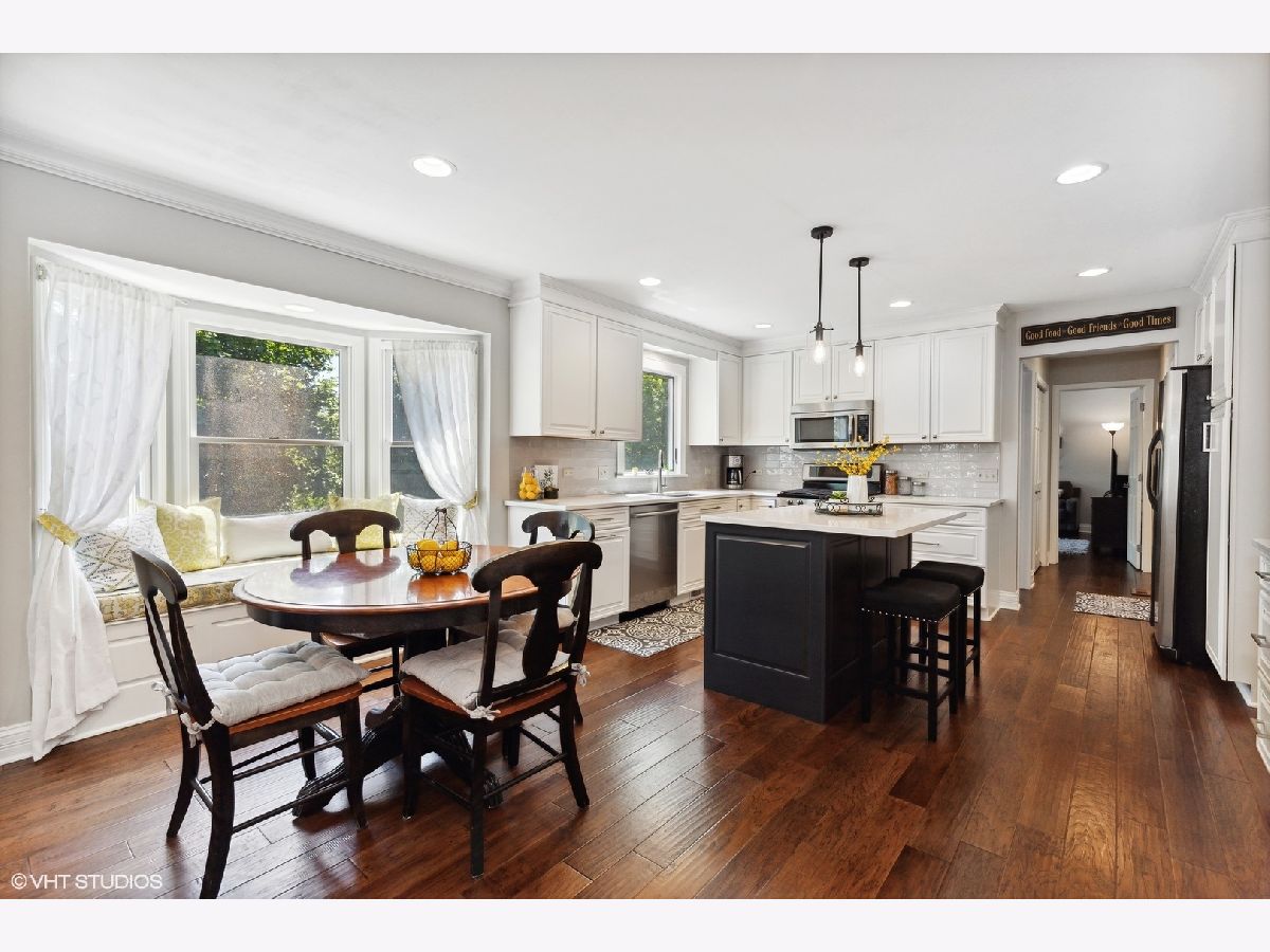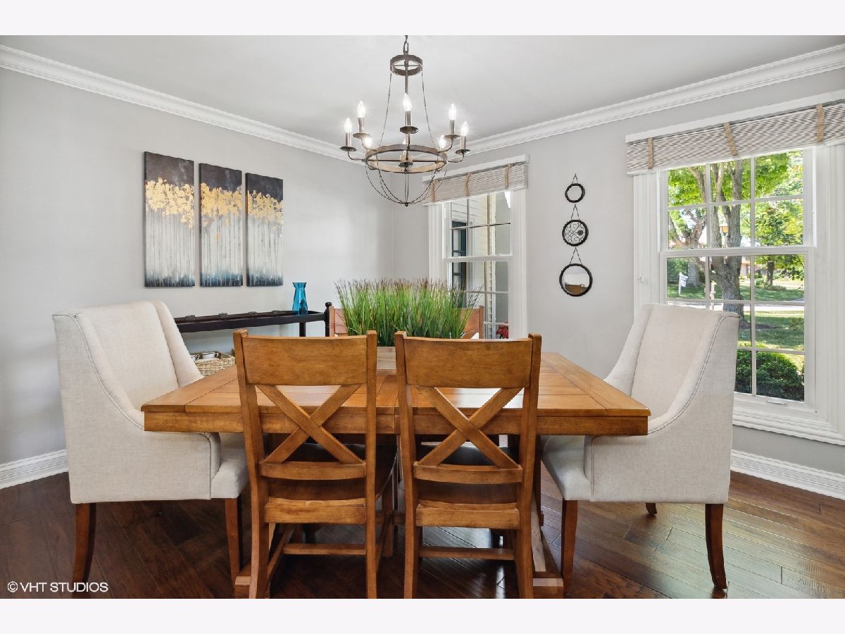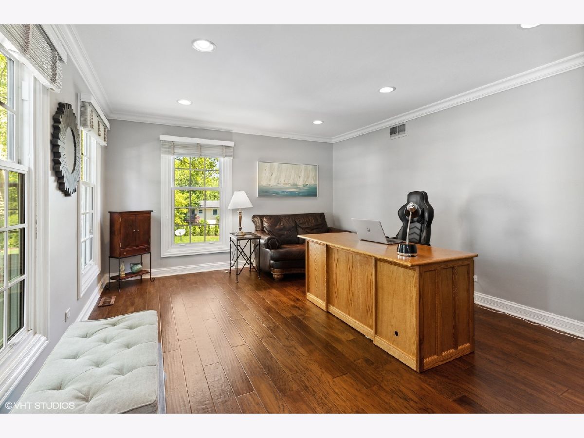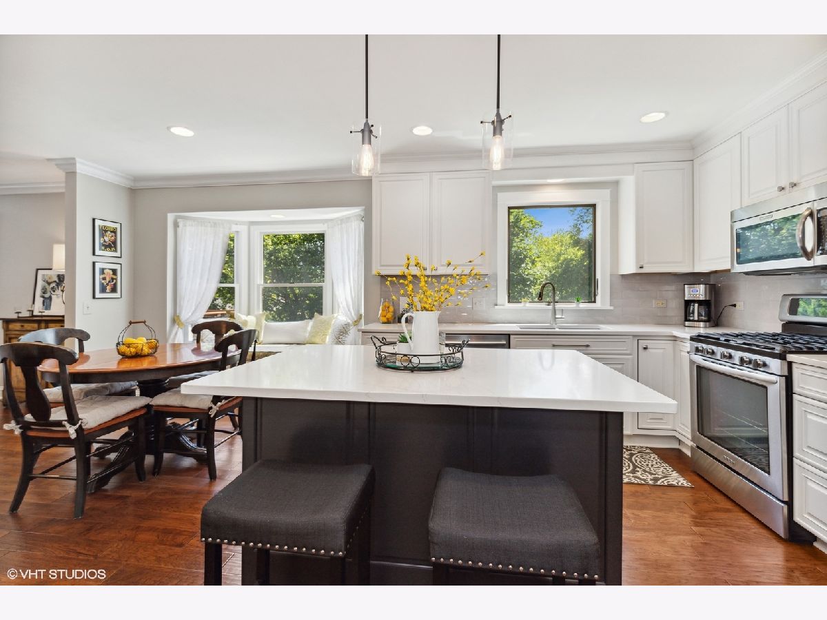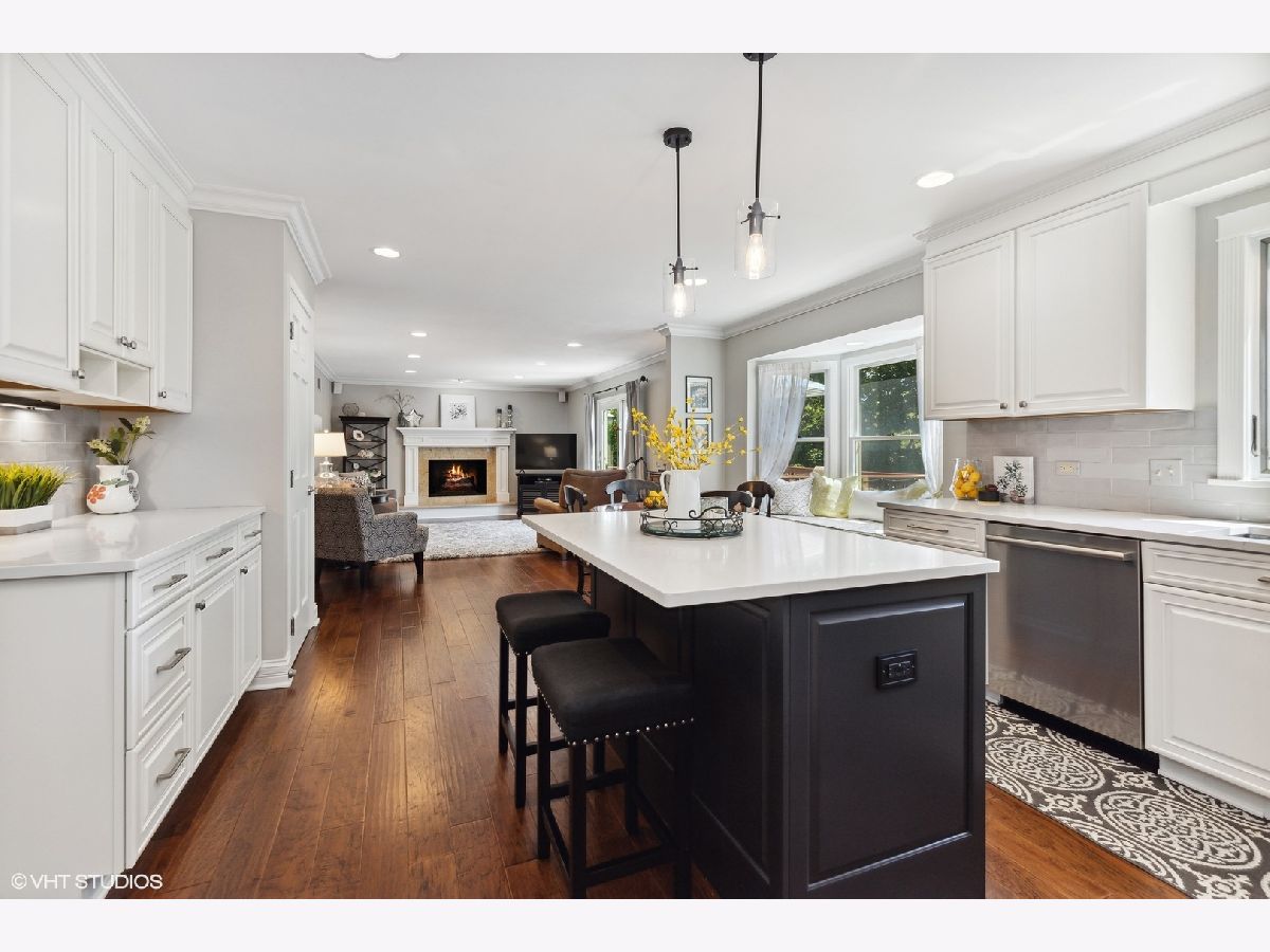 This immaculate Red Top home has been meticulously updated and upgraded with tasteful and lasting finishes. All the hard work has been done with a detailed eye for quality craftsmanship. Dark hardwood floors carry throughout this light and bright property, surrounded by crisp trim, fresh neutral paint, crown molding and recessed lighting. The kitchen was renovated in 2020. The custom island takes center stage amongst stainless steel appliances, quartz surfaces and a neutral backsplash. The family room has a gas log fireplace with granite surround, and exterior access to deck. Primary bedroom ensuite features custom-built armoires in addition to walk-in closet and bathroom with large walk-in shower. Finished walkout basement rec room offers a cozy retreat with gas insert fireplace, entertaining space, added windows, spray foam insulation, workshop, storage and additional full bath with walk-in shower and granite surface. Located close to award-winning schools, parks, train, and the vibrant downtown Libertyville restaurant, shopping and social scene.