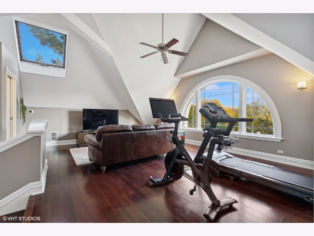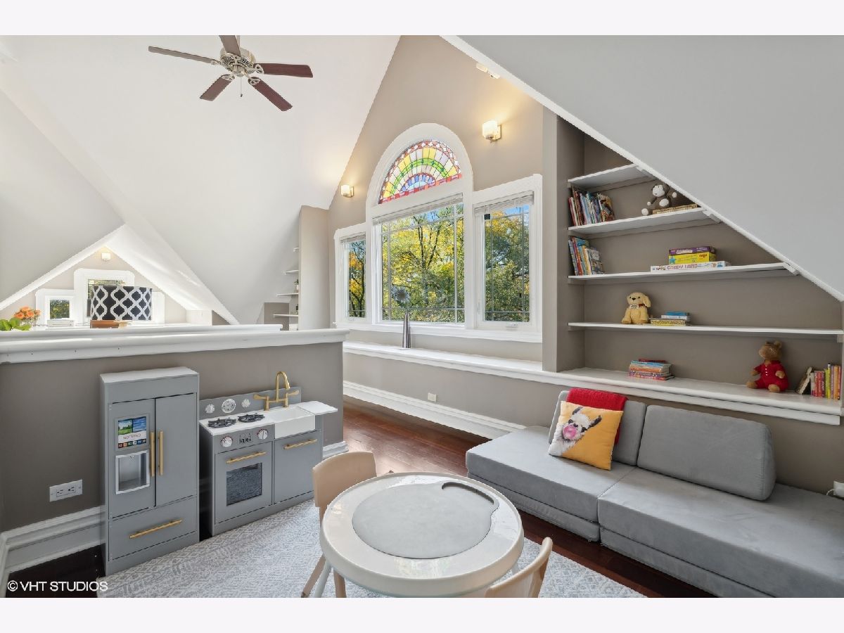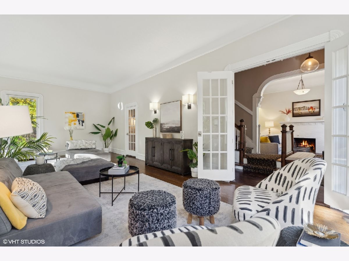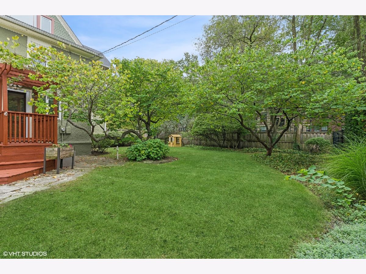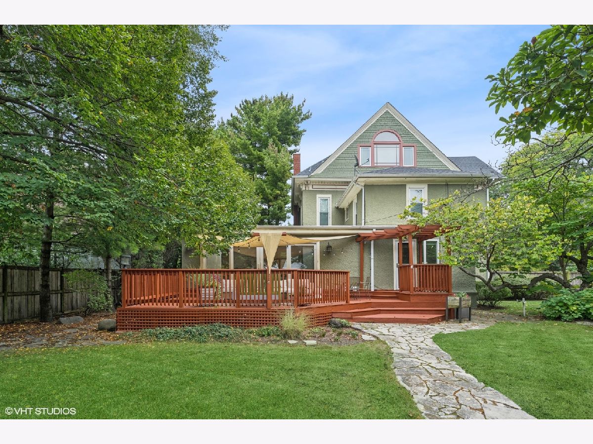 Discover timeless elegance in this beautifully restored three-story home, located in the heart of Evanston's Lakeshore Historic District. Set on a sprawling 100 x 158 corner lot, this property combines classic architecture with modern touches throughout. The newly renovated (2023) kitchen is a showstopper, featuring sleek quartz countertops, premium stainless steel appliances, custom cabinetry, and a new butler's pantry. The main floor, with its soaring 11' ceilings, boasts both a formal sitting and living room, perfect for gatherings. The family room features a cozy fireplace that opens up to a large deck and an expansive backyard oasis with mature trees and professionally manicured landscaping. The second level continues to impress with high ceilings and four generously sized bedrooms, including a serene primary suite with a spacious walk-in closet and a luxurious stone bathroom. The impressive top floor serves as a second family room and office space with arched ceilings and abundant natural light, perfect for enjoying sunrises over lakefront foliage. Complete with a convenient half-bath, this space offers flexibility for a fifth bedroom. Additional highlights include a substantial four-car brick garage for ample storage or passive rental income, and a basement with a drain tile system offering potential for future expansion. Just steps from the lakefront and within easy reach of public transit, downtown Evanston's shops, and dining, this grand home is ideally situated for both convenience and leisure.