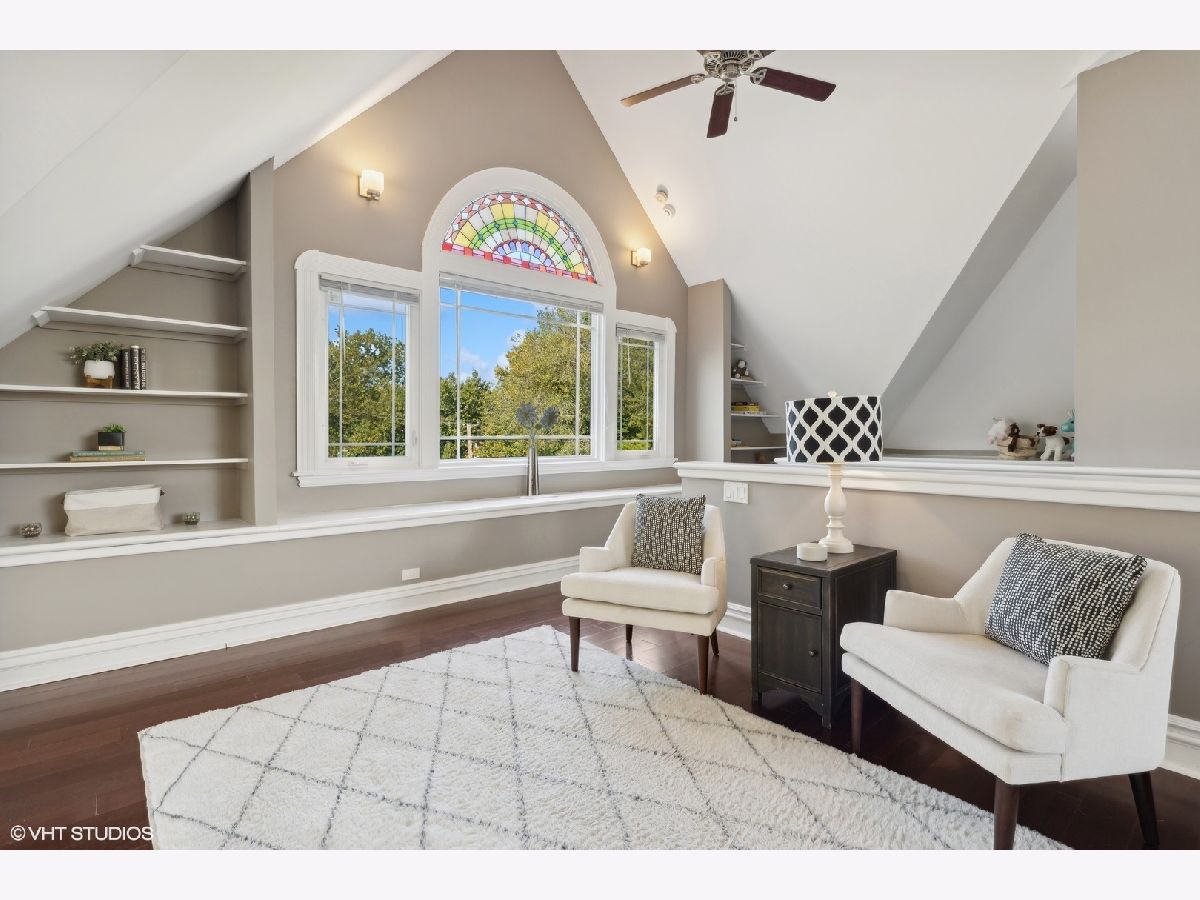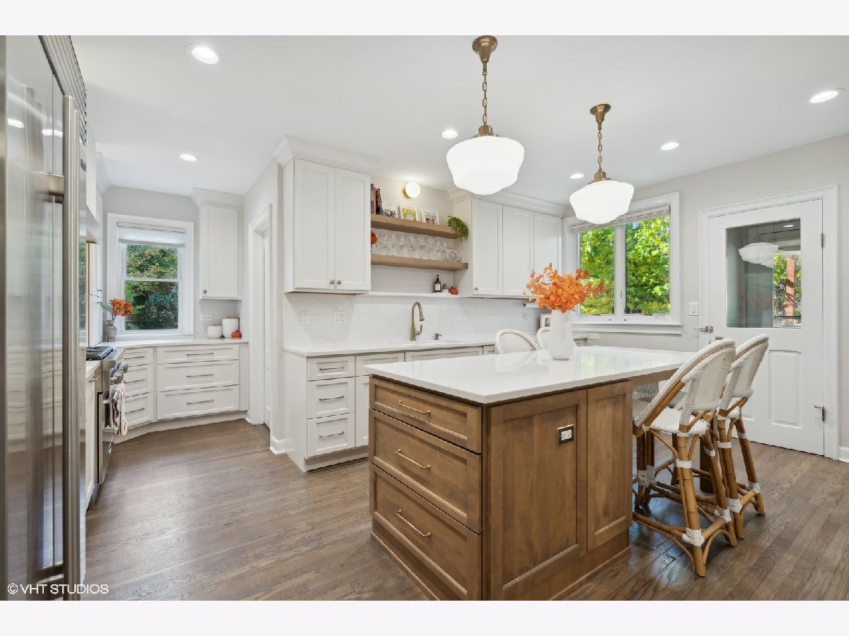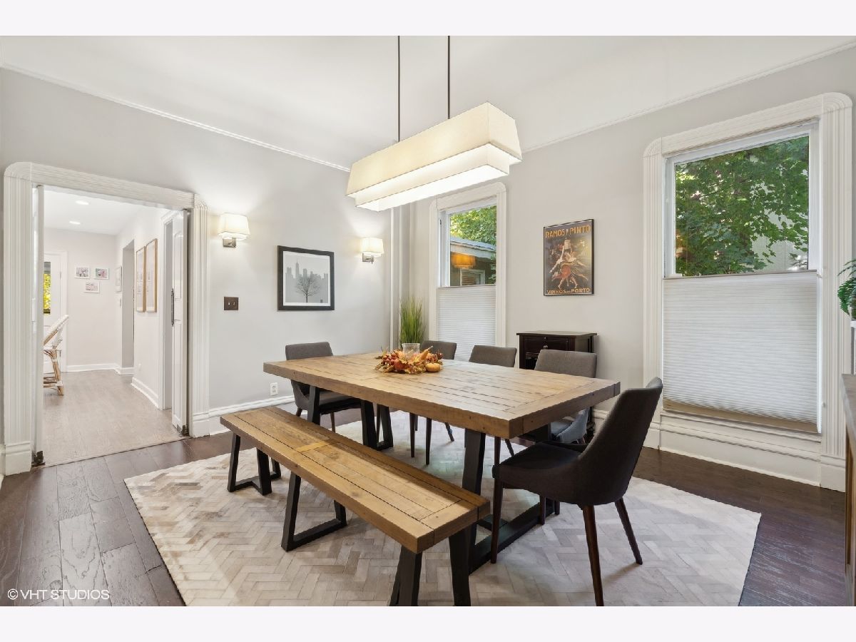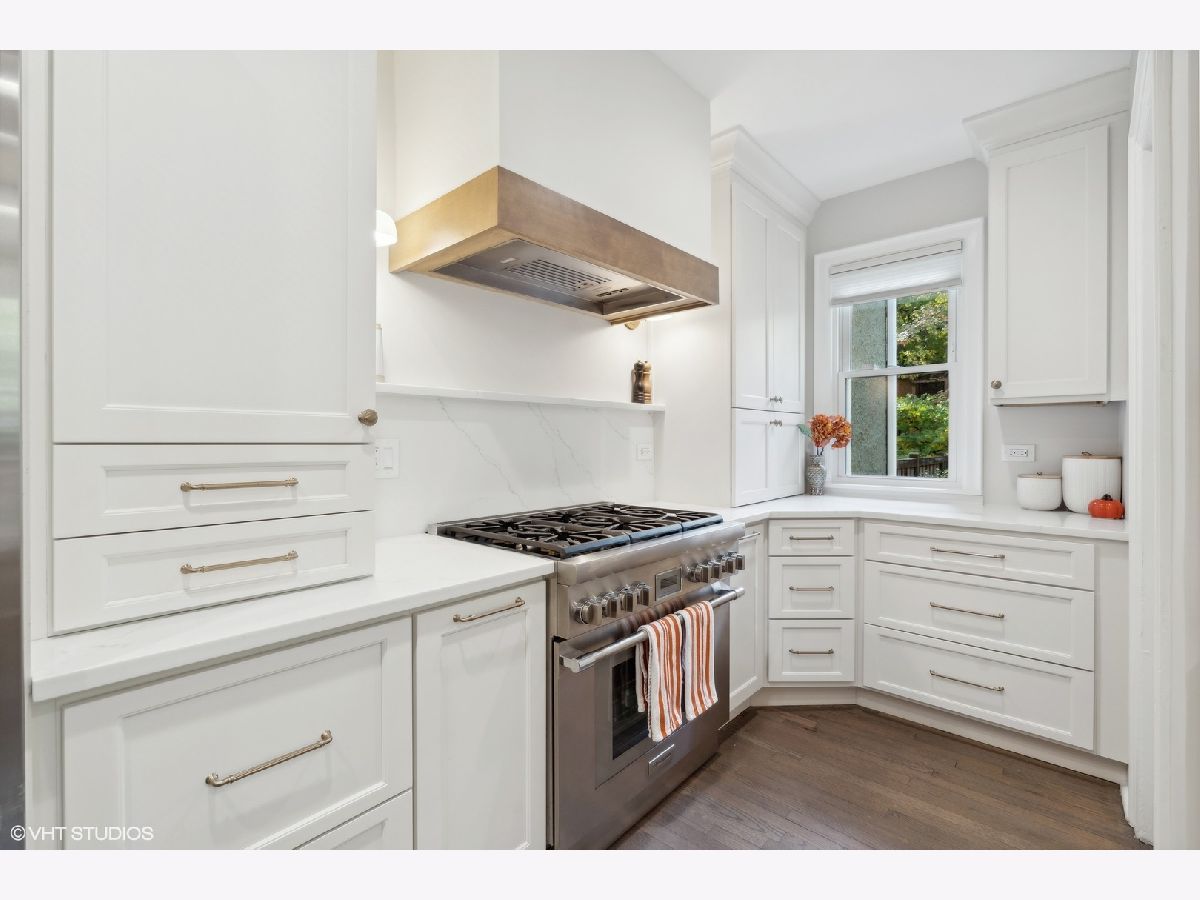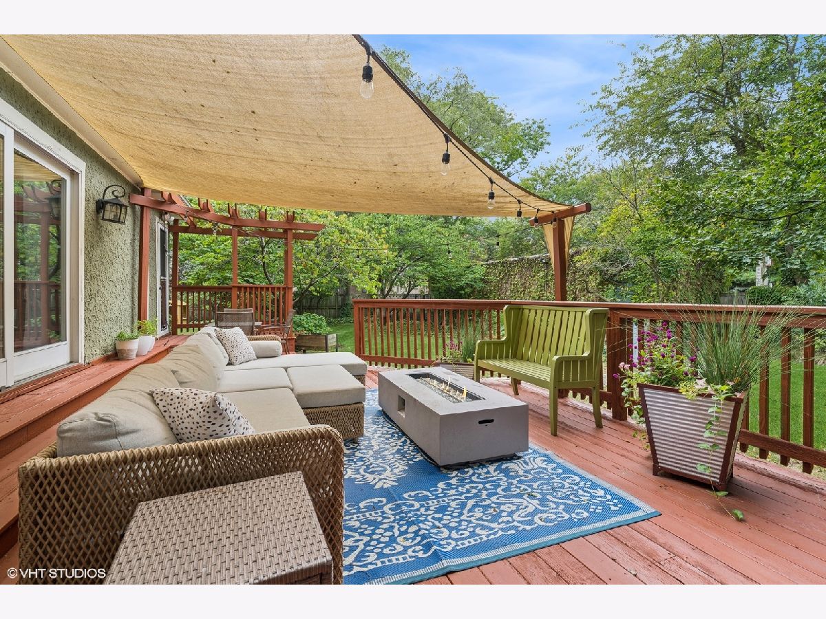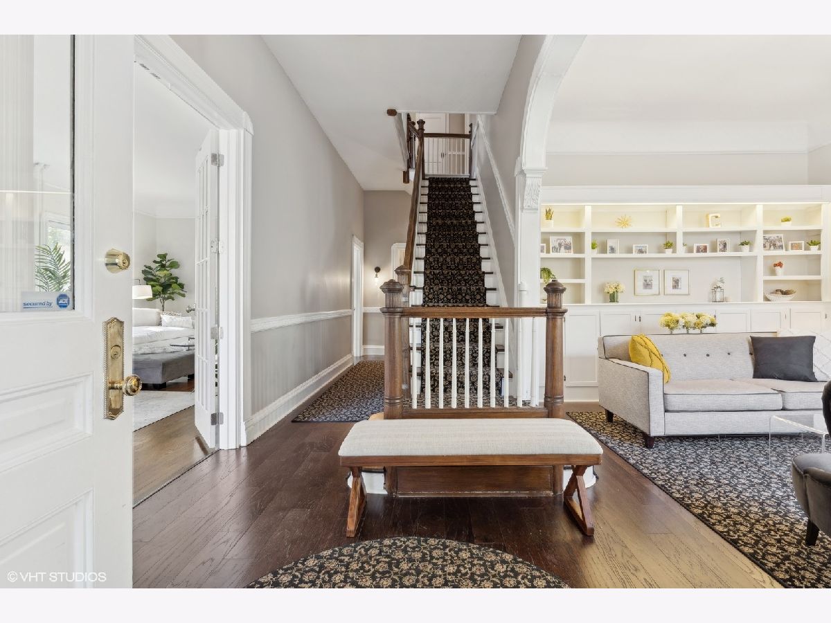 Discover timeless elegance in this beautifully restored three-story home, located in the heart of Evanston's Lakeshore Historic District. Set on a sprawling 100 x 158 corner lot, this property combines classic architecture with modern touches throughout. The newly renovated (2023) kitchen is a showstopper, featuring sleek quartz countertops, premium stainless steel appliances, custom cabinetry, and a new butler's pantry. The main floor, with its soaring 11' ceilings, boasts both a formal sitting and living room, perfect for gatherings. The family room features a cozy fireplace that opens up to a large deck and an expansive backyard oasis with mature trees and professionally manicured landscaping. The second level continues to impress with high ceilings and four generously sized bedrooms, including a serene primary suite with a spacious walk-in closet and a luxurious stone bathroom. The impressive top floor serves as a second family room and office space with arched ceilings and abundant natural light, perfect for enjoying sunrises over lakefront foliage. Complete with a convenient half-bath, this space offers flexibility for a fifth bedroom. Additional highlights include a substantial four-car brick garage for ample storage or passive rental income, and a basement with a drain tile system offering potential for future expansion. Just steps from the lakefront and within easy reach of public transit, downtown Evanston's shops, and dining, this grand home is ideally situated for both convenience and leisure.