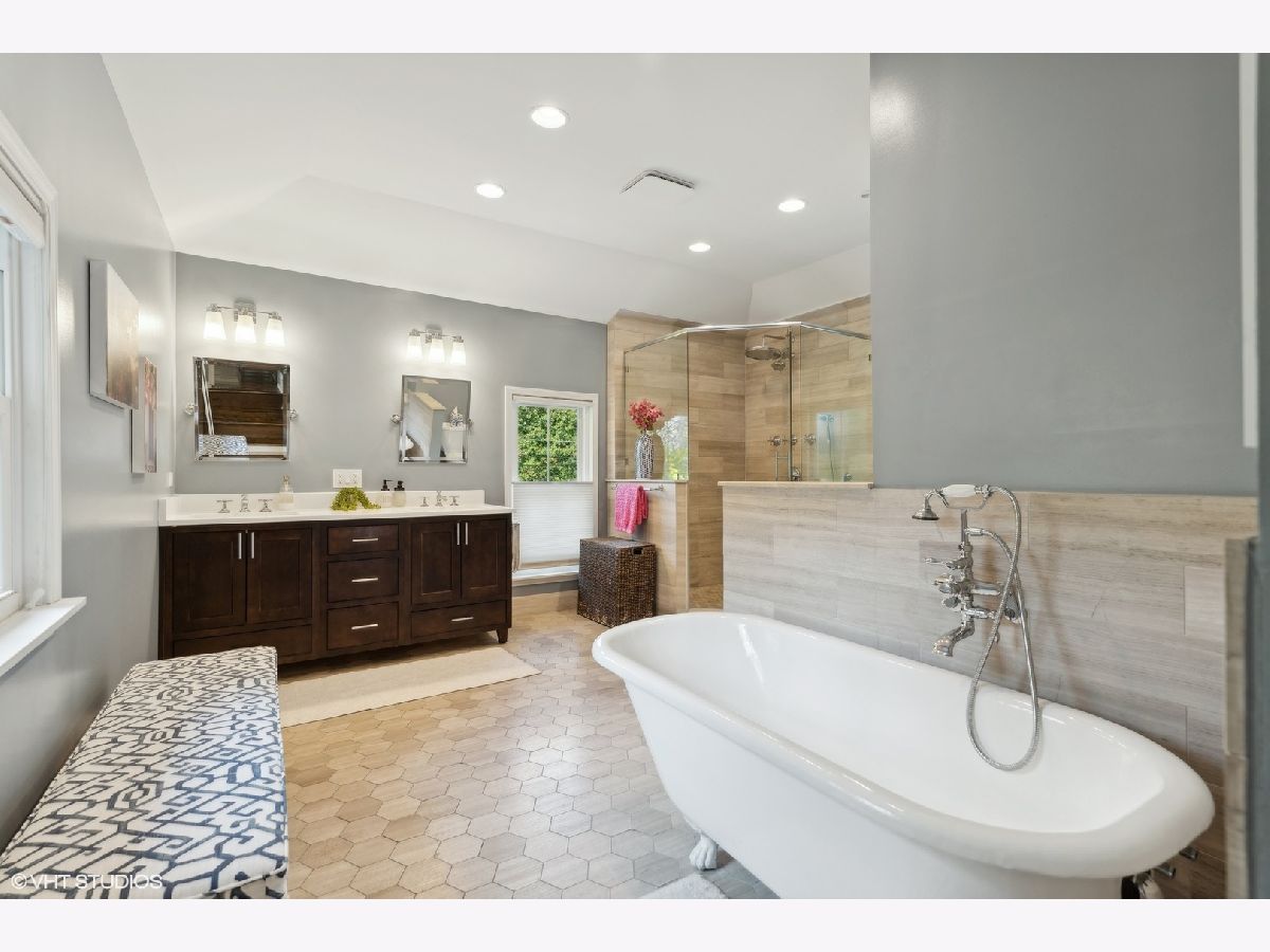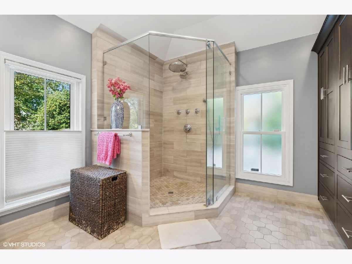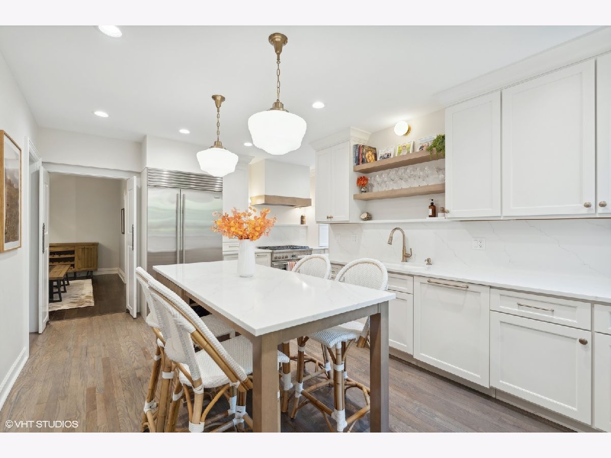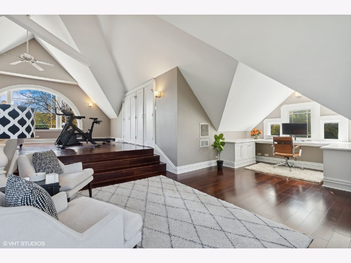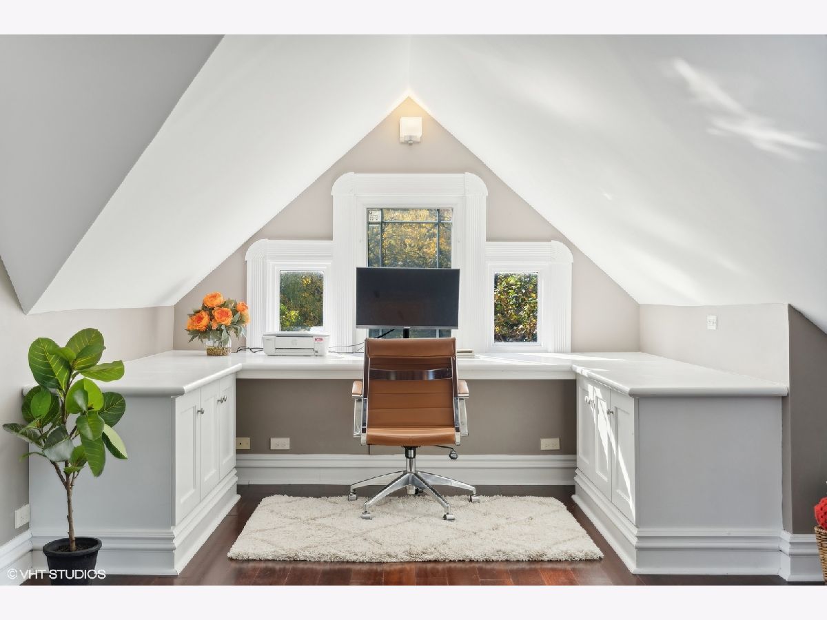 Discover timeless elegance in this beautifully restored three-story home, located in the heart of Evanston's Lakeshore Historic District. Set on a sprawling 100 x 158 corner lot, this property combines classic architecture with modern touches throughout. The newly renovated (2023) kitchen is a showstopper, featuring sleek quartz countertops, premium stainless steel appliances, custom cabinetry, and a new butler's pantry. The main floor, with its soaring 11' ceilings, boasts both a formal sitting and living room, perfect for gatherings. The family room features a cozy fireplace that opens up to a large deck and an expansive backyard oasis with mature trees and professionally manicured landscaping. The second level continues to impress with high ceilings and four generously sized bedrooms, including a serene primary suite with a spacious walk-in closet and a luxurious stone bathroom. The impressive top floor serves as a second family room and office space with arched ceilings and abundant natural light, perfect for enjoying sunrises over lakefront foliage. Complete with a convenient half-bath, this space offers flexibility for a fifth bedroom. Additional highlights include a substantial four-car brick garage for ample storage or passive rental income, and a basement with a drain tile system offering potential for future expansion. Just steps from the lakefront and within easy reach of public transit, downtown Evanston's shops, and dining, this grand home is ideally situated for both convenience and leisure.