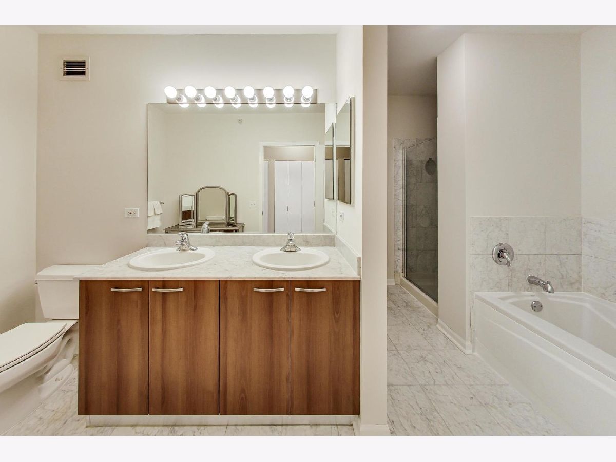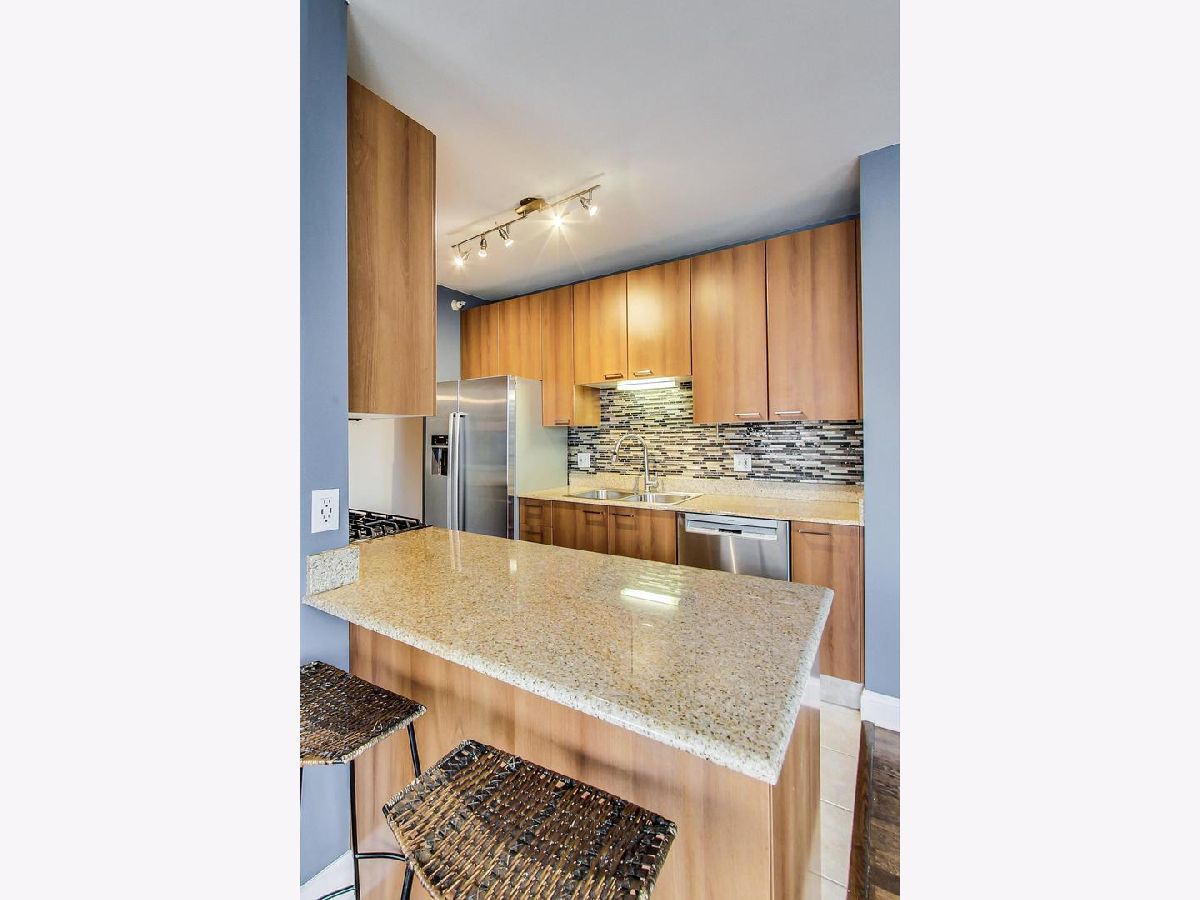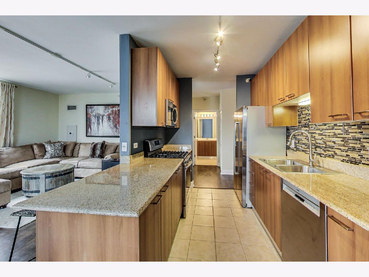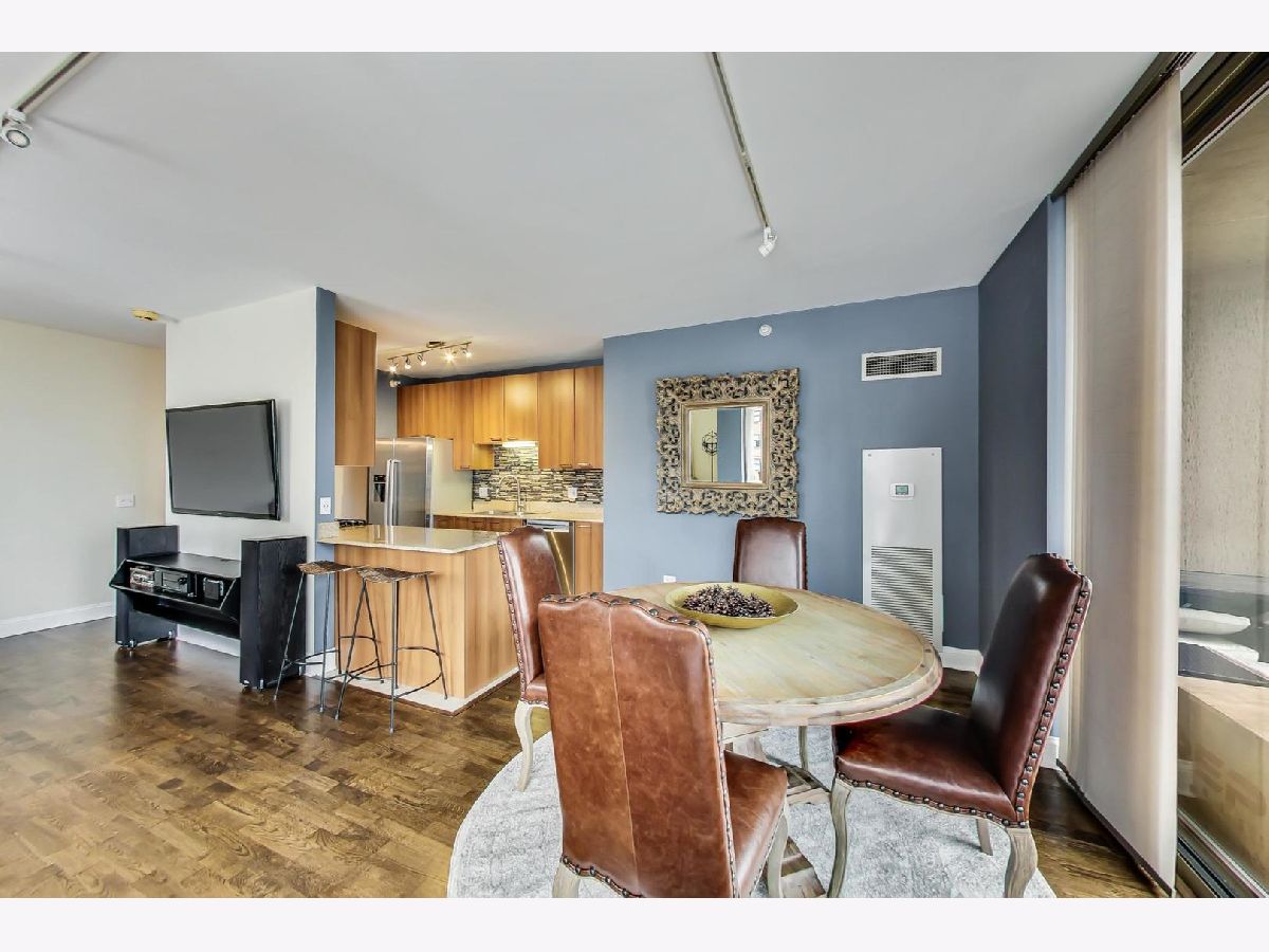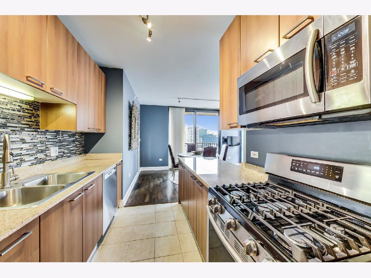 Come see this sleek home boasting city views in the heart of River North! This 2 bed, 2 bath home features a massive private balcony, and an amazing primary suite. Enter into an inviting proper foyer with a coat closet, direct access to your primary suite, and a hallway that expands to your main living area. The spacious living+dining area with track lighting, floor-to-ceiling windows, and direct access to a wraparound private balcony off of the dining area encourages year around hosting. Beautiful semi-closed kitchen with modern backsplash, breakfast bar (seating for 2), stainless steel appliances, granite countertops, and ample cabinet & meal prep space. Impressive primary suite boasting a walk-in closet, TWO additional closets, unique light fixture, and soothing ensuite bath with a separate shower & tub and dual vanity with an oversized mirror. Top it off with another full-sized bedroom with ample closet space, and easy access to your 2nd full bath & in-unit laundry. Great building amenities such as 24/7 doorman, fitness center, guest suite, and community room. Assessments include heat, a/c, gas, water, and cable. Just a stroll away from grocery stores (Whole Foods, Trader Joe's), Mag Mile, public transportation, and delicious dining restaurants at your fingertips. Make this your home before it's too late!