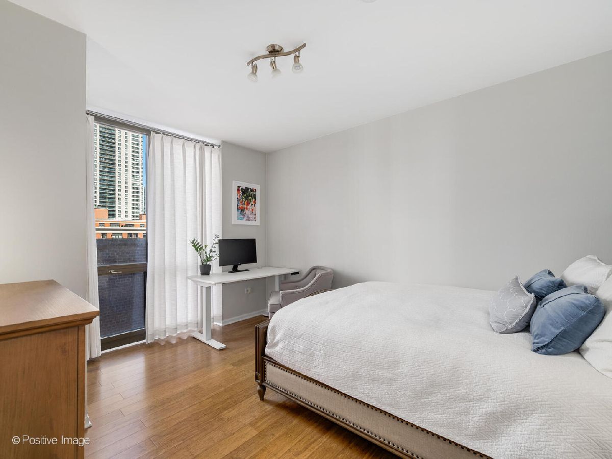 Step into refined city living in the heart of River North, where sleek design meets everyday comfort. This light-filled 2-bedroom, 2-bathroom home pairs striking city views with a beautifully curated interior. At the heart of the home is a fully customized chef's kitchen, designed to elevate your everyday. Outfitted with dramatic stone countertops and backsplash, sleek Snaidero cabinetry, and top-tier appliances including Sub-Zero, Thermador, and Miele, this space is as functional as it is stunning. The open-concept living and dining area features polished marble flooring and floor-to-ceiling windows that flood the space with natural light. A private balcony extends your living space outdoors. In the bedrooms, bamboo floors and custom closets offer warmth and function, while the serene, spa-inspired primary bath features a double vanity and deep tub. Additional upgrades include custom window treatments, in-unit laundry, and a private storage unit. Heated garage parking space is available for an additional 25,000. Set within The Caravel, a full-service building with 24-hour door staff, an updated fitness center, and exceptional on-site management. This is city living without compromise-steps from LifeTime, Whole Foods, Trader Joe's, CTA, and some of Chicago's best dining and shopping.