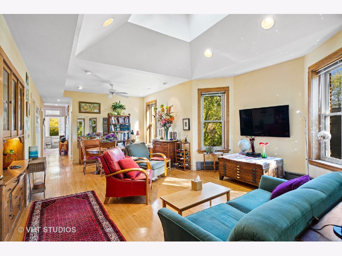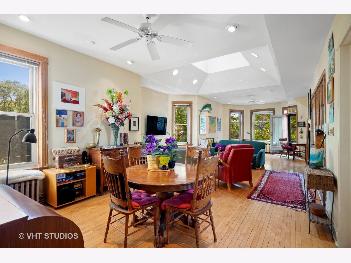 Edgewater Beauty- Legal 3-Unit Building on a rarely available extra-wide and extra-deep 34 ft by 162 ft lot with 4-car garage parking in your all brick garage! Perfect for the owner occupant buyer looking to have an amazing yard and income from two apartments to pay their mortgage or an investor owner looking for a 3-unit building with great income potential. Current long-time owners occupy the top floor penthouse and use 2BR lower floor apartment for artist workshop although it would easily rent out for additional rental income. Building has been lovingly cared for and the owner's unit has incredible light from its many unobstructed windows and the custom installed skylight in the living room. Great layout with views everywhere due to having no building on either side of the property. Very spacious kitchen with tons of cabinets and table space, huge walk-in pantry and adjacent back porch, large open living and dining room with beautiful original built-in hutch. It also has gas forced air heating and central air conditioning. You can feel the extra-wide width of this building due to the large lot size in the bedrooms and living space as well. Spacious living room with a private walk-out balcony and great office space in addition to the two bedrooms. Hardwood floors and great ceiling height throughout all three apartments. Middle apartment is rented out on a month-to-month basis and was previously rented out for $1,790 per month before owners provided a reduced rent due to Covid. All this with 4-car garage parking for your usage or extra rental income! Great location on a quiet tree-lined street just 2 blocks from Clark and Devon Hardware, 4 blocks to the Devon Market, 6 blocks to the wildly popular Uncommon Ground Restaurant, a plethora of cafes, restaurants and a short distance Loyola University and Andersonville as well.