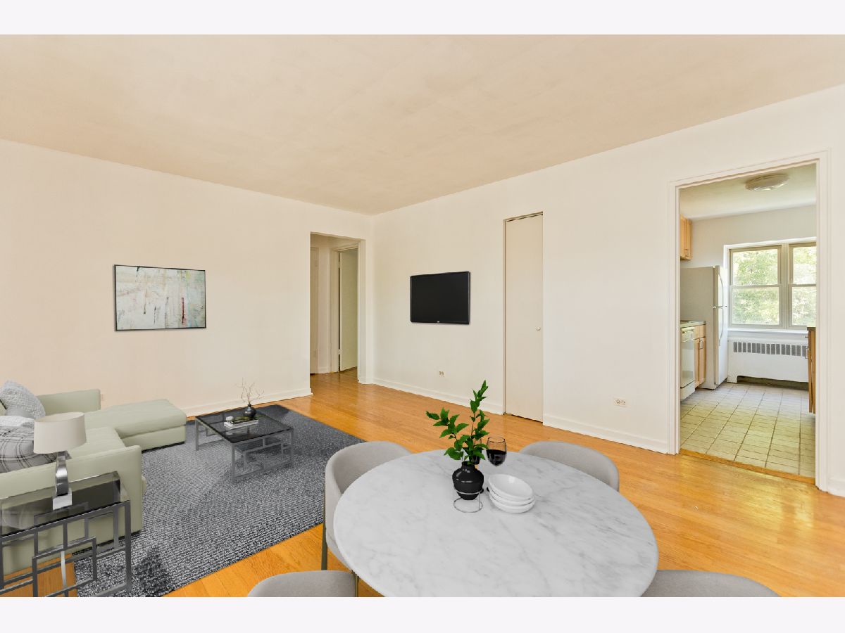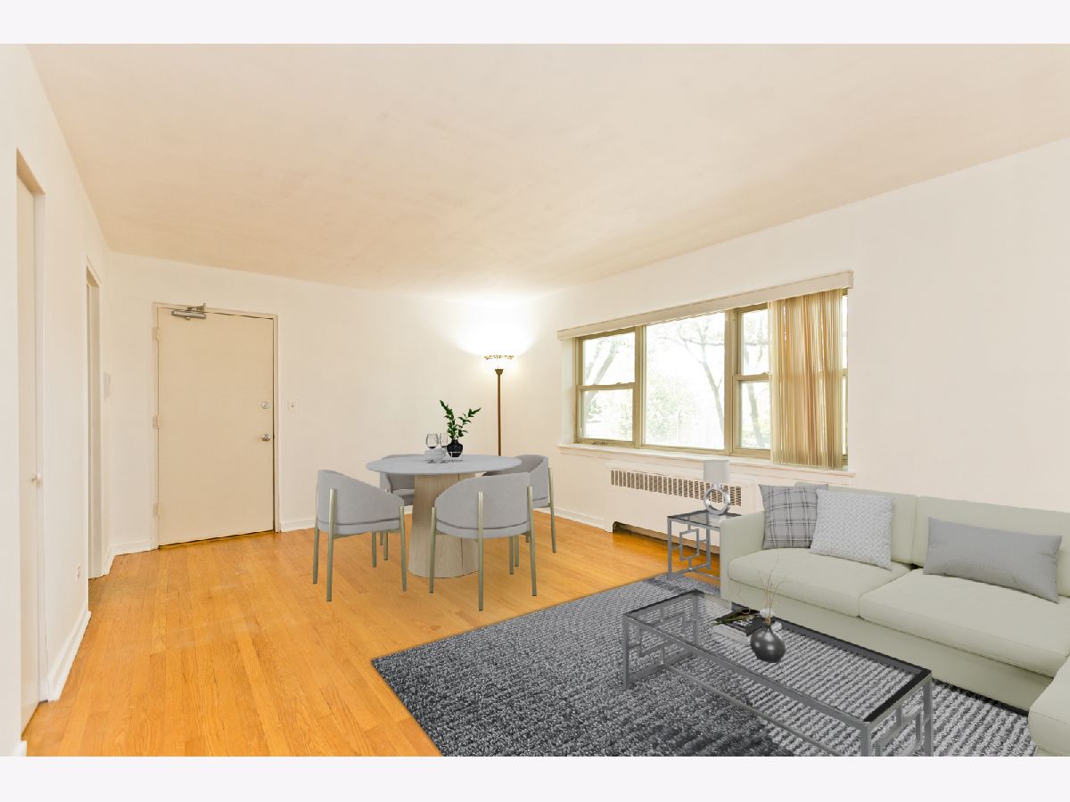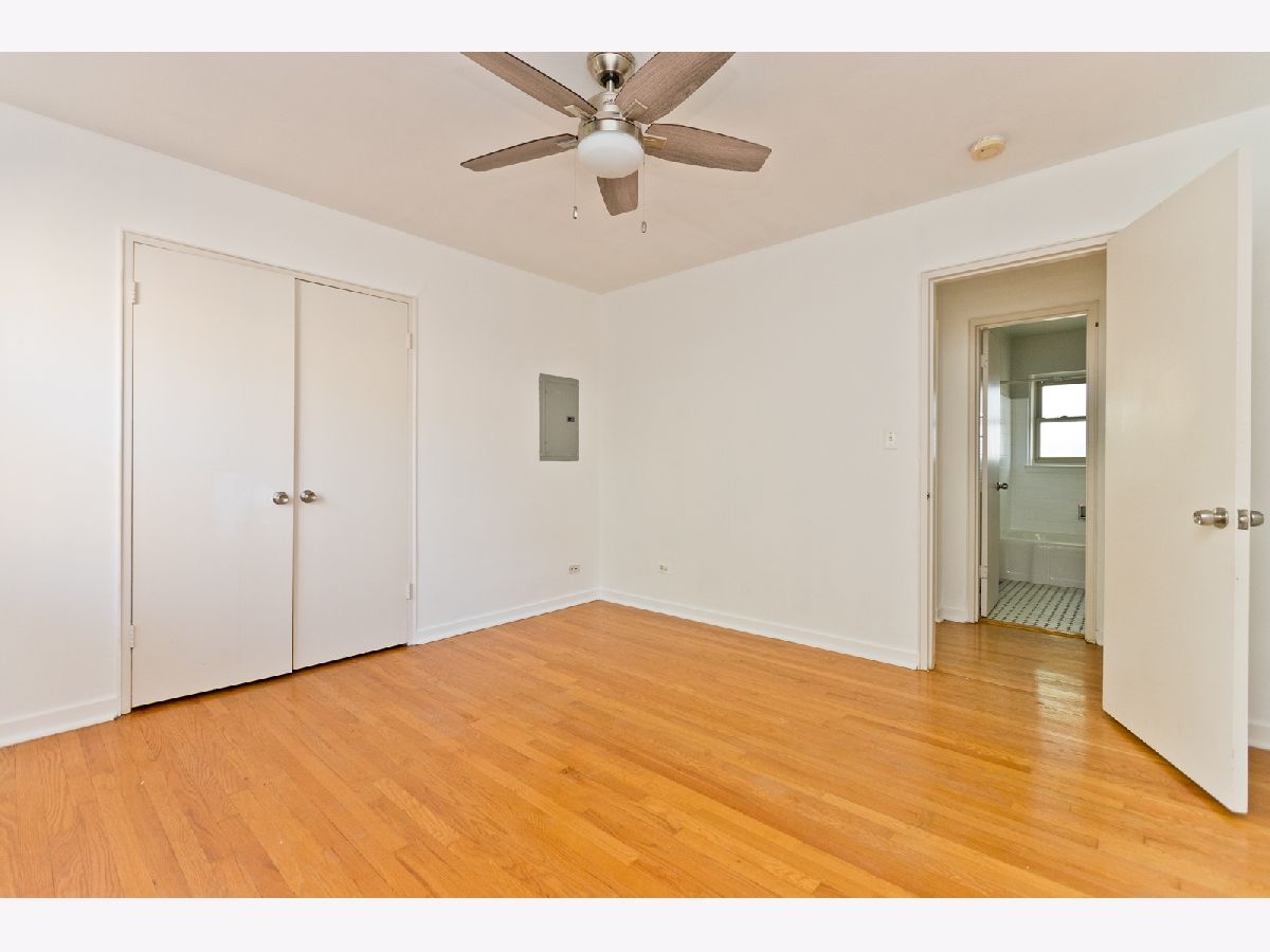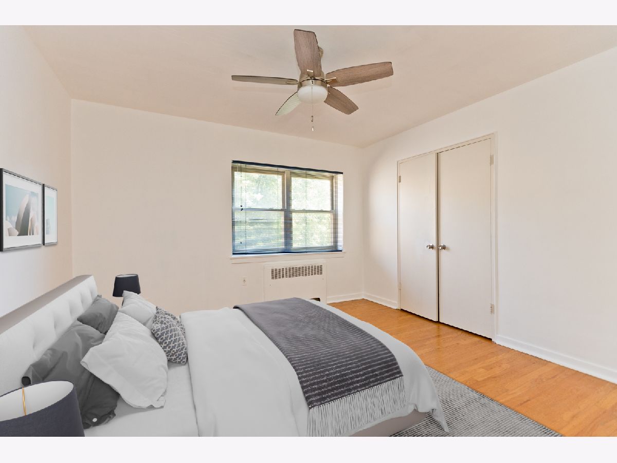 Bright, sunny, top floor one bedroom! Modern, fully applianced kitchen with 42" maple cabinets, and ceramic tile floor. Spacious living room/dining room combo with south facing windows overlooking treelined residential street. Large bedroom with huge closet! Unit features oak hardwood floors, a/c unit, and double thermal pane windows. One block to fun bars and restaurants like Peckish Pig, Ward 8, and Jamaica Jerk. A few short blocks to Red and Purple Line stations, and Jewel. Professionally managed building. Large fenced back yard. Private storage locker in basement. City parking lot #18 is just down the street. Spaces rent for $90/mo--currently wait listed. Pet and investor friendly building!