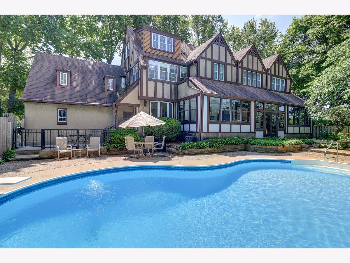 Fabulous English Tudor style home with two stairways, two fireplaces with new inserts, and maid quarters. Every attention spent to detail! Every bedroom suite has its own sitting and dressing room with a total of 4. Third floor study could be an apartment. The dinette (12' x 12') opens to the kitchen and has its own fireplace. Glass pocket doors between dinette and the den. There are wood floors under the carpeting except the den. 26'2 x 12" floored attic that houses the second central air unit. 3 adjacent sun porches totaling 278 Sq Ft with slate flooring. Kidney shaped heated inground pool with fence. (Updates include most new windows, roof in 2003 with gutter guards and most exterior trim has been wrapped.)
