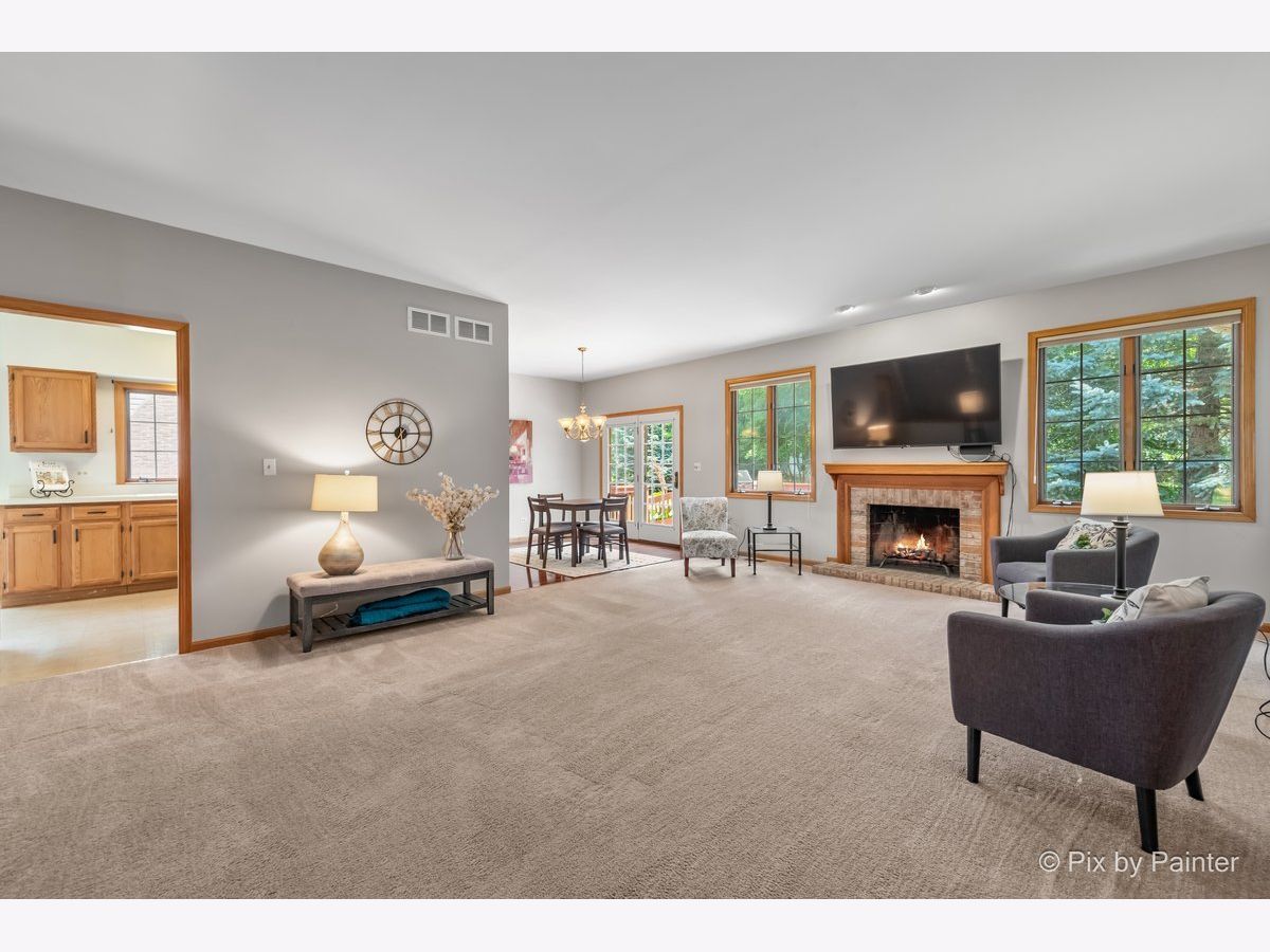 3520 sq ft of Light, Bright, Maintenance Free Ranch Living! Welcome Home to this 3 Bed, 3 FULL BATH ranch in tranquil, sought-after Bartlett on the Green, within Villa Olivia Golf Course. Freshly Painted in Today's Neutral Color Palette, this home features Soaring 9-Foot Ceilings & an Floor Plan that's Perfect for everyday living & effortless entertaining. A Covered Entry & Spacious Foyer warmly welcome your guests. The generous living space easily accommodates a comfy sectional, grand piano, or big screen TV ~ all centered around a Classic Brick Fireplace. The Eat-in-Kitchen offers abundant cabinetry & plenty of counter space for prepping, baking & serving. You'll enjoy the sliding glass door for breezes, laundry around the corner & open flow to the formal dining area ~ ideal for hosting holidays. The KING-SIZED PRIMARY SUITE is your Private Retreat, complete with a Walk-in-Closet & Generous En Suite Bath with Soaking Tub & Separate Shower. A Sizey Front Room with Bay Window Gives You Options ~ Office, 3rd Bedroom, Craft Room, Workout Space, Toy Room ~ whatever you need. The Finished Basement expands your living space with a Full Bath & Built-in-Wet-Bar ~ the Perfect Spot for overnight guests, game nights, or movie marathons. You'll enjoy Storage Galore in the unfinished portion, PLUS Raised, Cemented Crawl Space. Outside, relax on the deck and take in the beautifully landscaped yard, perfect for summer dinners or quiet morning coffee. All of this is just minutes from charming downtown Bartlett, Metra & easy access to highways. Association takes care of lawn care & snow removal for maintenance-free living so you can RELAX & ENJOY! Selling "As Is" ~ Ready for your touches. See it TODAY & Make it YOURS ~ Before Someone Else Does...