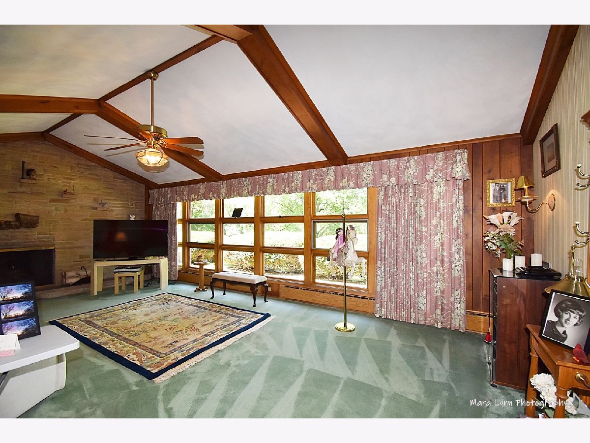 Built by European craftsman in the 1950's, this exceptional one-owner brick & stone home is situated on a 1+ acre, one-of-a-kind lot adjacent to Phillips Park! The open concept floor plan with vaulted ceilings offers plenty of room to spread out! The gorgeous walnut, knotty pine, and alder wood paneling is found throughout the home. The great room boasts a wall of windows overlooking the deep back yard consisting of oaks, maples, birch, evergreens and other varieties. The vaulted beamed ceiling has a stunning floor to ceiling stone fireplace. The large dining room has a big bay window and opens to the kitchen. The extra wide galley kitchen has room for a table, miles of granite c-tops and great cabinet space. The bedroom hall offers beautiful cork floors and scatters to the 4 bedrooms. The primary bedroom suite has hardwood floors, big wall closet and private full bath. Three more bedrooms, 2 with hardwood floors, and 1 with cork floor. Full hall bath with original tile, sinks & tub in amazing condition! Big main floor laundry room with utility sink and cabinets. One of your favorite places in this home will be the screened porch with fireplace/oven and peaceful views of the patio & stunning yard! Full basement is partially finished and has a family room with brick fireplace and wet bar, 1/2 bath, shower room, and more storage than you can imagine! Two car side load garage & storage shed. This is the chance of a lifetime to live next door to Phillips Park and it's golf course, pool, Mastodon lake with island park and so much more! Additional 126.95 x 329.34 adjacent parcel (15-26-352-005) available (for additional $$$) which the city represents as being buildable. *Sale price includes vacant adjacent lot.*