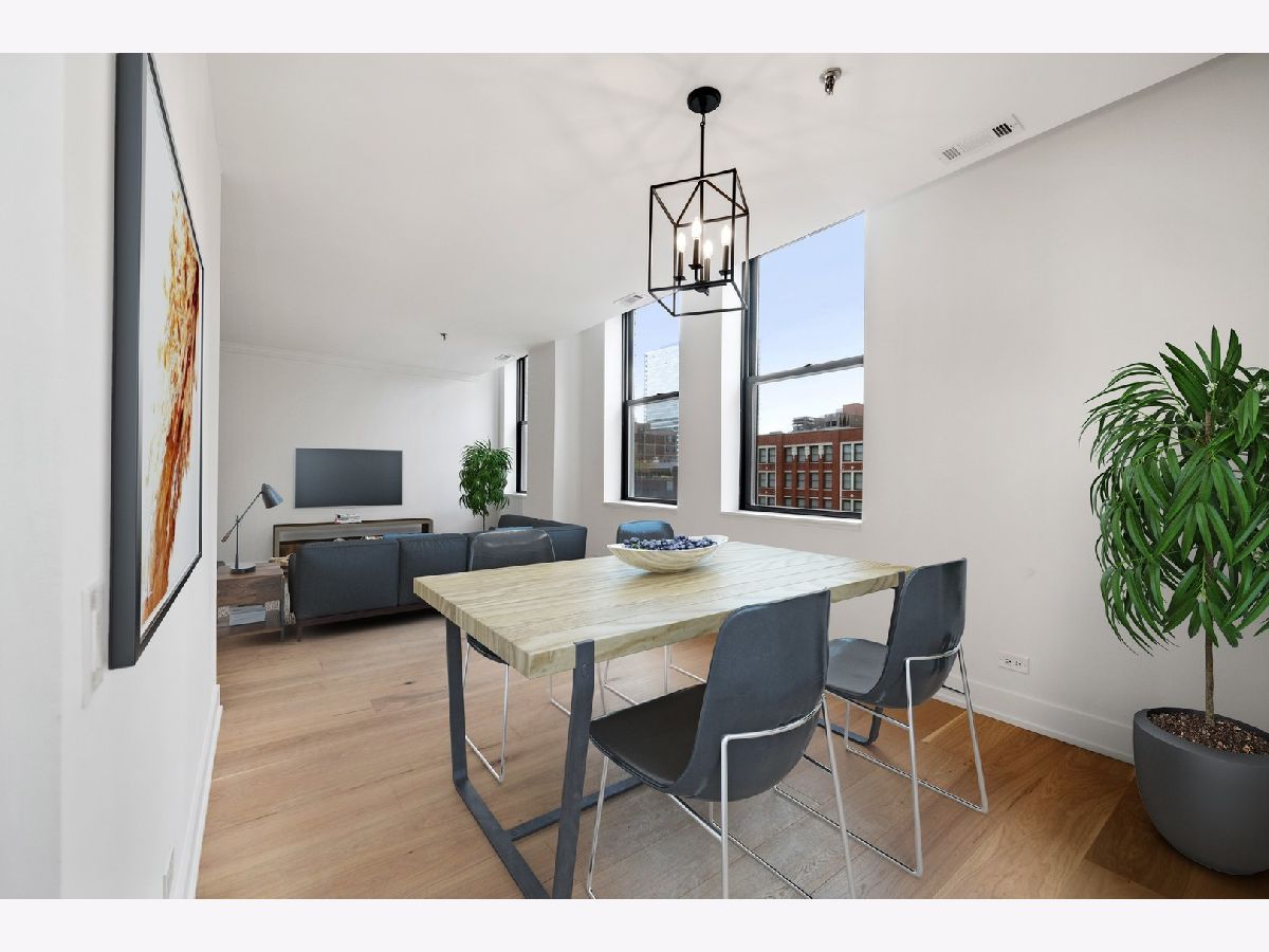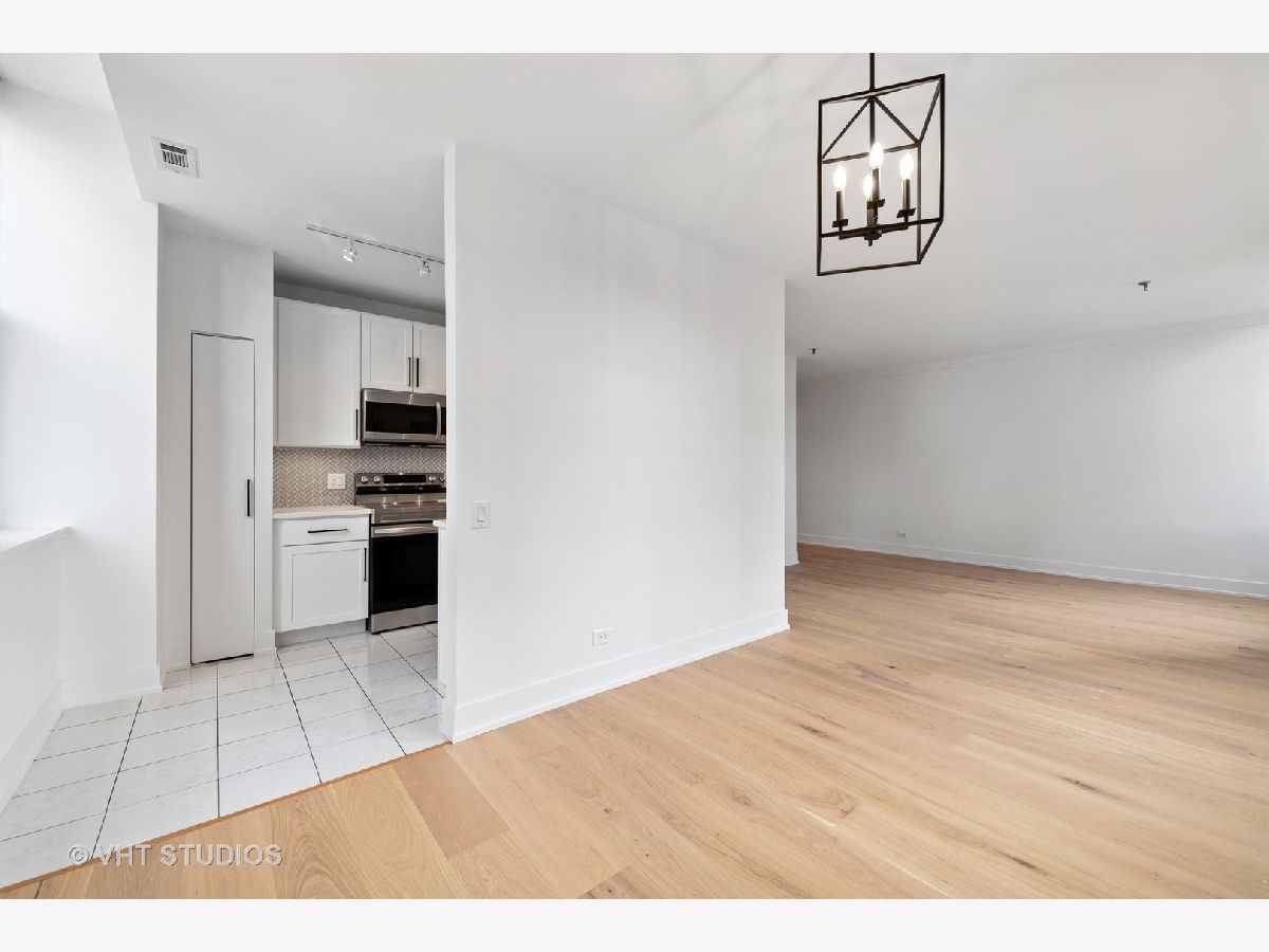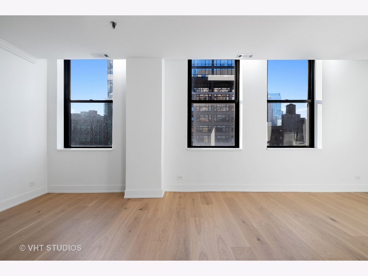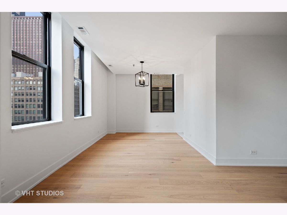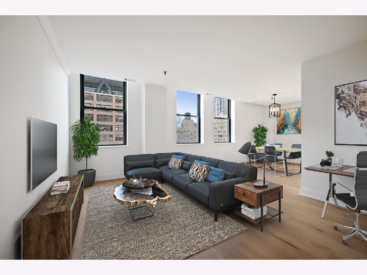 Chic + bright brand new 1BR large corner unit in prime Printer's Row! Everything new in 2021 including furnace, central AC and WASHER/DRYER IN UNIT. Brand new kitchen with 42 inch wood white shaker style cabinets with under cabinet lighting, matte black fixtures, white quartz counters, backsplash, and SS Samsung fridge, oven, microwave and dishwasher opens up to dedicated dining area. Spacious living/dining/office or workout studio area features 4 huge windows and awesome city views. Stylish new black + white bath features glass shower with full height tile surround, matte black fixtures, quartz counters on new vanity with great storage. Wide plank farmhouse wood floors, separate workout/den nook, brand new carpet in king-sized bedroom, incredible in unit storage includes coat, hall/linen + pantry closets plus additional extra storage right on your floor complete this awesome home. Fitness Center + Full Service Dry Cleaner onsite! Steps to all of Printer's Row dining, parks, shopping, Grant Park, Millennium Park, Lake Michigan, Art Institute + schools.