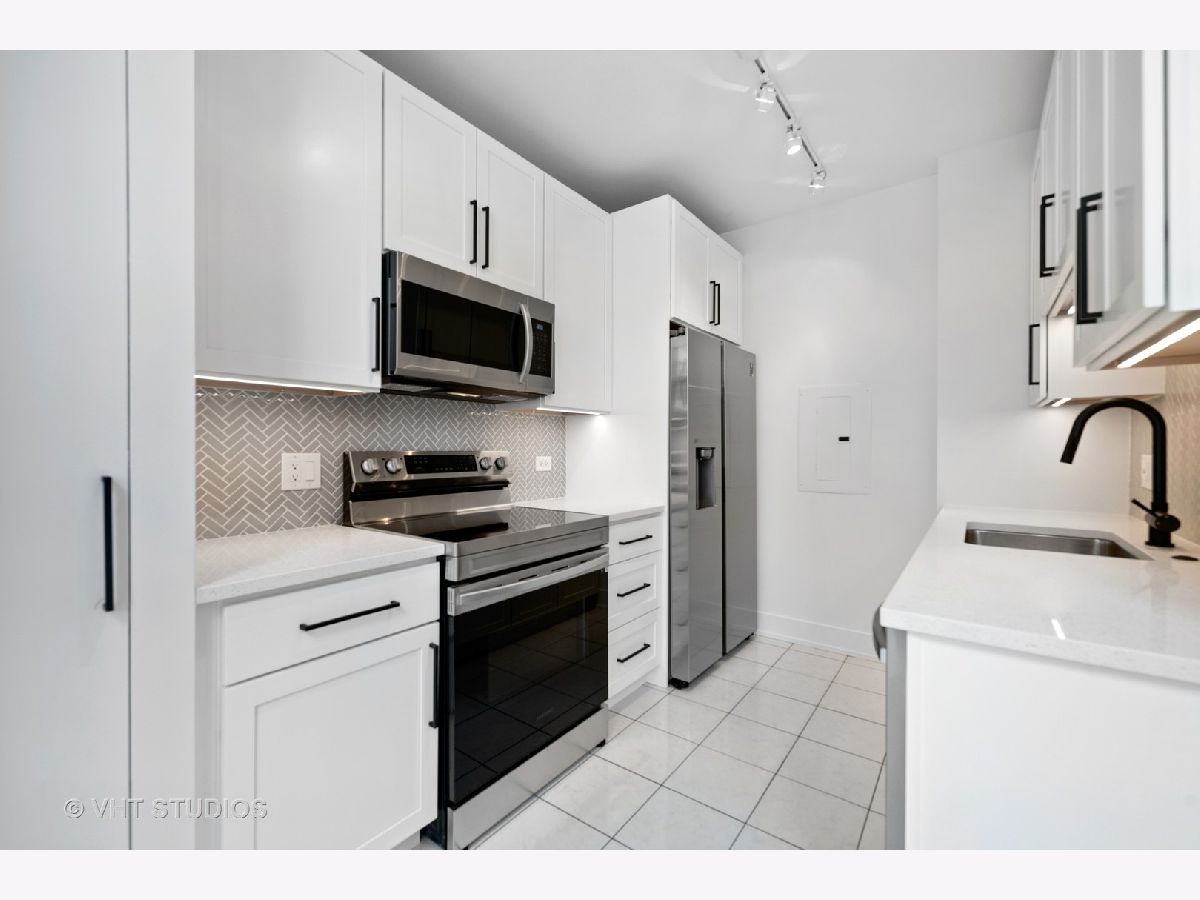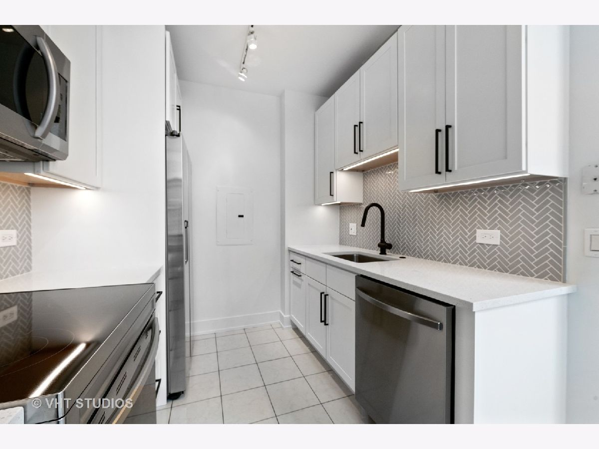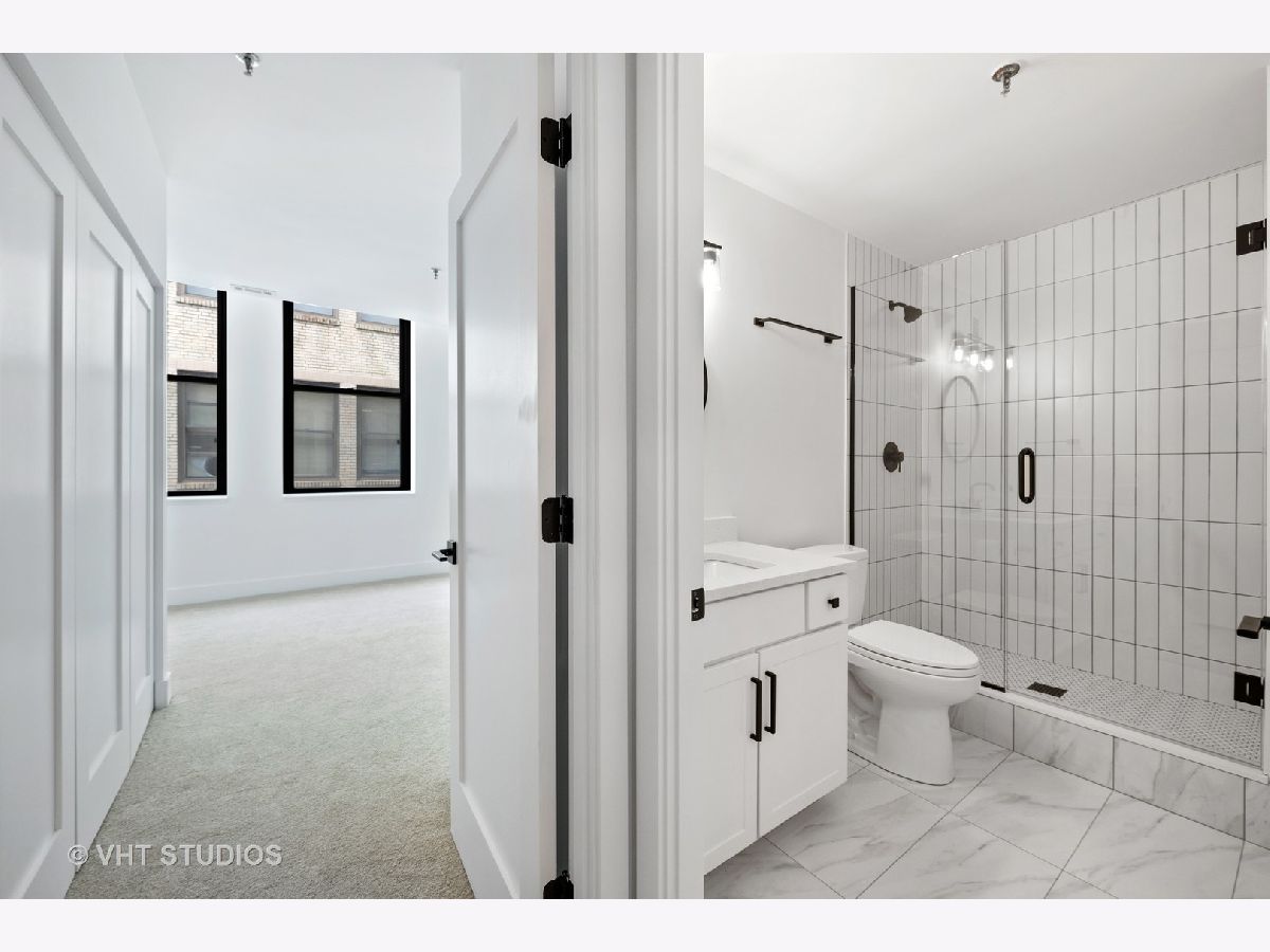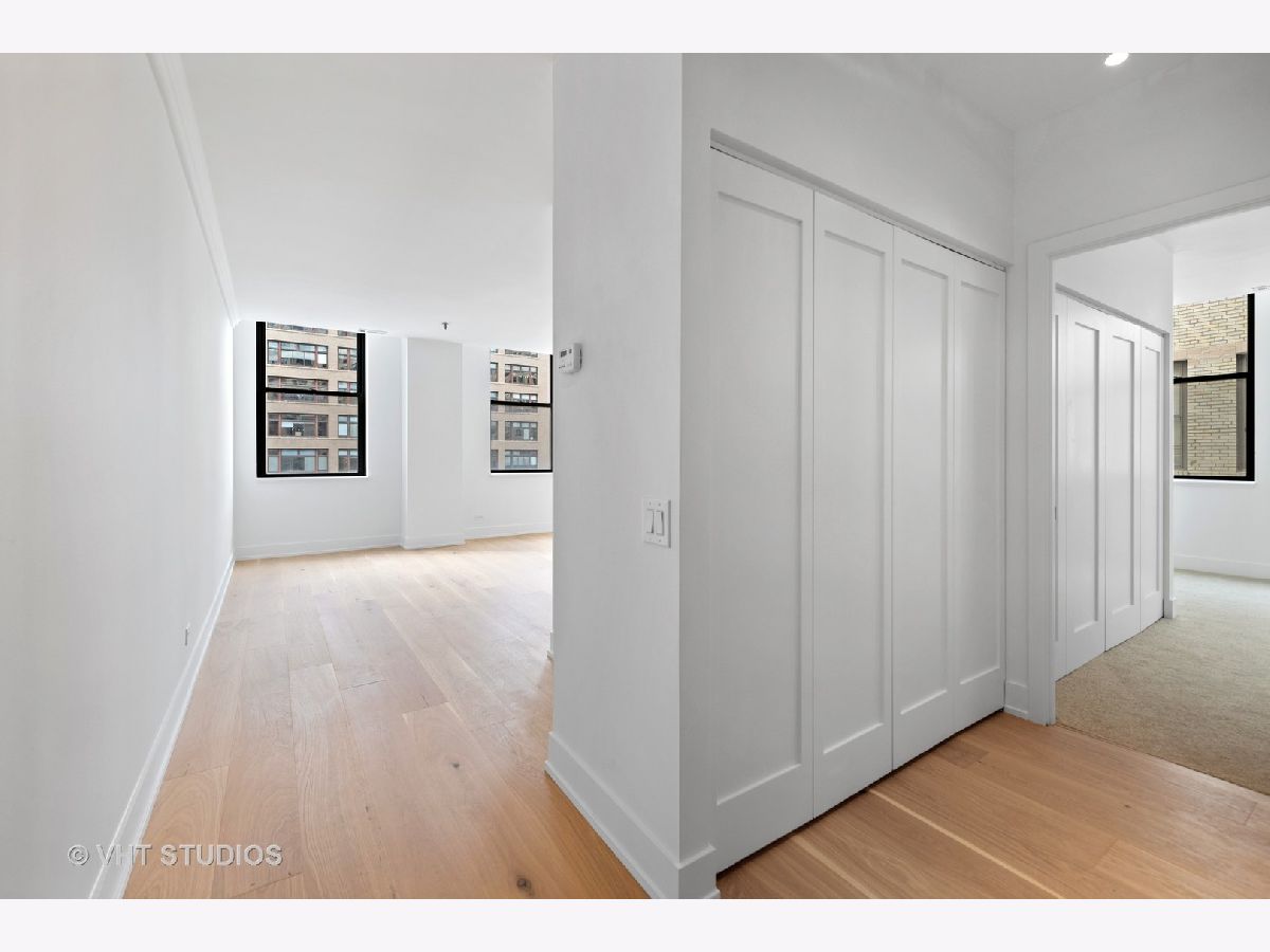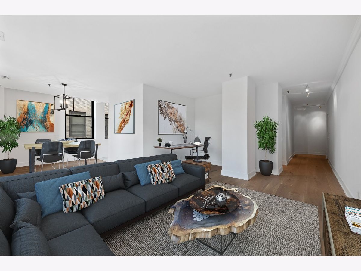 Chic + bright brand new 1BR large corner unit in prime Printer's Row! Everything new in 2021 including furnace, central AC and WASHER/DRYER IN UNIT. Brand new kitchen with 42 inch wood white shaker style cabinets with under cabinet lighting, matte black fixtures, white quartz counters, backsplash, and SS Samsung fridge, oven, microwave and dishwasher opens up to dedicated dining area. Spacious living/dining/office or workout studio area features 4 huge windows and awesome city views. Stylish new black + white bath features glass shower with full height tile surround, matte black fixtures, quartz counters on new vanity with great storage. Wide plank farmhouse wood floors, separate workout/den nook, brand new carpet in king-sized bedroom, incredible in unit storage includes coat, hall/linen + pantry closets plus additional extra storage right on your floor complete this awesome home. Fitness Center + Full Service Dry Cleaner onsite! Steps to all of Printer's Row dining, parks, shopping, Grant Park, Millennium Park, Lake Michigan, Art Institute + schools.