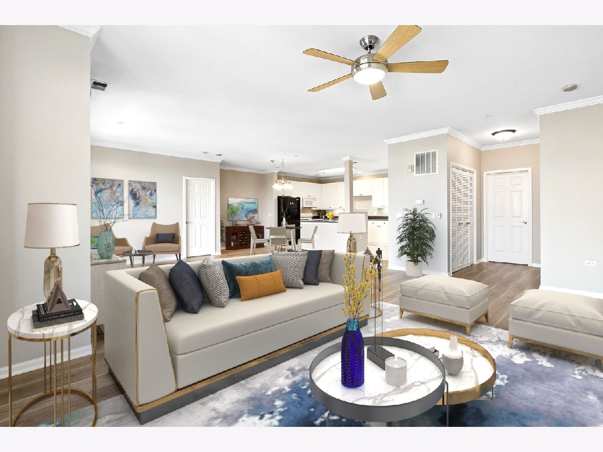 ***MULTIPLE OFFERS RECEIVED - HIGHEST AND BEST DUE BY FRIDAY, 1/28/22, at 5pm*** Welcome to this top floor, open concept condo in an elevator building. Soft, natural light fills the space through newer Marvin windows and an atrium door. This home boasts new wood-laminate flooring and carpeting, and has been freshly painted throughout. The kitchen offers gleaming white cabinets and abundant counter space; under-cabinet lighting; a peninsula with electrical outlets; ceramic tile flooring and all appliances. There is a dining area with furniture nook just past the kitchen. This is adjacent to the sitting area and Living Room, with a wall of windows and atrium door leading to your private balcony with composite decking. The bedrooms are on opposite sides of the main living space. The Primary Suite has a large bedroom with soft, natural light and room-darkening honeycomb blinds; a lighted ceiling fan; large walk-in closet with an organization system; new plush, neutral carpeting; and a private bathroom with a raised vanity, soaking tub, step-in shower with grab bars, linen closet, and neutral ceramic tile flooring. The 2nd bedroom is generously sized and has great natural light from the new windows; plus honeycomb blinds; ceiling light fixture; large wall closet; and new plush, neutral carpeting. The 2nd bathroom offers a tub/shower combination and neutral ceramic tile flooring. There is also laundry in-unit with newer, stacked washer/dryer, plus storage shelves with pull-out baskets. Parking is a breeze with your assigned space in the heated, underground garage with direct elevator access to your floor. There is also an individual, gated storage space with shelving directly in front of your parking space. Additional free parking is available in front of the building. Monthly assessment includes water, garbage and basic cable. Weekly cleaning of the common areas keeps everything looking fresh. Great location just minutes from shopping, dining, parks, I-294 and Rt. 53/I-290.