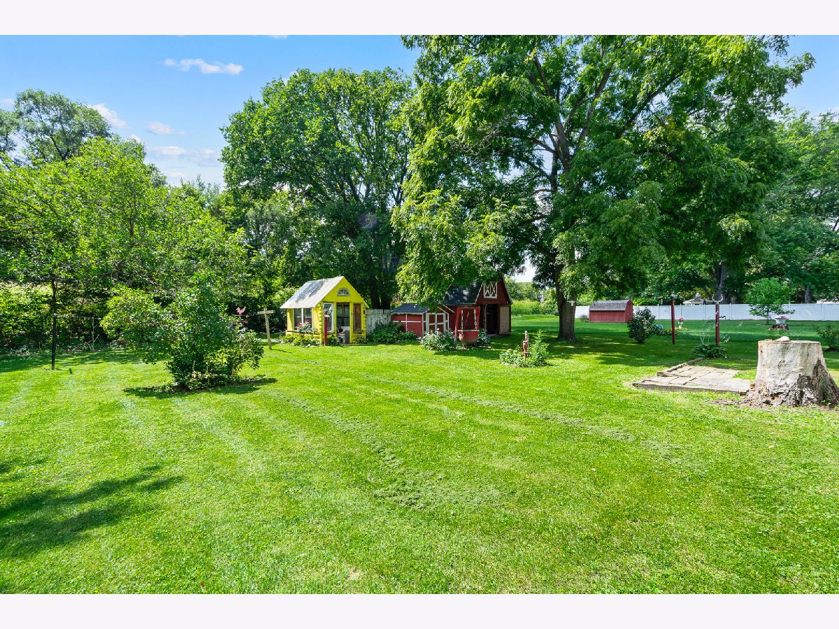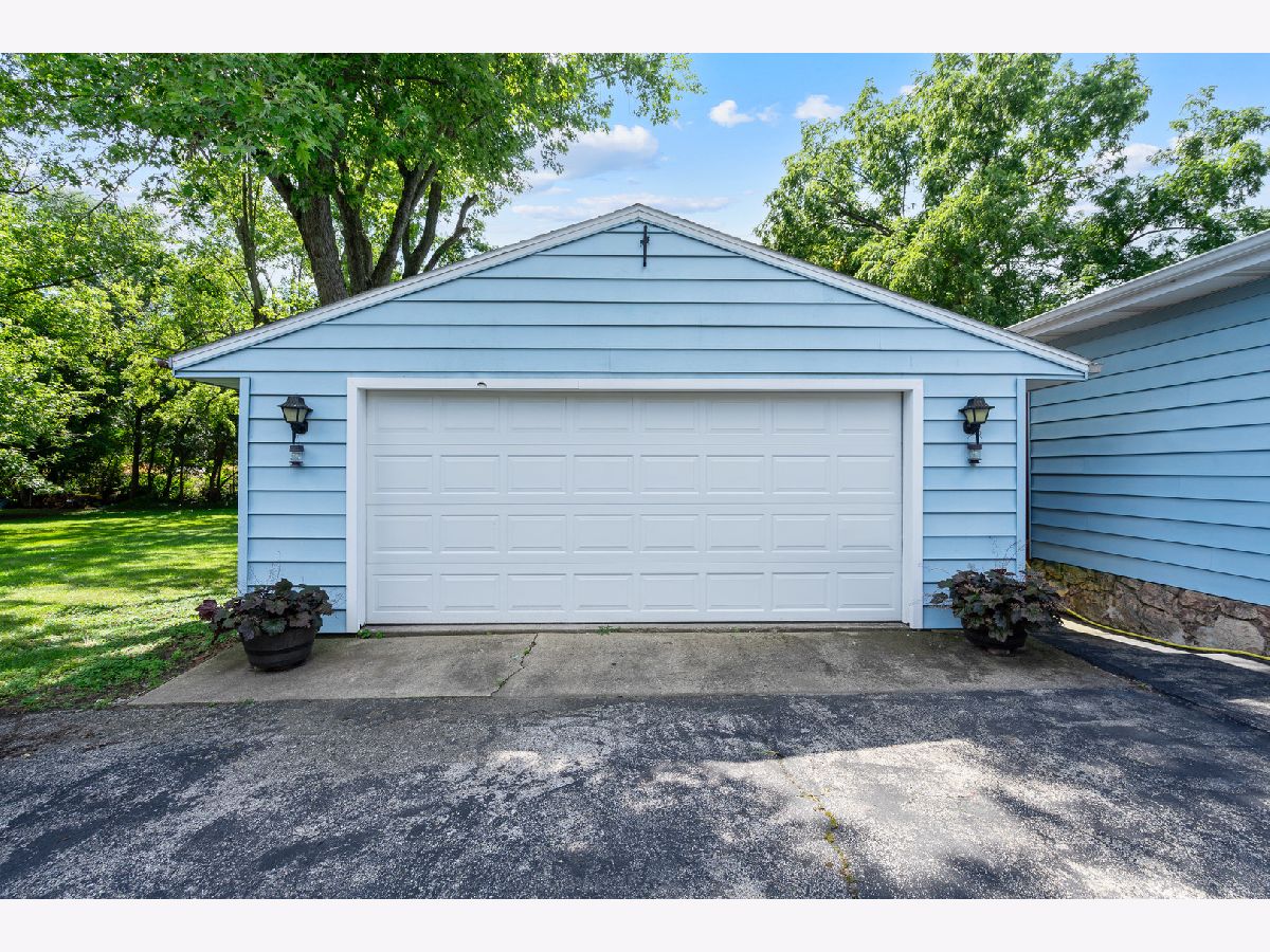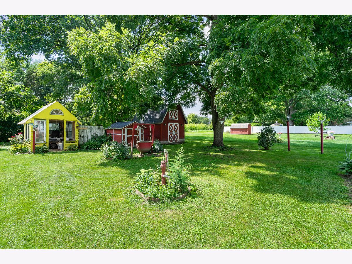 Nestled on a large, tree-lined lot, this adorable and spacious one-story home is full of charm and functionality. Step inside to a sun-filled living room and enjoy the ease of three main-level bedrooms with stylish luxury vinyl plank flooring. The kitchen comes fully equipped with appliances and a pantry, while the delightful three-season sunroom offers serene views of the expansive yard. Outdoors you'll find two storage sheds-one of them a unique two-story shed-plus a greenhouse and an impressive four-car garage complete with built-in workbench and cabinets. The finished basement is perfect for entertaining, featuring a family room with an illuminated wet bar and half bath, along with a large laundry room with plenty of storage. A truly special home with endless space to enjoy both inside and out.