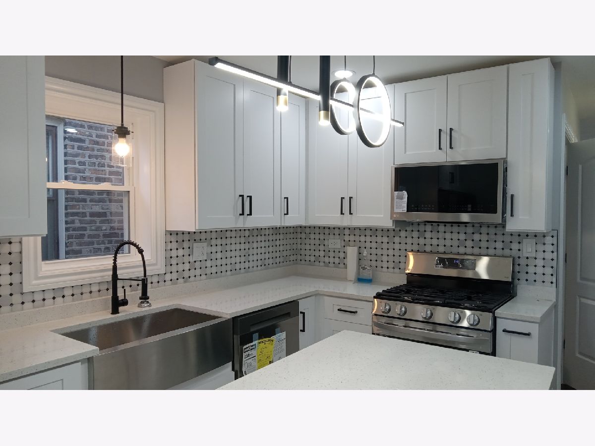 Beautiful 4 Bedroom 3 full bath brick cape cod residence with finished basement. EXTERIOR offers new roofs on house and renovated garage. New central a/c unit and high efficiency furnace. New concrete porch and service walk to the alley. Rebuilt rear deck and wood fencing with sensor lights. New front exterior landscaping. All new windows and exterior doors. INTERIOR offers new plumbing and three newly renovated bathrooms with LED lighted adjustable mirrors. One on each level. Main floor bath offers Jacuzzi tub. Gorgeous kitchen with shaker white cabinets with magnetic drawers, island and quartz counter tops. New stainless steel LG refrigerator, stove, dishwasher and microwave. Deep stainless steel farmer sink. Recessed lighting on all three levels. New white panel interior doors. New overhead remote controlled ceiling fan-light fixtures in all bedrooms and living room. BASEMENT fully finished with 3rd full bath, open recreation room, second summer kitchen with quartz counter tops (no appliances) and finished enclosed laundry room.
