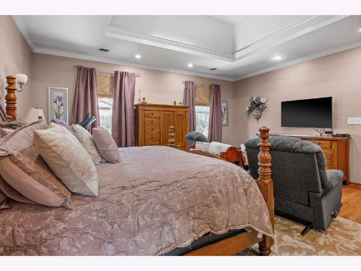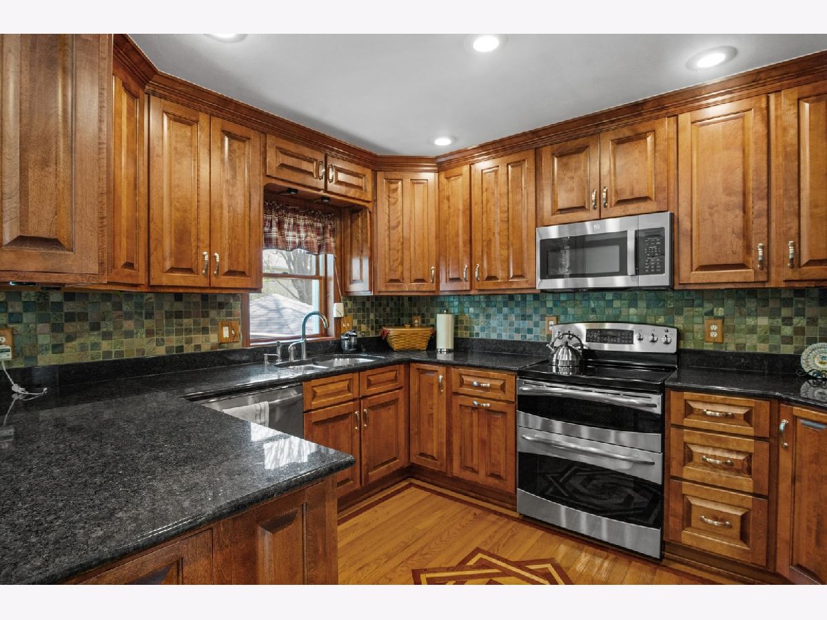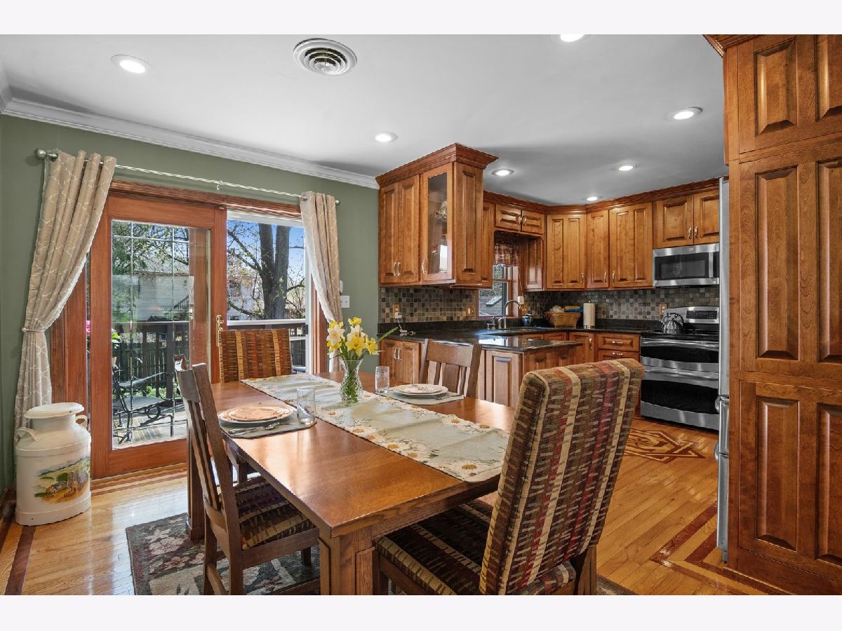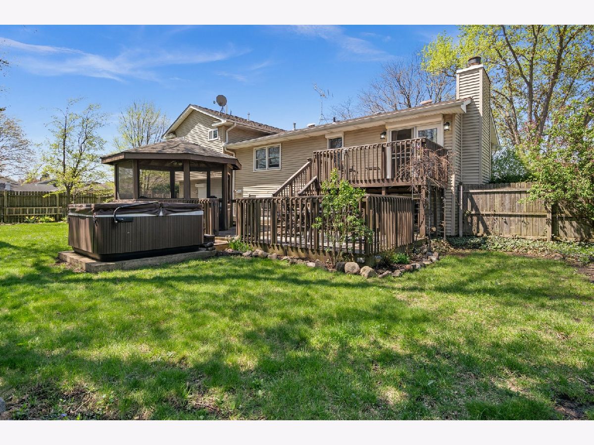 Welcome to 641 Independence Dr, a beautifully updated 5-bedroom, 3-bath raised ranch in Aurora! This spacious home features hardwood floors throughout, custom millwork, and a remodeled eat-in kitchen with granite countertops, tile backsplash, stainless steel appliances, and a slider leading to the tiered backyard deck. The large living room and oversized family room with a floor-to-ceiling brick fireplace and built-ins offer the perfect setup for entertaining. The finished lower level adds incredible flexibility-ideal for a home office, gym, or guest suite. The primary suite boasts a tray ceiling, hardwood flooring, walk-in closet, and a deluxe bath with double bowl vanity, soaking tub, and separate shower. Enjoy the fenced backyard oasis with mature landscaping, gazebo, patio, and storage shed-all backing to a park. Zoned HVAC, a newer roof (2012), remodeled bathrooms, and a 2-car garage round out this move-in-ready gem near Orchard Valley Golf Club and I-88.