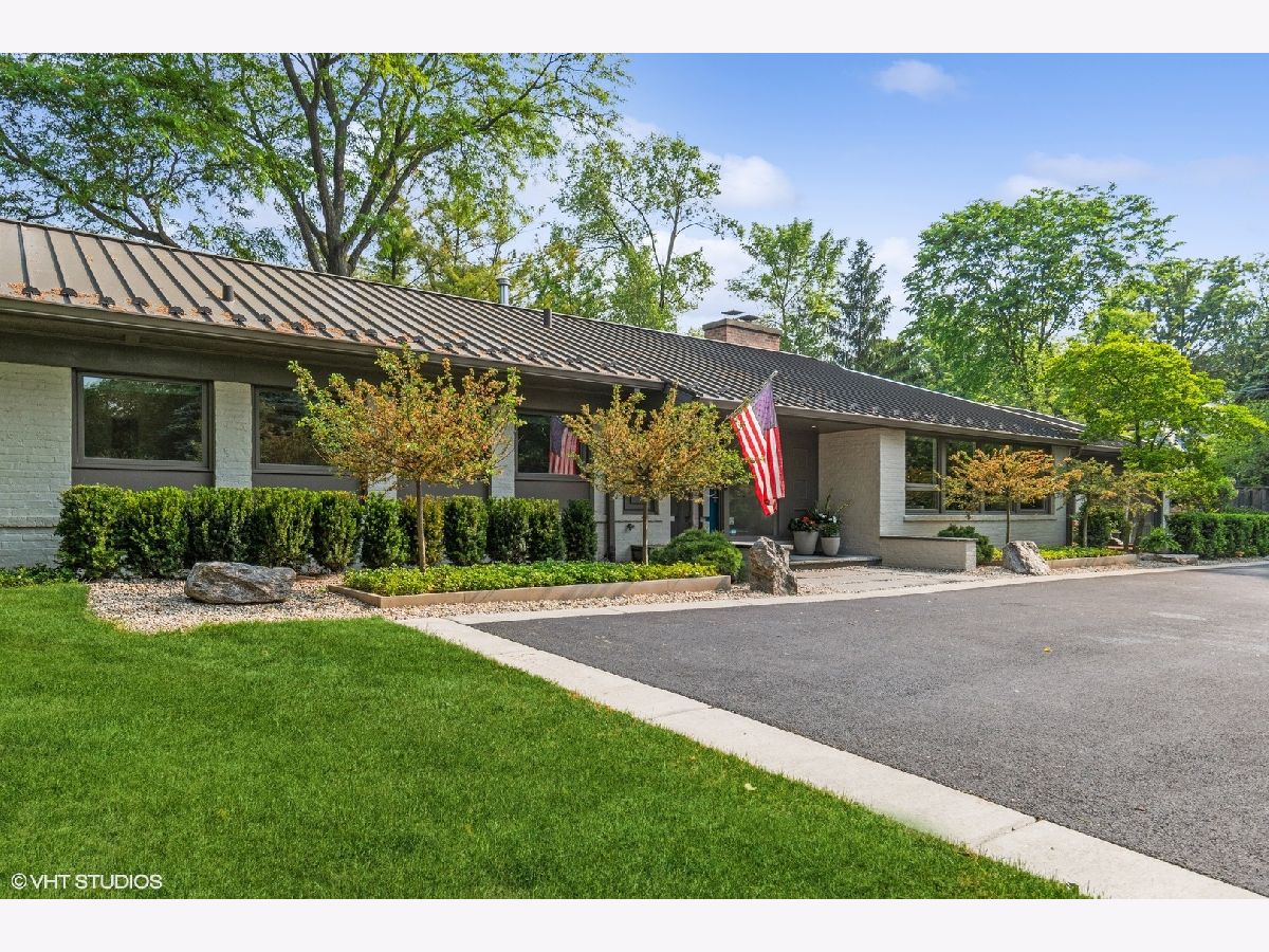 MID-CENTRY MODERN PERFECTION! Rare opportunity to own a meticulously renovated, mid-century Ranch home in Glencoe. Designed by pioneering architect Greta Lederer, this property has been completely restored, utilizing the highest quality materials and sophisticated craftsmanship. Situated on nearly a half-acre corner lot, the house features expansive Pella/Marvin windows and doors, a metal roof, professional landscaping and a gourmet eat-in kitchen, all completed in 2021. Many of the original features have also been updated to retain the home's authentic mid-century credentials, including parquet flooring, living room fireplace, vaulted ceilings and a California contemporary floor plan. The home has a spacious foyer, powder room with Kohler/Toto appointments, custom vanity and Italian metallic tile. The expansive living room and adjacent dining room both offer views of the gardens and feature sustainable Carnegie wall coverings, custom bookshelves, recessed LED lighting, parquet wood flooring and vaulted ceilings. This space is perfect for entertaining as both rooms overlook the newly-landscaped yard, which includes a bluestone patio, a custom fountain from Stone Forest in Santa Fe, bonsai trees, Japanese maples and boxwood - inspired by the gardens of Kyoto. The gourmet kitchen completed in 2021, features SS AGA, Miele and Thermador appliances, a Dornbracht faucet, a deep SS workstation sink, Italian Arrex le Cucine cabinetry, seamless countertops/backsplash in Laminam Italian Naturali Calcatta, plus a custom eat-in banquette featuring Holly Hunt fabric, an inset TV and even a built-in dog bunker complete with slow-close door. Off the main living area, is a spacious family room that opens onto the back patio and is flanked by Zen-like fountains on either side. The fountain in the front has a cedar deck surround-perfect for meditation or yoga. The room has extensive Italian Arrex le Cucine lighted bookshelves, a built-in safe and floating credenzas and cabinets. There is also a custom wood slat feature in keeping with the home's mid-century aesthetic. Off the family room, is a large mudroom with a built-in SS wine fridge, plus an additional refrigerator - a perfect bar area. This space is also appointed with Arrex le Cucine Italian cabinetry and a large storage room. The laundry features Cesarstone countertops, new LG appliances and extensive built-in cabinetry. Opposite the living area, are two large bedrooms each with en-suite full bathrooms, featuring Modwalls glass tile, Porcelanosa vanities, Robern medicine cabinets and custom glass showers. The primary suite features a large bedroom, spa-like bathroom with double Kohler sinks, a built-in Kohler soaking tub, Cesarstone countertops, custom Italian cabinetry by Italian Arrex le Cucine, walk-in shower, hand-made metallic tile, Robern medicine cabinets and a Robern beauty box. There is also a spacious primary closet by California Closets, complete with center island, plus, a large two-person home office separated by a custom pocket door featuring frosted privacy glass. The property also features perfectly maintained mature trees, a sprinkler system, landscape and security lighting, an invisible fence, two-car garage and private fenced backyard. Situated within walking distance to downtown Glencoe (public transportation, restaurants, boutique shopping and The Writers Theatre), with The Chicago Botanic Gardens, public golf courses and biking/hiking trails also nearby. The quality of this ranch home is unmatched on the North Shore. Please come see "Palm Springs in Glencoe" and make it your new home.