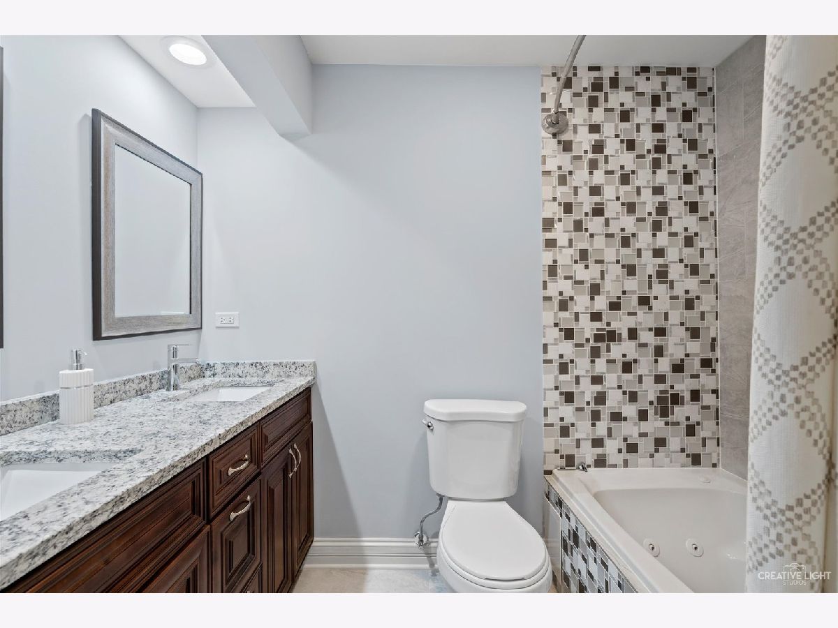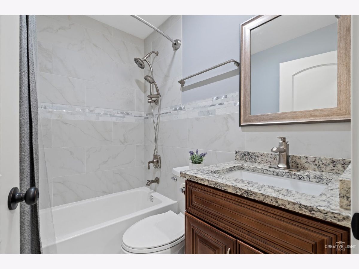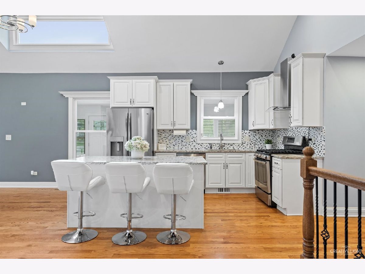 This home was beautifully and completely renovated in 2017-there is nothing for you to do except move in! As you walk into the home, the 3-season room greets you with space, sun, and the atmosphere of relaxation. Then upon walking through the front door you feel the warmth of the newer hard wood floors, renovated open floor plan, and vaulted ceilings. The bright kitchen has stainless steel appliances, granite countertops, breakfast bar, and 42" cabinets with soft close doors/drawers, Lazy Susan, and crown molding. In addition to the kitchen, the first floor has a bedroom or office, full deluxe spa bathroom, living room, dining area, large family room with easy access to the deck and back yard, which makes this home perfect for entertaining. The opened stairway leads you upstairs to the elevated master suite with jacuzzi tub, two additional bedrooms and elegant third bathroom. The finished basement has luxury vinyl plank, and an added 1/2 bath. Outside boasts a new composite, maintenance free Trex light up deck, and newer insulated garage. As of 2017, the home has new windows, furnace, AC (dual zoned), water heater, appliances, vinyl siding, and more. Located in top school district, and within minutes to downtown Glen Ellyn and about a mile from the commuter train station.