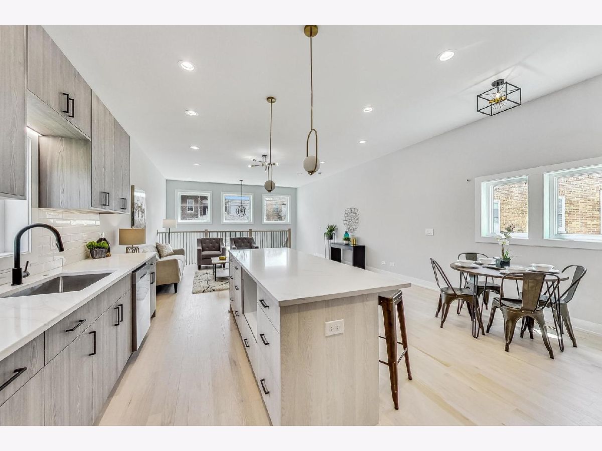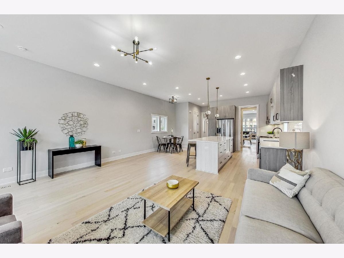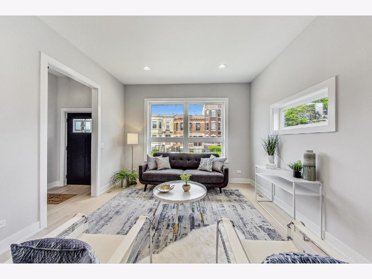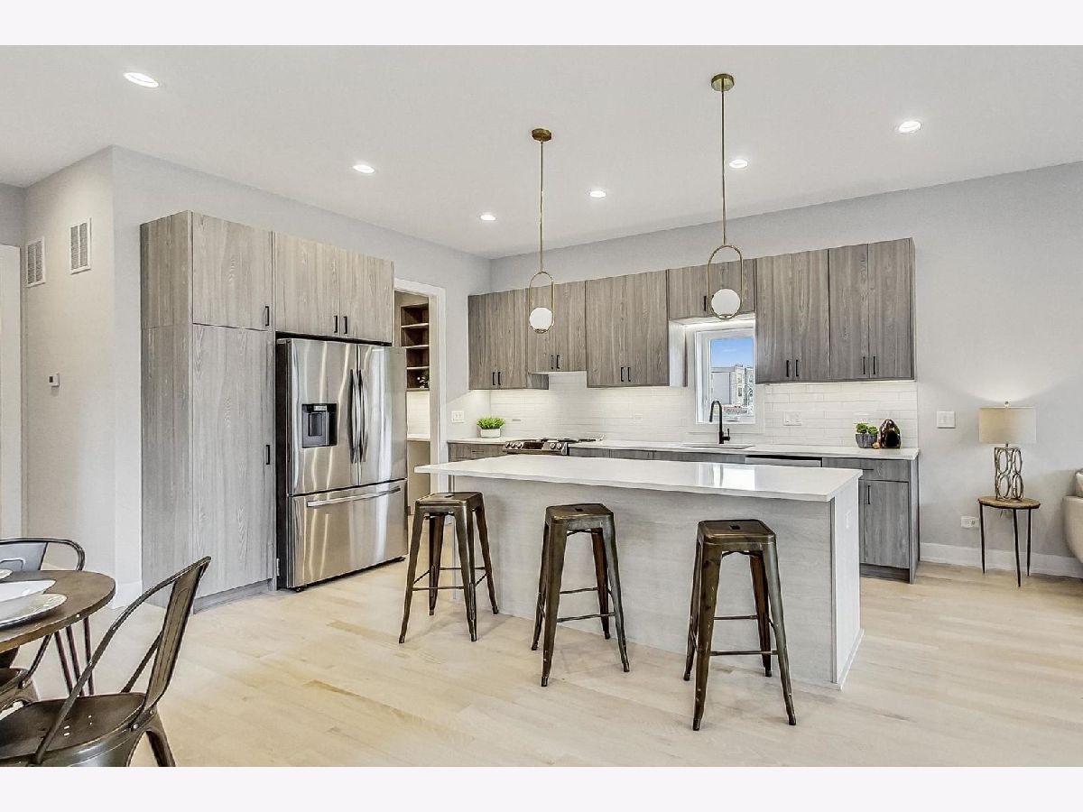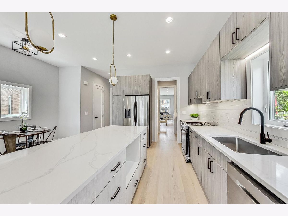 Experience luxury living in this stunning west-facing new construction residence, meticulously designed with well-proportioned rooms and flooded with natural sunlight. Revel in the elegance of premium hardwood flooring and soaring 10' ceilings throughout. This attractive main level floorplan consists of a formal living room and dining room area, butler's pantry with walk-in pantry closet & space for a beverage fridge, an expansive kitchen, family room, and powder room. The contemporary chef's kitchen includes quartz counters, Samsung stainless steel appliances, 8' center island, under-cabinet lighting, soft close cabinets & drawers, and room for additional table space for informal dining. The back stairs lead down to the mudroom area by the rear entrance to the fenced backyard/patio space and 2 car garage which is wired with 220v service for easy installation of electric vehicle chargers. Continue down the rear stairs to the finished basement which includes a 2nd family room/recreation area with a custom built wet bar and beverage fridge space, 2 additional bedrooms (one with a walk-in closet,) and 1 bathroom, plenty of storage space, mechanical room w/dual zoned HVAC, 75 gallon hot water heater, & sump pump w/drain tile system. The 2nd floor living quarters include 3 total bedrooms (two have walk-in closets,) 2 full bathrooms and a full sized laundry room with Samsung side by side front loading washer and dryer, plus a utility sink. The sprawling primary bedroom has vaulted ceilings, 2 standard closets and 1 walk-in closet with skylight. Relax in the spacious spa-inspired en-suite primary bath with 2 modern floating vanities, separate shower with a rainshower head and handheld combo, standalone soaking tub and private water closet. This prime location is unbeatable, situated near the U of C, the highly rated U of C Charter School, Jackson Park, the future home of the Obama Presidential Center, DuSable Lake Shore Drive, CTA Green Line and Metra. Discover the perfect blend of luxury, convenience, and style in this exquisite home.