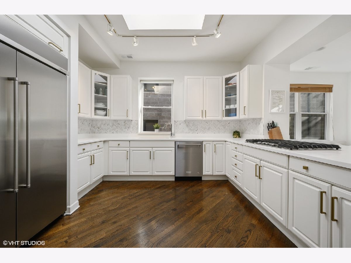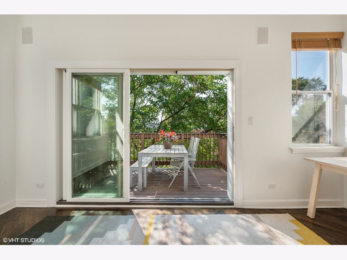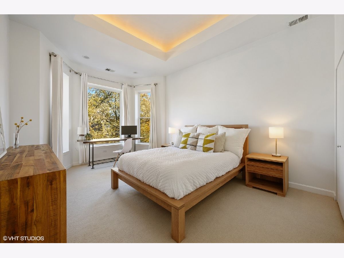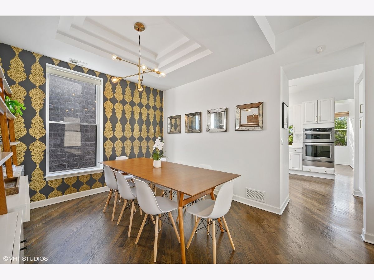Striking magazine caliber East Lakeview penthouse in a circa 1900 Greystone in highly desirable NETTELHORST school district! With over 2400 sqft of living space, this EXTRA-WIDE and meticulously designed vintage renovation boasts an ideal and expansive layout that will wow you upon entry with a wall of windows and skylight drenching this home with natural light. Oversized living room can be split into living and family room or play zone, features a wood burning fireplace with gas starter, refinished hardwood floors, stunning formal dining room with triple tray ceilings and designer chandelier. Gourmet kitchen offers stainless steel appliances and designer tile backsplash, all wrapped around a skylight so you are drenched in sunlight in every inch of this home! Large breakfast room off of the kitchen opens directly to a private deck overlooking a 60 ft tree. Huge primary suite features a tray ceiling and charming bay window with treetop views making the area perfect for a reading nook or home office. Primary bath boasts a skylight illuminating the oversized jacuzzi, glass shower, and floating dual vanity. Spacious second and third bedrooms, second bath, and huge laundry room with tons of storage complete this exceptional home. TWO parking spots, one garage and one exterior. Roof rights to this unit. Located on one of the most charming blocks in Lakeview, steps from restaurants, gyms, and shops such as Maison Marcel, Lakeview Athletic Club, Intelligentsia, Starbucks, Mortar & Pestle, Target, Jewel Osco, Marianos, gyms, lakefront, Belmont brown, purple, and red line. If you are looking for a one-of-a-kind, spacious, and custom home with charming vintage details in A++ East Lakeview location, look no further! Welcome home!