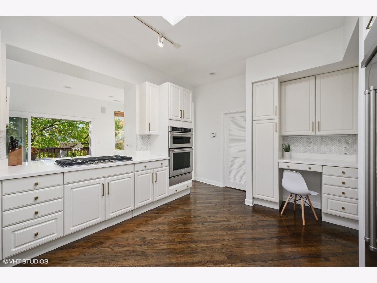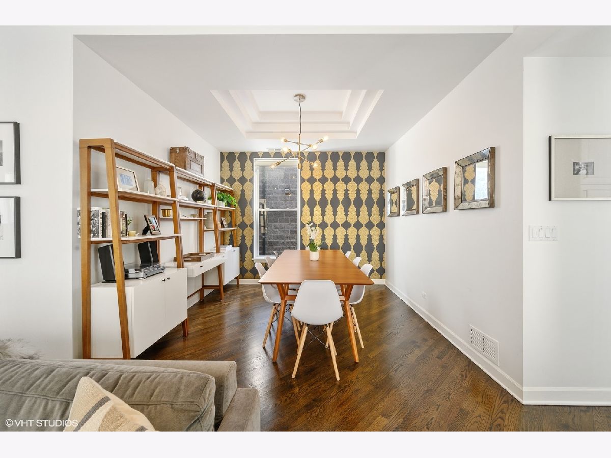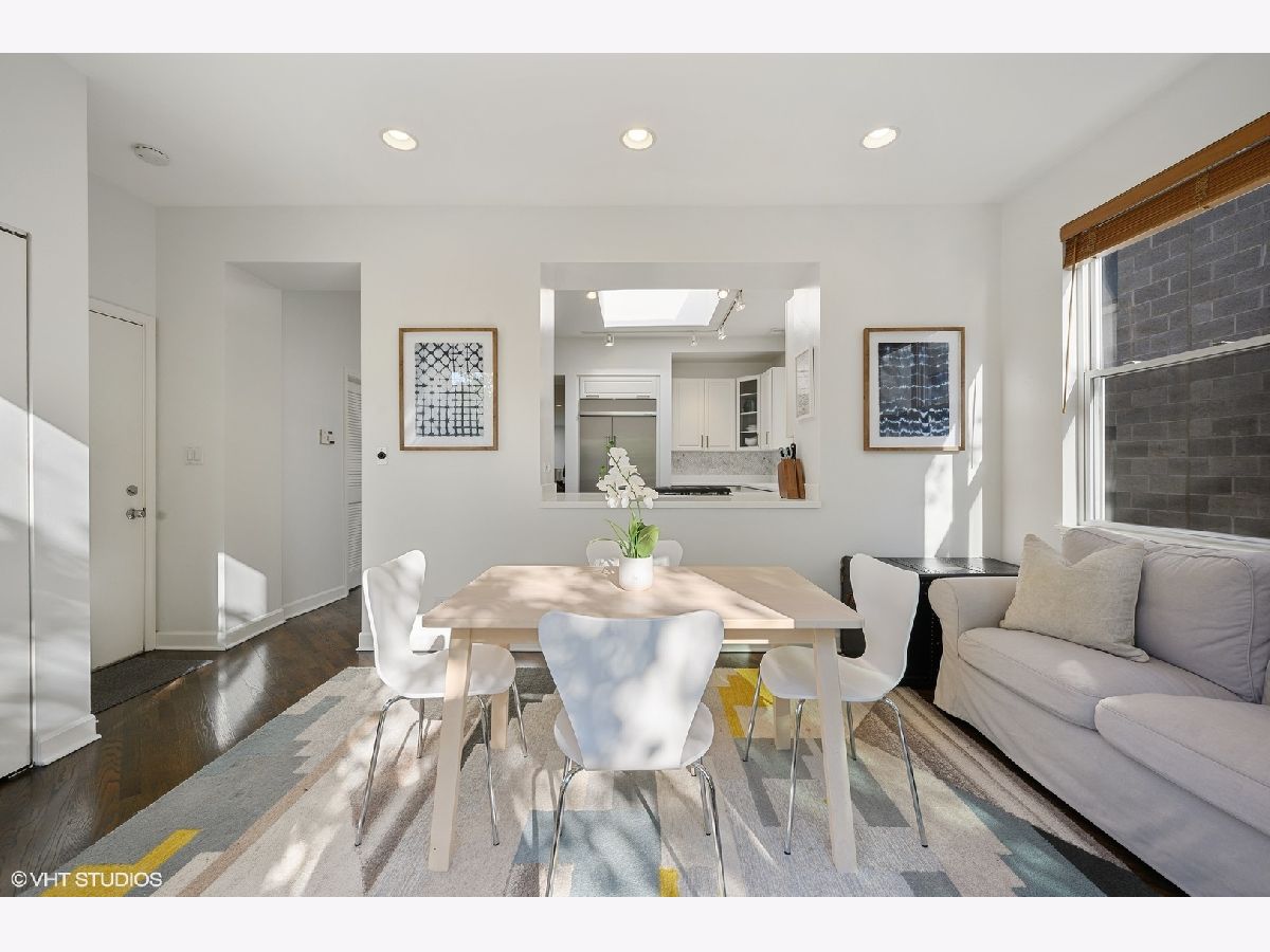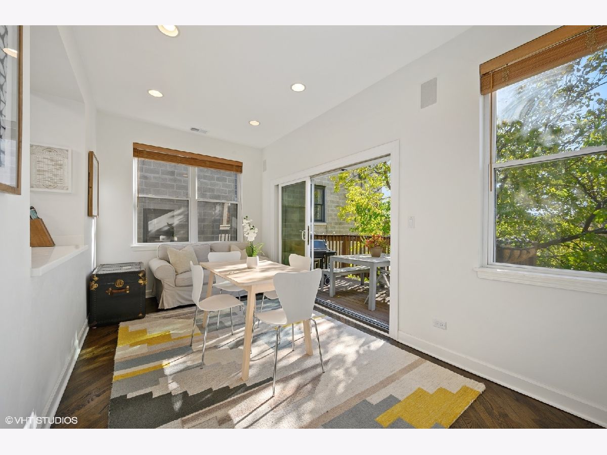 Striking magazine caliber East Lakeview penthouse in a circa 1900 Greystone in highly desirable NETTELHORST school district! With over 2400 sqft of living space, this EXTRA-WIDE and meticulously designed vintage renovation boasts an ideal and expansive layout that will wow you upon entry with a wall of windows and skylight drenching this home with natural light. Oversized living room can be split into living and family room or play zone, features a wood burning fireplace with gas starter, refinished hardwood floors, stunning formal dining room with triple tray ceilings and designer chandelier. Gourmet kitchen offers stainless steel appliances and designer tile backsplash, all wrapped around a skylight so you are drenched in sunlight in every inch of this home! Large breakfast room off of the kitchen opens directly to a private deck overlooking a 60 ft tree. Huge primary suite features a tray ceiling and charming bay window with treetop views making the area perfect for a reading nook or home office. Primary bath boasts a skylight illuminating the oversized jacuzzi, glass shower, and floating dual vanity. Spacious second and third bedrooms, second bath, and huge laundry room with tons of storage complete this exceptional home. TWO parking spots, one garage and one exterior. Roof rights to this unit. Located on one of the most charming blocks in Lakeview, steps from restaurants, gyms, and shops such as Maison Marcel, Lakeview Athletic Club, Intelligentsia, Starbucks, Mortar & Pestle, Target, Jewel Osco, Marianos, gyms, lakefront, Belmont brown, purple, and red line. If you are looking for a one-of-a-kind, spacious, and custom home with charming vintage details in A++ East Lakeview location, look no further! Welcome home!