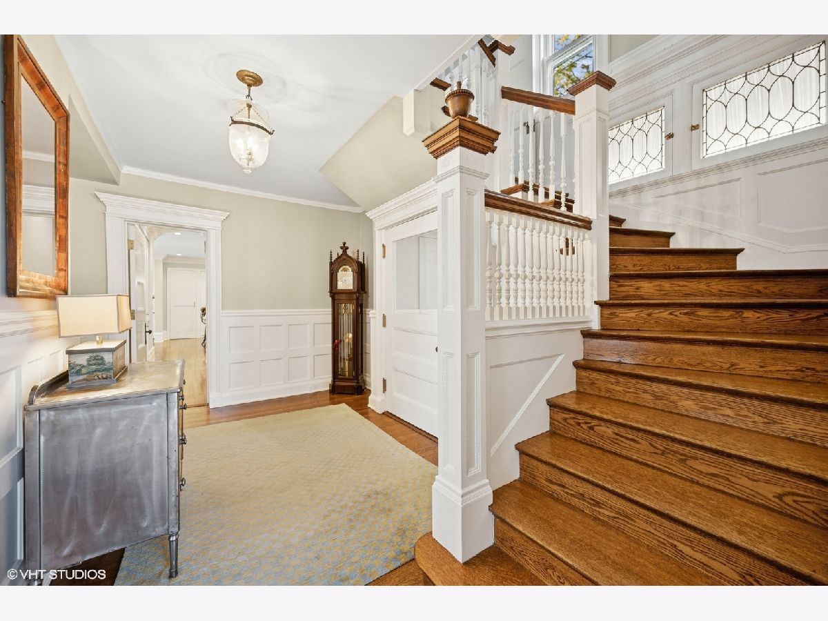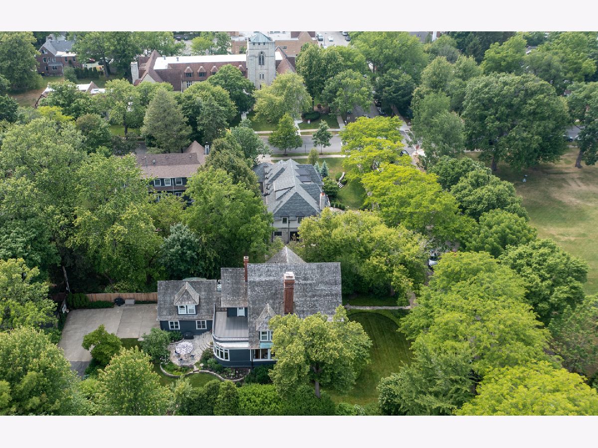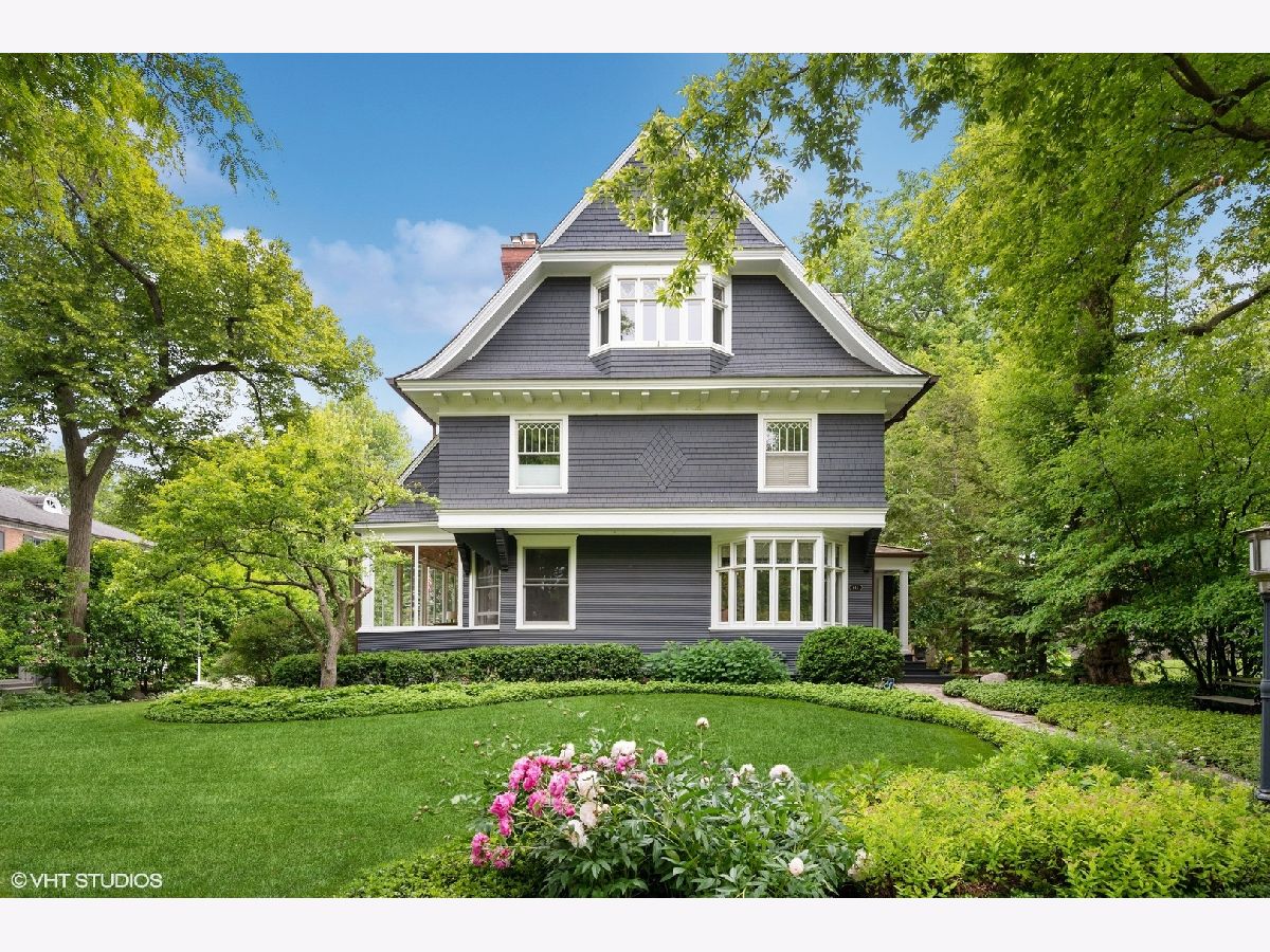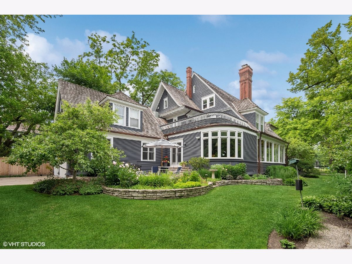 Stunning architectural gem in East Winnetka, where history meets modern sophistication. This magnificent 5+ bedroom, 3.2-bath classic, set on an expansive .4-acre lot, offers a unique blend of timeless charm and contemporary luxury overlooking the serene vistas of the iconic Village Green. Originally designed and built by the renowned architect William A. Otis for his own family, this home stands as one of Winnetka's most architecturally significant properties but his light airy floor plan with soaring ceilings and incredible panoramic vistas is perfect for the most discerning buyers. A thoughtful 2007 addition/house renovation seamlessly integrates timeless architectural elements with today's lifestyle needs, featuring a thoughtfully designed stylized kitchen, breakfast area, and a spacious family room that opens to private back patio and gardens. A grand paneled foyer introduces the home's exquisite original craftsmanship. The soaring beamed ceilings, intricate millwork, and quarter-sawn oak floors set the tone for the elegance that unfolds in each room. The living room, with its impressive fireplace, flows into the sophisticated dining room adorned with custom leaded glass cabinets and a delph-tiled fireplace and the original owners family crest & initials The heart of this home is the expansive kitchen, a culinary masterpiece equipped with marble countertops, bespoke cabinetry, and professional-grade stainless steel appliances & cleverly hidden command central station. The adjoining family room, with its high beamed ceiling and oversized windows, offers a seamless transition to the three-season porch, perfect for entertaining or enjoying tranquil views of the lush gardens and the Village Green. So good to have a mudroom room to attached garage & first floor laundry! The 2nd floor showcases 4+ beautifully appointed bedrooms, each with generous closet space, and a luxurious primary suite. This private retreat features vaulted ceilings, custom windows, dual walk-in closets, and a spa-inspired bathroom with a marble double sink, steam shower, and a private water closet. The lofty third floor provides versatile tree top living complete with oversized bedroom or playroom, smart office, renovated bath, and storage. Surprisingly tall ceilings in the lower level offer an expansive recroom, play room extraordinarily deep exercise room/golf simulator room (part of the addition) with custom climbing wall, and convenient access to the attached garage. Exceptional landscaped grounds offer a breathtaking setting for relaxation and enjoyment. With a spacious stone patio and gardens. This special home is a sanctuary in one of Winnetka's most distinguished neighborhoods. Experience the epitome of comfortable elegance in this jubilant home that is walkable to everything: town, train, parks, beach, schools and the Green Bay trail!