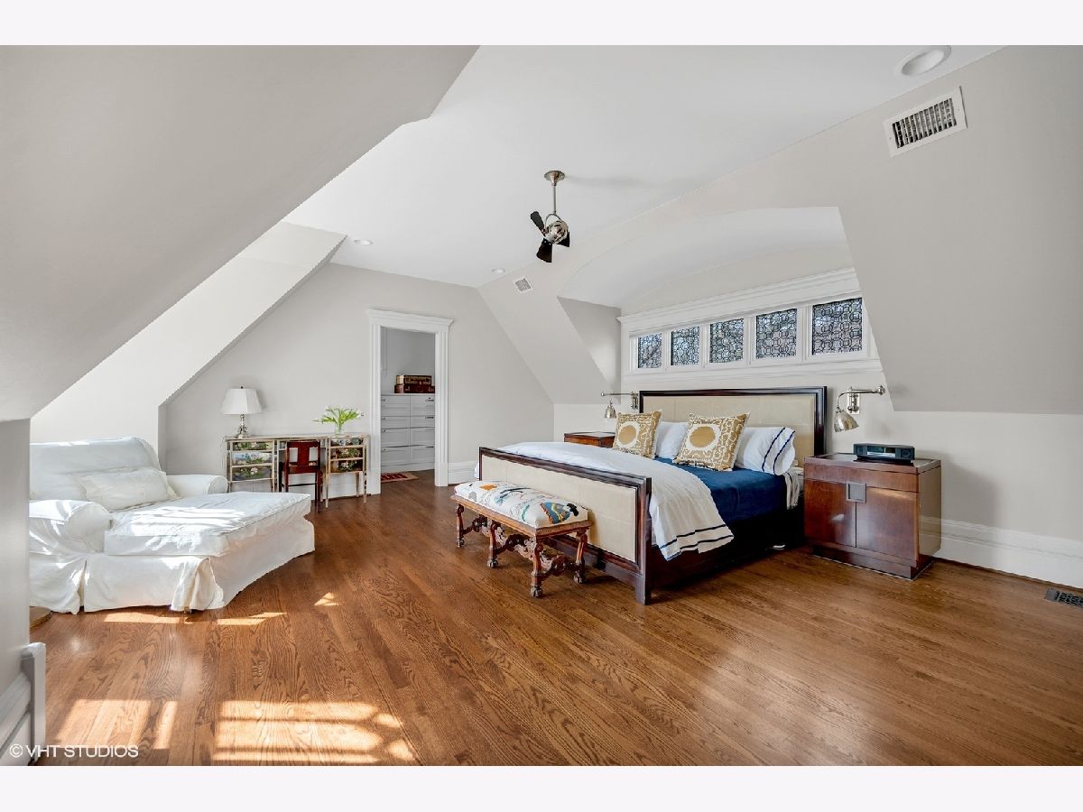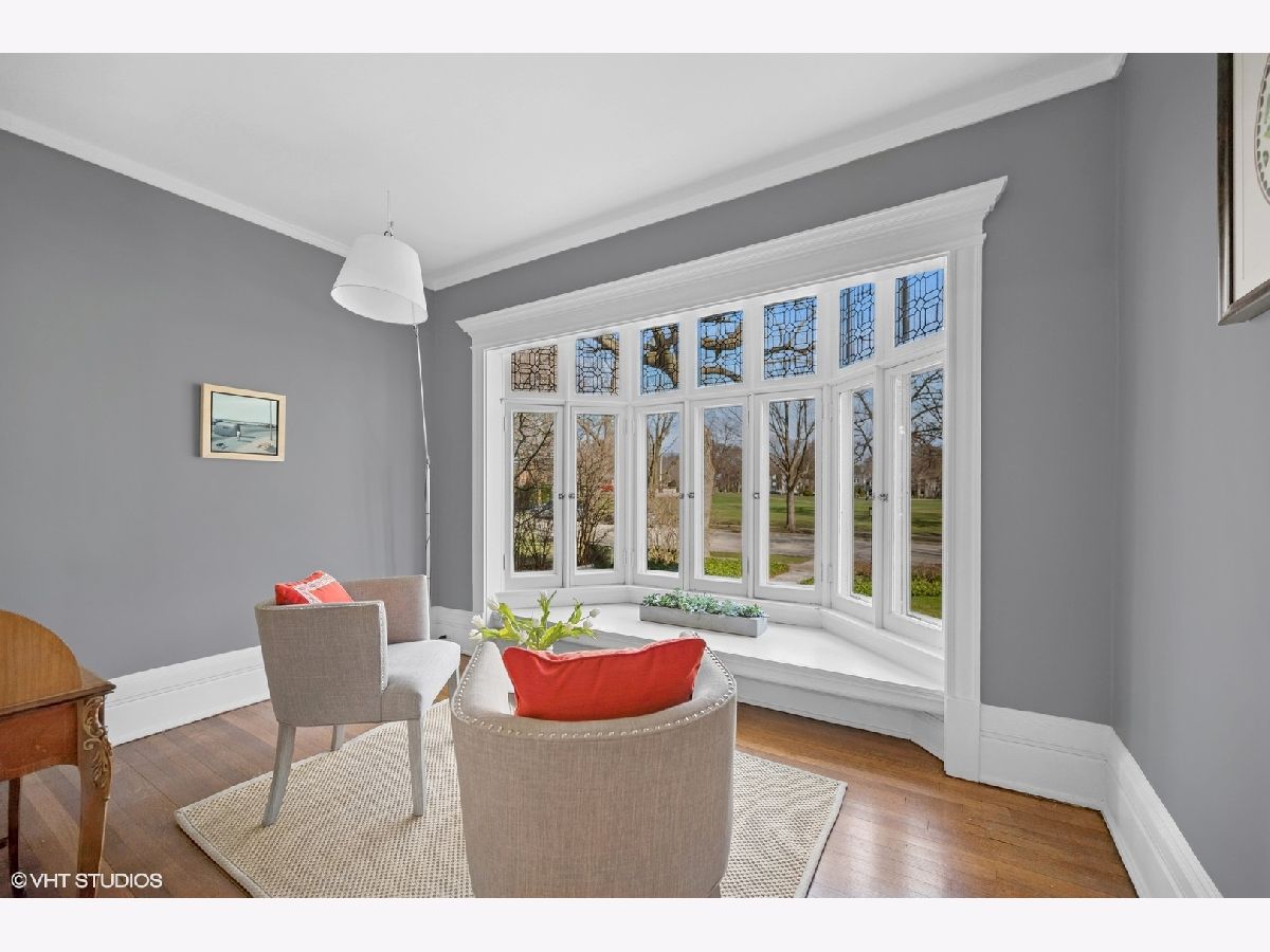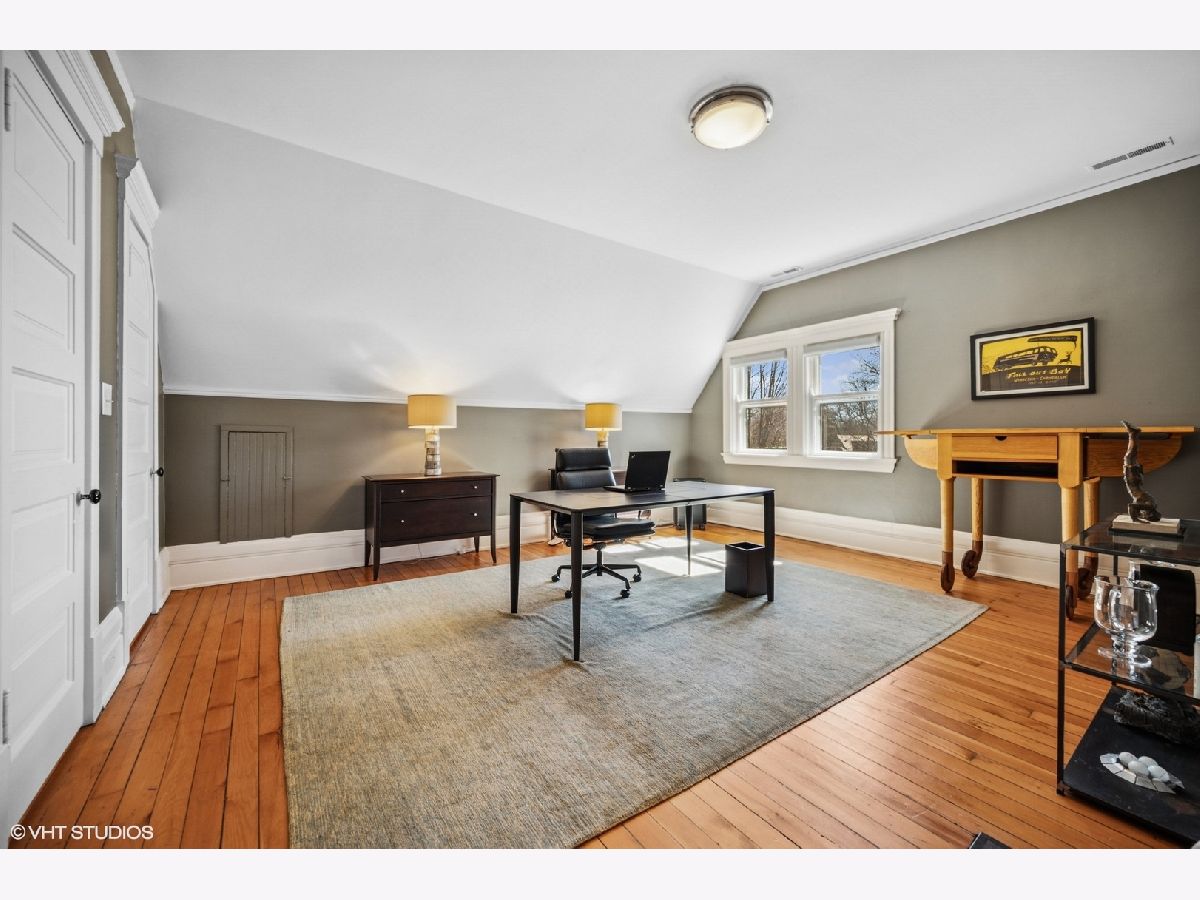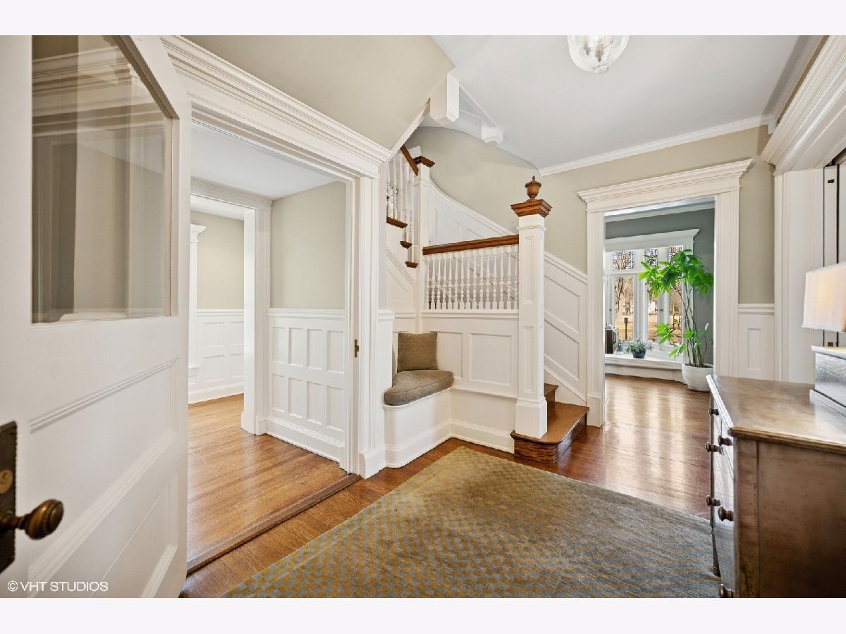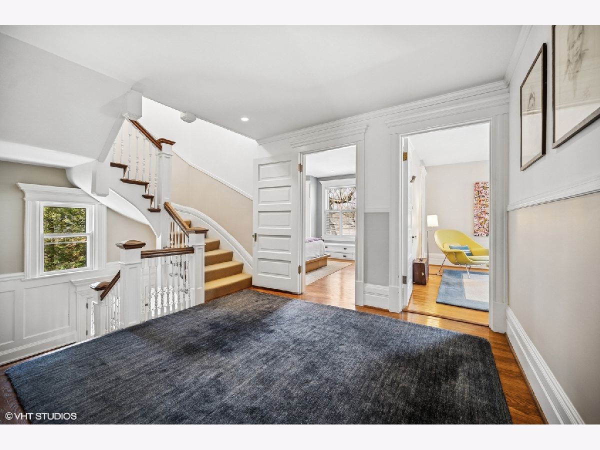 Stunning architectural gem in East Winnetka, where history meets modern sophistication. This magnificent 5+ bedroom, 3.2-bath classic, set on an expansive .4-acre lot, offers a unique blend of timeless charm and contemporary luxury overlooking the serene vistas of the iconic Village Green. Originally designed and built by the renowned architect William A. Otis for his own family, this home stands as one of Winnetka's most architecturally significant properties but his light airy floor plan with soaring ceilings and incredible panoramic vistas is perfect for the most discerning buyers. A thoughtful 2007 addition/house renovation seamlessly integrates timeless architectural elements with today's lifestyle needs, featuring a thoughtfully designed stylized kitchen, breakfast area, and a spacious family room that opens to private back patio and gardens. A grand paneled foyer introduces the home's exquisite original craftsmanship. The soaring beamed ceilings, intricate millwork, and quarter-sawn oak floors set the tone for the elegance that unfolds in each room. The living room, with its impressive fireplace, flows into the sophisticated dining room adorned with custom leaded glass cabinets and a delph-tiled fireplace and the original owners family crest & initials The heart of this home is the expansive kitchen, a culinary masterpiece equipped with marble countertops, bespoke cabinetry, and professional-grade stainless steel appliances & cleverly hidden command central station. The adjoining family room, with its high beamed ceiling and oversized windows, offers a seamless transition to the three-season porch, perfect for entertaining or enjoying tranquil views of the lush gardens and the Village Green. So good to have a mudroom room to attached garage & first floor laundry! The 2nd floor showcases 4+ beautifully appointed bedrooms, each with generous closet space, and a luxurious primary suite. This private retreat features vaulted ceilings, custom windows, dual walk-in closets, and a spa-inspired bathroom with a marble double sink, steam shower, and a private water closet. The lofty third floor provides versatile tree top living complete with oversized bedroom or playroom, smart office, renovated bath, and storage. Surprisingly tall ceilings in the lower level offer an expansive recroom, play room extraordinarily deep exercise room/golf simulator room (part of the addition) with custom climbing wall, and convenient access to the attached garage. Exceptional landscaped grounds offer a breathtaking setting for relaxation and enjoyment. With a spacious stone patio and gardens. This special home is a sanctuary in one of Winnetka's most distinguished neighborhoods. Experience the epitome of comfortable elegance in this jubilant home that is walkable to everything: town, train, parks, beach, schools and the Green Bay trail!