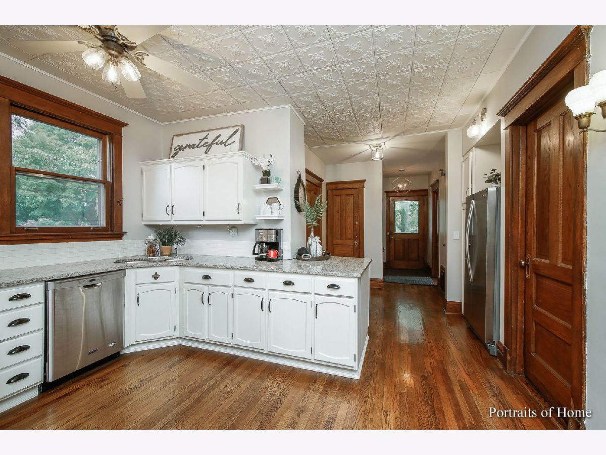 Talk about location.... walk to train & town! Beautiful oversized fenced in lot with so much room for entertaining. Vintage Glen Ellyn charm galore! You will fall in love with this enchanting farmhouse! Great combination of old with newer conveniences. Fall in love when you enter! Hardwood floors thru-out main level. Open Kitchen and Family Room layout. Formal Living Room with pocket doors leading to separate Dining Room. Kitchen features painted white cabinets, granite counters and subway tile backsplash plus stainless appliances. Powder Room on Main floor was completely reworked and redone with custom wide door for accessibility. Front porch for lazy evening hangout! Cozy fireplace in Family Room flanked by built-ins. New patio door! First floor Mudroom certain to capture your heart! So much vintage detail! Winding staircase leading to 2nd level. Large Master Bedroom addition with walk-in closet and New custom built-ins flanking both sides of the bed. Large Master Bath just updated with quartz counters, double sink and shower. Three other bedrooms all featuring hardwood floors. Generous closet space. Full hall bath with claw tub, separate shower and old world detail. Walk-up attic for tons of addtional storage. Fun usable basement with rec area and updated half bath. NEWER area of basement has higher ceiling makes spectacular work-out area. Sunny south and west exposure. Six blocks to Lake Ellyn. Two plus car Electrical panel recently updated. This home will complete the lifestyle you are dreaming about! Vintage charm in the absolute heart of town! 9 foot Tall ceilings! New fence and newer deck. Newer oversized gutters. Some Refinished hardwood floors. New hot water heater 2020. Center house chimney cover added. Newer carpet in upstairs. Roof 2015. This is an awesome home. It has been loved and cared for by the current owners.