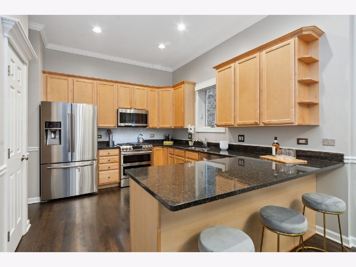 Bright and spacious 3 bedroom/3.1 bathroom DUPLEX DOWN with FRONT TERRACE & ATTATCHED HEATED GARAGE PARKING plus shared rooftop deck on one of East Lakeview's best streets in Level 1+ Nettelhorst District! Tall ceilings and an open floorplan maximize functionality and space in this beautiful home. The living room with fireplace flows seamlessly to the large open kitchen which boasts high-end appliances, built-in pantry, abundance of storage, and island with breakfast bar. Down the hall, the spacious primary bedroom has access to the first of the unit's two private outdoor spaces, custom Hunter Douglas blinds, which are continued throughout, and a walk-in-closet with custom shelving. The primary bathroom is a true retreat with spacious double vanity, soaking tub, and separate shower. An additional bedroom, side by side laundry room and a full bathroom complete this level. Downstairs, light pours into the family room and is ideal for entertaining, boasting a second gas fireplace, built-in wet bar, and rare walk-out terrace. Downstairs also has a powder room for entertaining and ensuite bedroom perfect for guests! This home is located on a tree-lined street in one of the best areas of East Lakeview with close proximity to Nettelhorst Elementary, CTA Red/Brown/Purple Lines, multiple bus lines, Lake Shore Drive, Belmont Harbor, Whole Foods, Jewel Osco, and all of the amazing shops, restaurants, and recreation activities East Lakeview has to offer. Pet friendly building too!