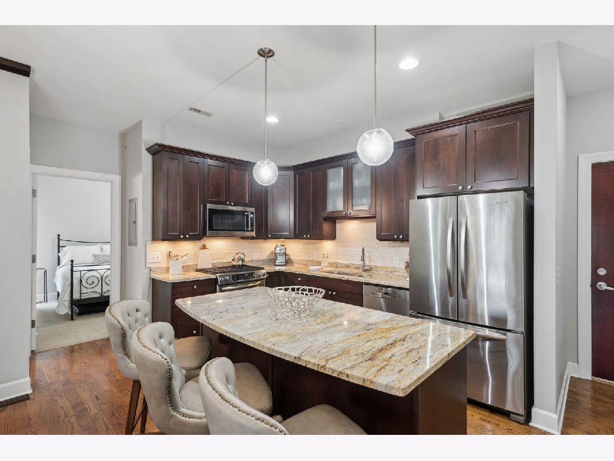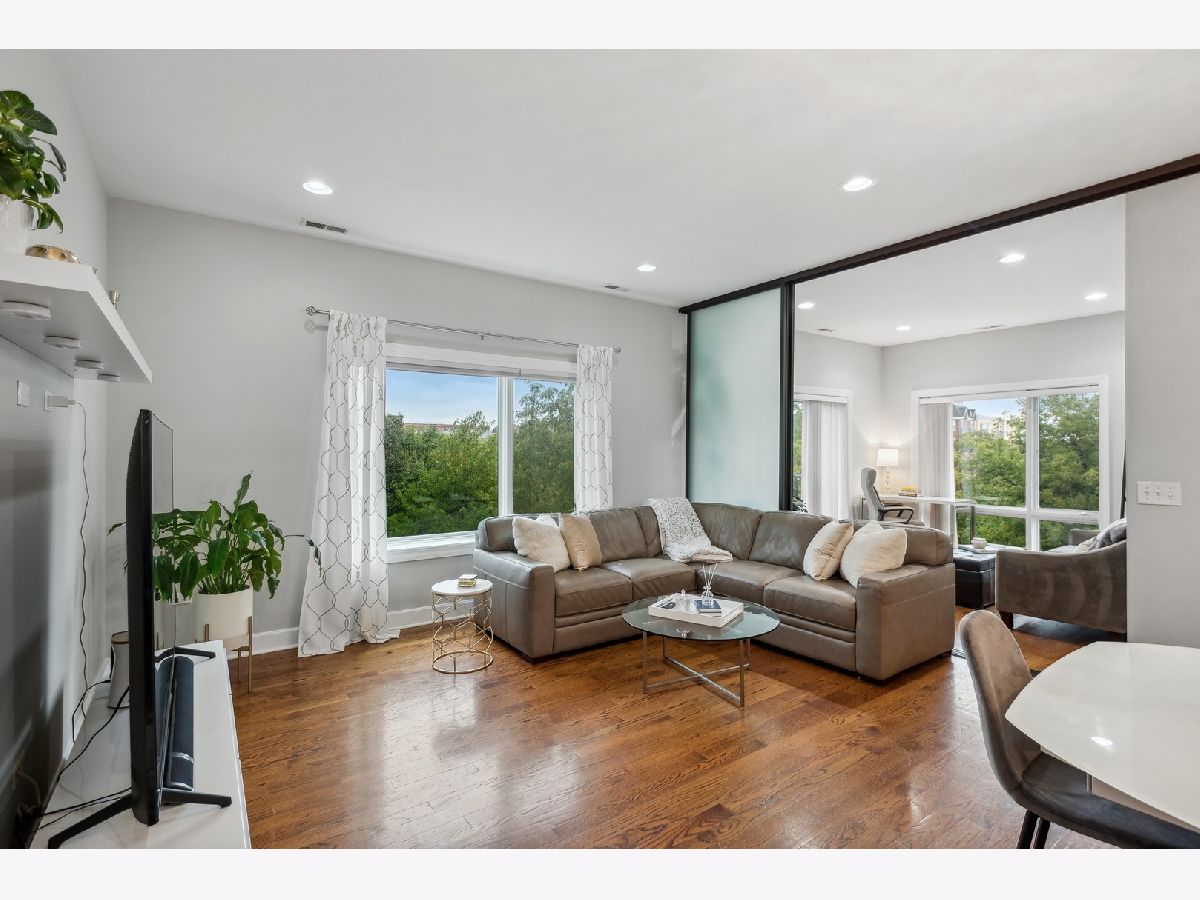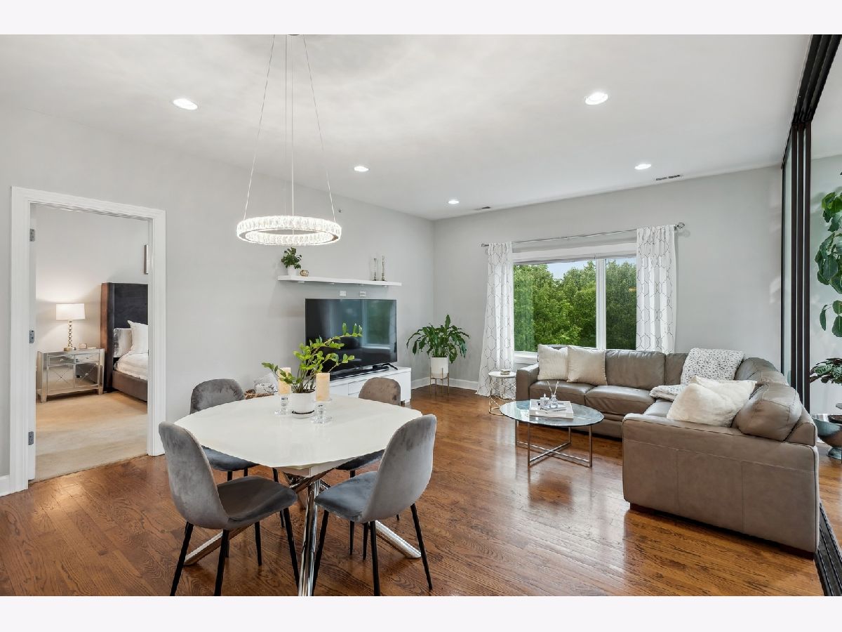 Rare opportunity to own a pristine 2+ BR / 2 BA Penthouse in a boutique, 15-unit elevator condo building in the heart of popular Main/Dempster Mile neighborhood. This light and airy top floor corner unit has high ceilings, open floor plan and upscale finishes throughout. The large living room/dining room combo is perfect for entertaining. The kitchen with high-end appliances is a dream for every home chef! The king-size primary bedroom suite features a large 2-sink bath with walk-in shower and sizeable walk-in closet. The second bedroom and bath with high-end finishes are perfect for guests or roommates. The bonus, however, is a large 13 x 12 den/office/family room that can easily be used as a third bedroom. Good-size balcony off the den to relax and BBQ in the tree tops. Large separate laundry room with side-by-side front-load washer and dryer and even more storage! Elevator goes directly to heated garage with TWO separate included parking spaces ( #9 + #12) plus additional storage. The location cannot be beat! Evanston's favorite restaurants are a couple of minutes away as are the Metra, Purple Line and NU Shuttle. A must see! You will fall in love- Oh! and only a few blocks to the lake, shopping and more...