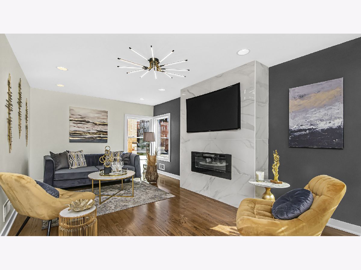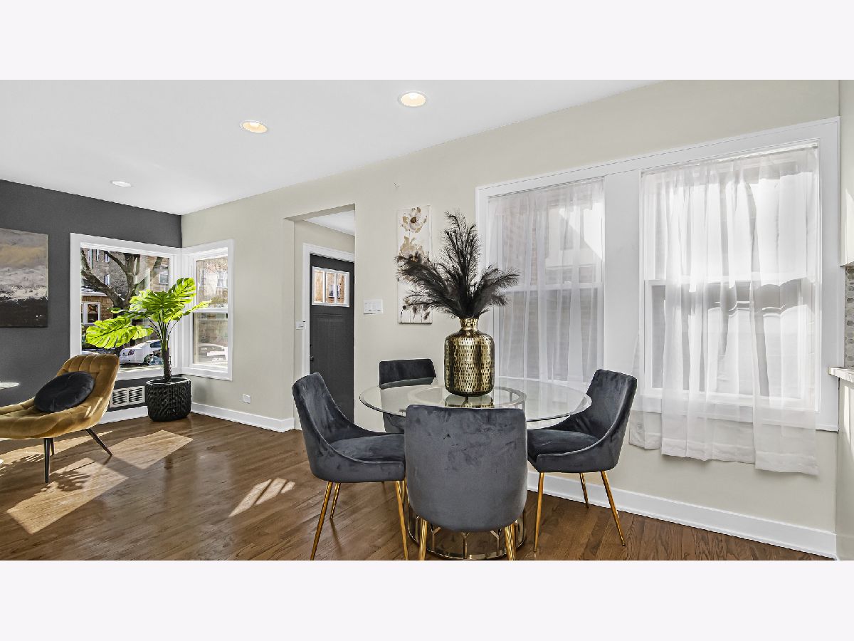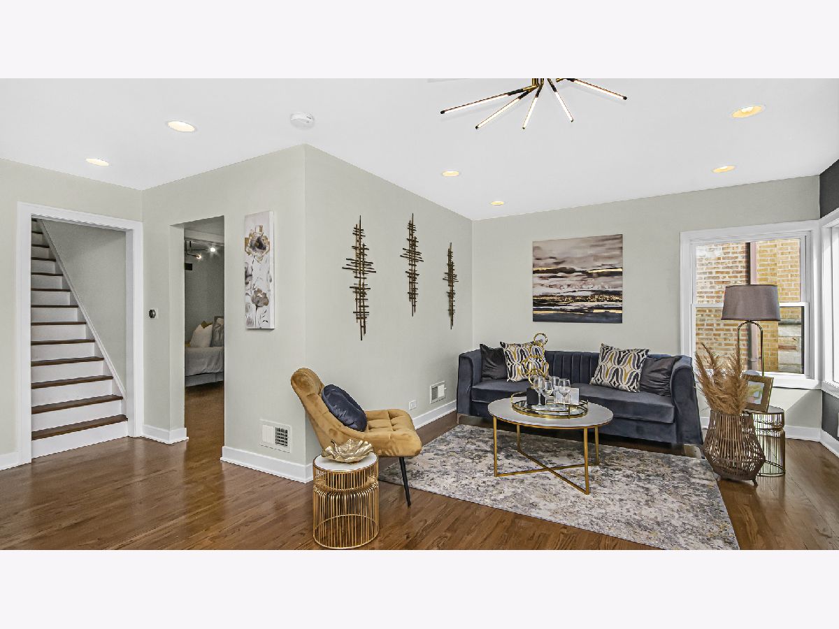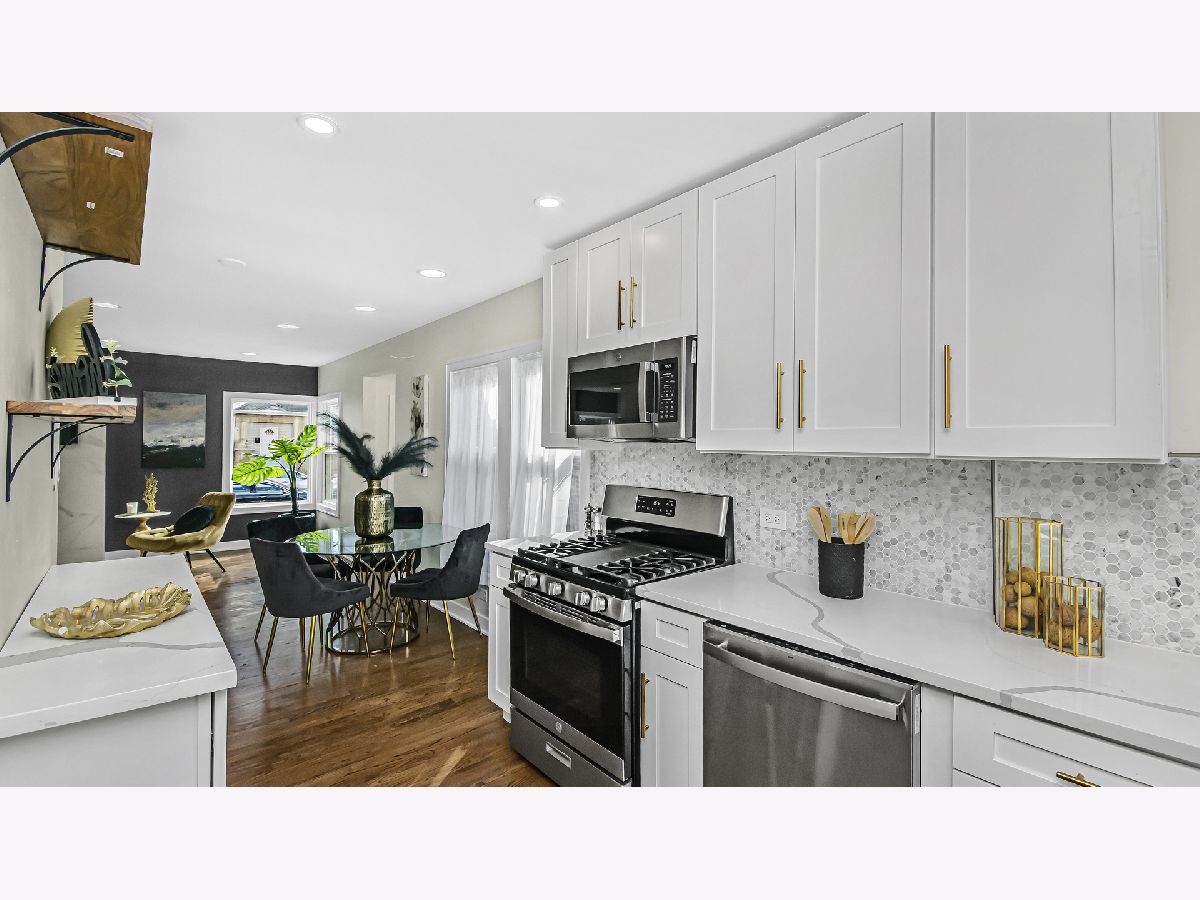A classic Chicago bungalow with a chic modern twist. Functionality meets design in 6450 N Richmond with its 3 bedrooms, 3 baths and detached garage. Situated on a tree-lined street in West Ridge, this sturdy brick construction with limestone accents provide a rugged urban appeal; but enter through the concrete stairway, and find yourself welcomed in magazine-style contemporary living. A sun-filled living room featuring hardwood flooring, recessed lighting and a striking quartz accent wall with an electric fireplace is sure to be a favorite hang-out spot for your guests. Brand new windows drape each room in delicate natural light. The open concept allows a natural flow from living room to your formal dining and into your galley style kitchen. Gleaming quartz countertops and harmonizing mosaic backsplash complement the 42 inch white cabinets adorned with gold handles for sophisticated aesthetics. Stainless steel appliances, floating shelves and extra cabinets provide you with ample space for all your cooking essentials. Find convenience in the main floor bedroom with a walk-in closet, adjacent to the kitchen. A tastefully renovated full bath serves the main floor, adorned with floor to ceiling tile and gold accents. Head upstairs and utilize the unique extra storage spaces found alongside the staircase. The second-floor full bath features a bathtub and crisp clean subway tiles. You'll find your 2nd bedroom down the hallway followed by your primary suite which features a spacious walk in closet. Head down to the basement into your recreation room that can serve as an additional dwelling unit for in laws, entertainment center or home gym. Utilize the bonus room as a home office, kid's play room or storage. There is a separate utility and laundry room as well as a full bath with standing shower. The electrical and plumbing has been upgraded for maximum functionality. A brand-new AC condenser and water heater tops off our upgrade list. Head out the back through the mud room to find an expansive backyard ready to be fitted with your outdoor furnishing and grill for those summer get-togethers. Access your detached 2 car garage from the back alley. Enjoy the true melting pot that is West Ridge, with its vibrant mix of global cuisine and international markets. Savor in an abundance of green areas within minutes including Warren park for activities for every season: batting cages, golf course and skating rink. Your new chapter awaits.