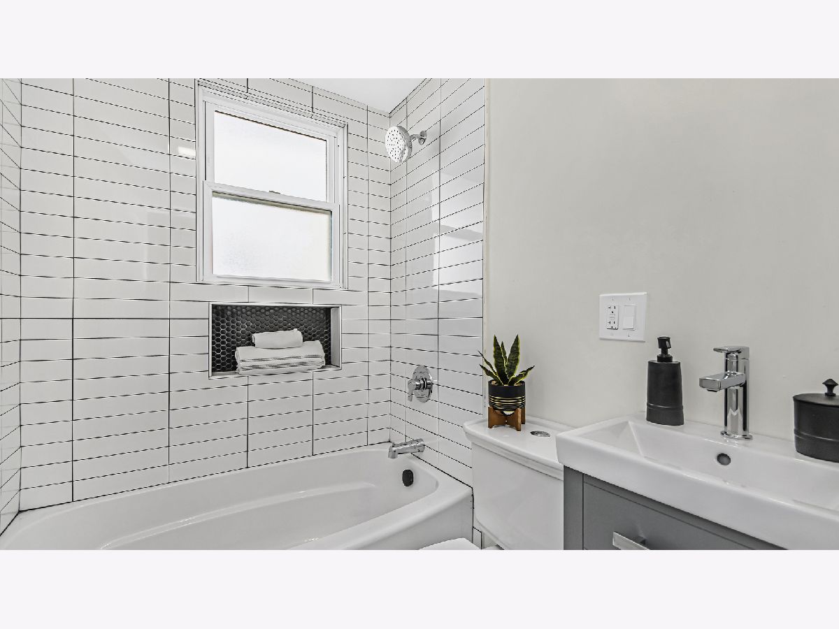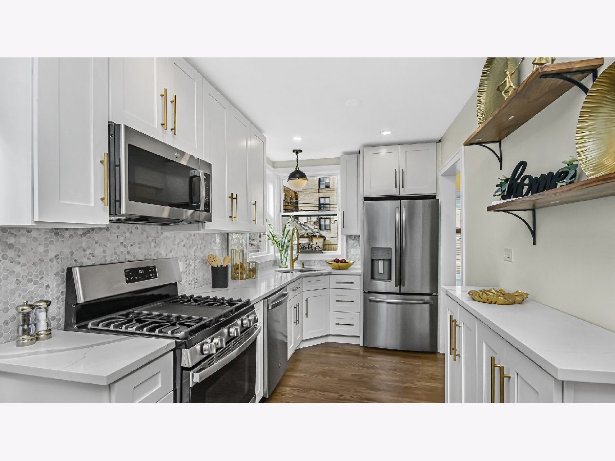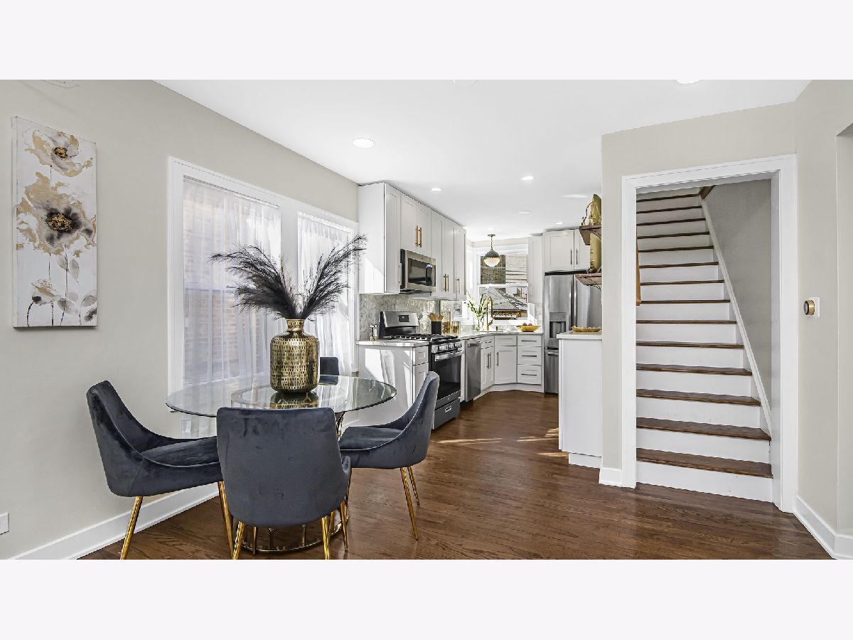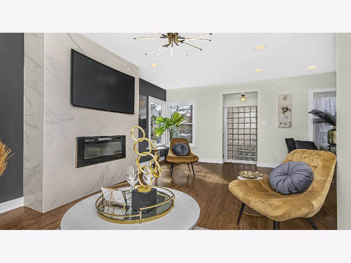 A classic Chicago bungalow with a chic modern twist. Functionality meets design in 6450 N Richmond with its 3 bedrooms, 3 baths and detached garage. Situated on a tree-lined street in West Ridge, this sturdy brick construction with limestone accents provide a rugged urban appeal; but enter through the concrete stairway, and find yourself welcomed in magazine-style contemporary living. A sun-filled living room featuring hardwood flooring, recessed lighting and a striking quartz accent wall with an electric fireplace is sure to be a favorite hang-out spot for your guests. Brand new windows drape each room in delicate natural light. The open concept allows a natural flow from living room to your formal dining and into your galley style kitchen. Gleaming quartz countertops and harmonizing mosaic backsplash complement the 42 inch white cabinets adorned with gold handles for sophisticated aesthetics. Stainless steel appliances, floating shelves and extra cabinets provide you with ample space for all your cooking essentials. Find convenience in the main floor bedroom with a walk-in closet, adjacent to the kitchen. A tastefully renovated full bath serves the main floor, adorned with floor to ceiling tile and gold accents. Head upstairs and utilize the unique extra storage spaces found alongside the staircase. The second-floor full bath features a bathtub and crisp clean subway tiles. You'll find your 2nd bedroom down the hallway followed by your primary suite which features a spacious walk in closet. Head down to the basement into your recreation room that can serve as an additional dwelling unit for in laws, entertainment center or home gym. Utilize the bonus room as a home office, kid's play room or storage. There is a separate utility and laundry room as well as a full bath with standing shower. The electrical and plumbing has been upgraded for maximum functionality. A brand-new AC condenser and water heater tops off our upgrade list. Head out the back through the mud room to find an expansive backyard ready to be fitted with your outdoor furnishing and grill for those summer get-togethers. Access your detached 2 car garage from the back alley. Enjoy the true melting pot that is West Ridge, with its vibrant mix of global cuisine and international markets. Savor in an abundance of green areas within minutes including Warren park for activities for every season: batting cages, golf course and skating rink. Your new chapter awaits.