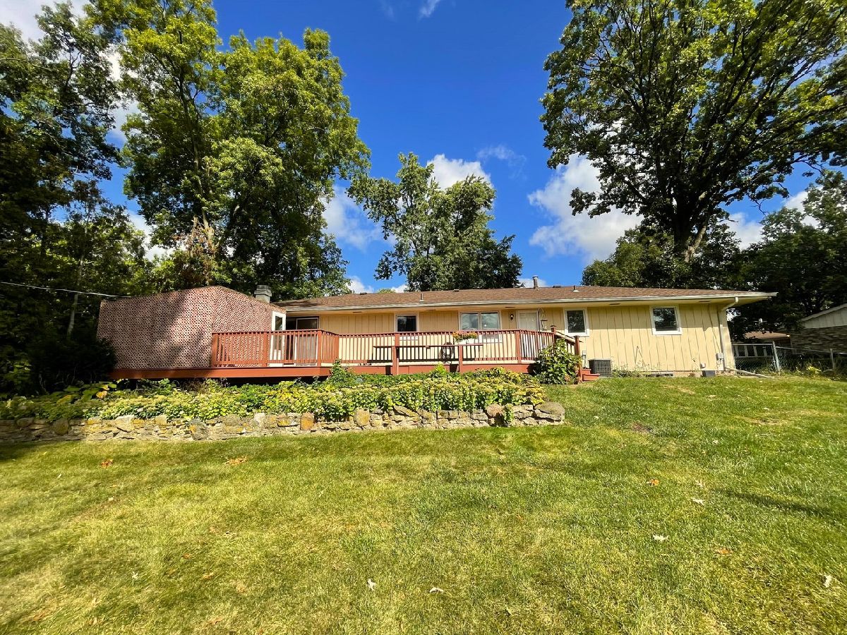 Welcome to this charming & spacious partial brick 3-bedroom, 1.5-bathroom ranch with a 2-car attached garage, all set on a generous 0.49-acre lot with the advantage of county taxes! Step inside to a cozy living room featuring a bay window that seamlessly flows into the open-concept kitchen, complete with a breakfast bar, pantry and plenty of cabinet space. Adjacent to the kitchen, the family room offers a warm atmosphere with a wood-burning fireplace and access to the expansive 33.10 x 11.10 wooden deck through sliding glass doors. The home boasts new carpet throughout. The hallway leads to the main bathroom with an XL soaking tub, plus hall closets for additional storage. All 3 bedrooms are conveniently located on the main floor, with the primary bedroom offering a shared half bath that connects directly to the kitchen area. Downstairs, the finished basement is designed for entertaining, featuring a spacious rec room with a pool table, a wet bar with a lounge area, craft room with closets, a game room and a utility room with ample storage. Outside, the deck overlooks a fenced backyard and you'll find a 19.11 x 12-foot shed with an impressive 11-foot ceiling height, perfect for additional storage or workspace. An attached room off the deck leads to a private, enclosed hot tub area with a new heater and pump, ideal for relaxation. Situated in the Rockford School District, this home is conveniently close to Cherry Vale Mall, I-90 and Bypass 20.