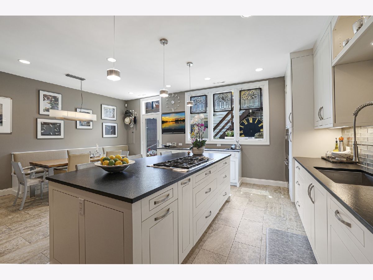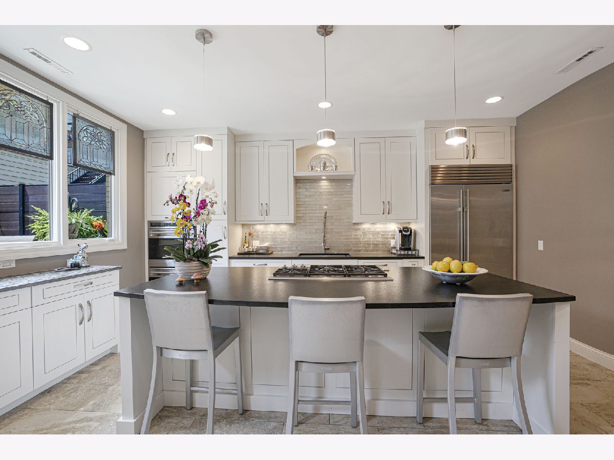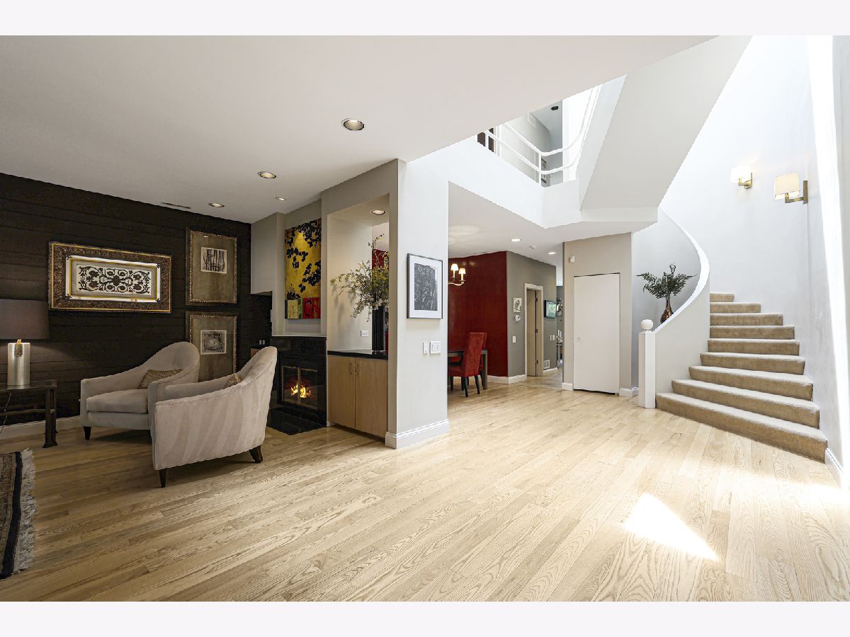 Rare opportunity to own in the most coveted neighborhoods in East Lincoln Park.This exquisitely designed 3 story, 4 bedroom, 3 1/2 bath home offers the perfect blend of luxury, privacy and access to all the best that is offered in the Howe-Orchard-Burling (HOB) area. With a gated entry into the front yard space you are welcomed with Classic Chicago architecture and elegant brick and limestone construction. As you enter, you are greeted with magnificent soaring ceilings and a mesmerizing spiral staircase leading up to each of the levels. Sunlight floods this open concept space of the entry, living room, and dining area. Each space is beautifully defined with curved walls and impressive custom wall treatments. The Living room and dining room share a see-through gas-lit fireplace that will make for cozy winter nights. A bright recently updated kitchen with top of the line stainless steel appliances-Wolf Double Oven, Wolf Range top in the extra large island, Sub Zero 42"Stainless Steel Refrigerator, Miele Dishwasher with custom panel and a wine refrigerator under the built-ins. Plus extra counter- space with tons of storage that overlooks the stunning patio and rooftop deck. Built-in banquette seating with additional storage is a great feature for entertaining too! The updated half bath is on the main level as well. Making your way up the stunning staircase to the second level is a great family room with plenty of space for entertaining friends and family. Extra thought went into every detail in the room with design, trim finishes, fireplace, built-ins and a wet bar with wine refrigerator. Filled with light from the huge New windows that can open wide to enjoy evening breezes and overlooks the custom patio and huge rooftop deck. Additionally you will find 2 spacious bedrooms, a full updated bathroom and large laundry room with newer washer and dryer all on the second level. Escape to the third level-the primary suite. A spacious bedroom filled with light from the large new windows and a huge-walk in closet with custom organizers. Dual H/H bathroom is updated and has a large custom shared shower with custom tile work. On the opposite end of the third level is another large bedroom easily converted to office /den or your own personal gym. To complete this exquisite home is an incredible outdoor space. Relax and enjoy on the completely rebuilt paver brick patio and large gated rooftop deck. It's landscaped with built- in irrigation system. Access to the huge 2.5 car garage with storage is right off the patio. The HOB neighborhood association offers unique security to the neighborhood with 24 hour video and patrol security! 2 NEWER furnaces, A/C and Hot water heaters. Walk to everything.. outstanding restaurants, theatres, parks, Lincoln park zoo, Chicago lakefront, grocery stores, sports facilities and so much more!