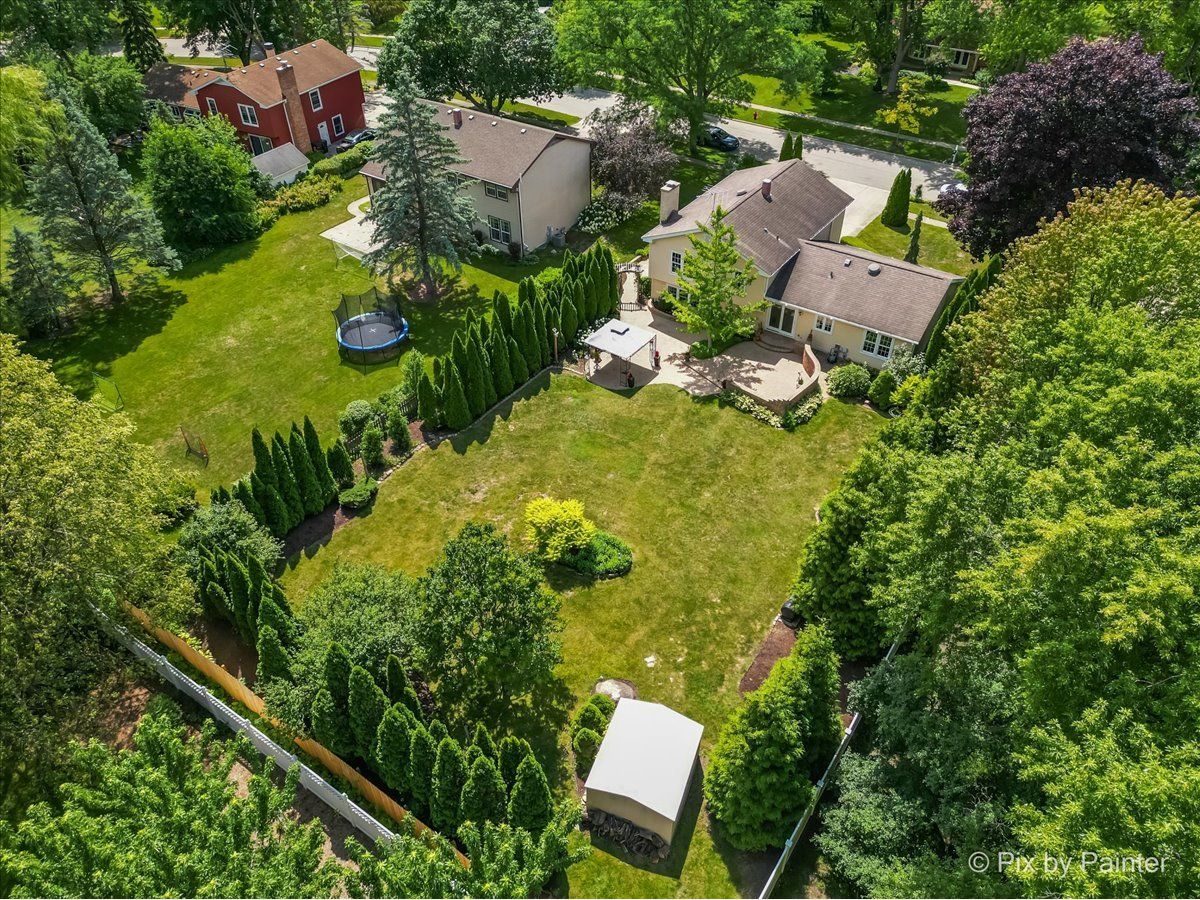 Meticulously maintained and updated 4 bedroom, 2.5 bathroom Greenbrier model home offers over 2600 square feet of spacious living. This gem sits on a large almost 1/2 acre lot, surrounded by mature trees and green arborvitae outlining the yard, offering privacy and tranquility. This is an excellent and rare opportunity to become a part of the highly sought-after Colony One subdivision. This beautiful home features hardwood floors throughout, fully updated kitchen and baths, custom closets, beautiful trim work, spacious living room, separate dining room. The updated bright kitchen features granite counters, custom KraftMaid soft close cabinets, under cabinet lighting, newer stainless steel appliances, and eating area for casual dining, with sliding patio door leading to a brick paver patio overlooking the serene and peaceful backyard. Take a few steps down to a large lower level family room with a beautifully updated stone fireplace, built-in shelving, and gleaming wood laminate floating floor. There's more! The partially finished basement features an additional large living area, storage room, and laundry room. The patio also features 220 amp service ready for a hot tub. Additionally, there is a gas line to the backyard with 110 amp service to the large shed. The large backyard is a true oasis, filled with delightful plantings, trees, and a spacious paver brick patio with gazebo perfect for entertaining. The 2-1/2 car attached garage is heated and offers plenty of storage space plus built in cabinetry. Outside you'll find gardeners delight with flowers and well established specimen trees and bushes, Weeping spruce, Gingko tree, Ivory silk lilac tree, Blackhaw Viburnum, and arborvitaes outlining fenced in yard. This home is also located in the original Four Colonies neighborhood, granting you exclusive access to fantastic amenities, including a community Clubhouse with a pool, exercise room, sauna, racquetball court, tennis courts, game room, and private playground. Excellent location, just minutes away from schools, downtown Crystal Lake, Main Beach, the Dole Mansion, Farmer's Market at The Dole, several golf courses including The Crystal Lake Country Club, South Elementary School, Lundahl Middle School, and as a resident free admission to the Three Oaks Recreation area. Within a short distance, you'll find the lake, beach, golf courses, and Lakeside Center, providing endless opportunities for leisure and recreation. Take a leisurely stroll on the quick bridge path to the beloved Dole Farmer's market and Main Beach. Don't miss this rare opportunity to experience the best of Crystal Lake living! Roof 2011. Kitchen 2008. All 3 bathrooms recently remodeled 2 with Bertch Cabinetry, 2003 - Simonton Windows with newly replaced sashes and screens May 2023, Siding 2003, 50 gallon gas water heater 2022, Furnace 2010, Refrigerator 2022, Bosch dishwasher 2020/2021, Stove and microwave 2007/2008, New shut off valve 2022, Paver bricks redone last year. French drain 2005. Please exclude the freezer and refrigerator in the basement and LED hanging lights in the garage. While the sellers are not aware of any issues with the property and this home has been well maintained, it is offered and sold AS IS.