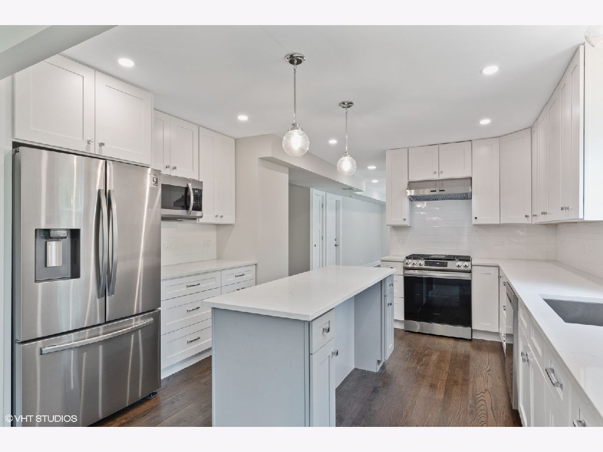 Rehab just completed on this wonderful 4 bed/2.1 bath two story colonial home on a picturesque street just mins away from downtown Deerfield. A thoroughly modernized curb appeal shines with new siding, garage door, and lighting. The main level features sunny living and dining rooms with large windows, an open layout kitchen, and a gracious family room anchored by a brick fireplace. The stunning new kitchen boosts loads of 42" white cabinetry, large island, quartz counters, subway tile back splash, stainless steel appliances and tastefully chosen lighting and hardware. The new powder bathroom will impress your guests with beautiful tiles and vanity. Entertaining is easy with an open flow from kitchen, family room and to the new back yard patio. 2nd floor offers plenty of space for everyone with 4 nicely sized bedrooms all with ample storage. The serene new hall bath features gorgeous tiles, custom double sink and a modern tub. The stunning primary bedroom suite features a new en suite bath finished in attractive contemporary tiles, dual vanity and soaking tub, as well as a spacious walk in closet. Side by side laundry is located conveniently on the 2nd floor. The redone lower level offers a recreation room with new carpet and lighting, as well as more storage space. A large patio and an expansive fenced backyard is great for relaxation and family fun. Other updates include new furnace and AC, hotwater heater, electrical, hardwood floors, carpet, trims, lighting and fixtures..This home is centrally located just a few min of walk to all that downtown Deerfield has to offer including Metra station and a long list of shopping and dining options.
