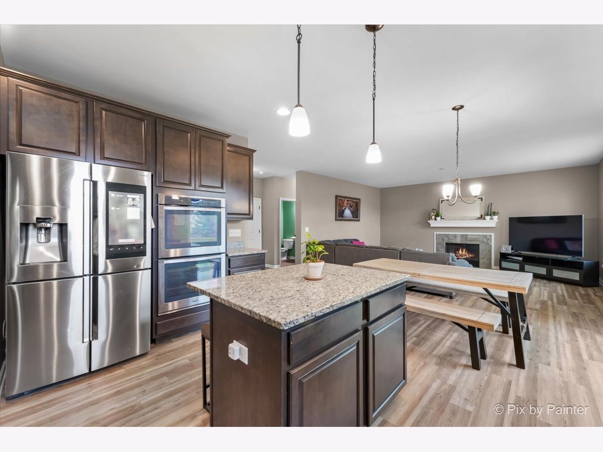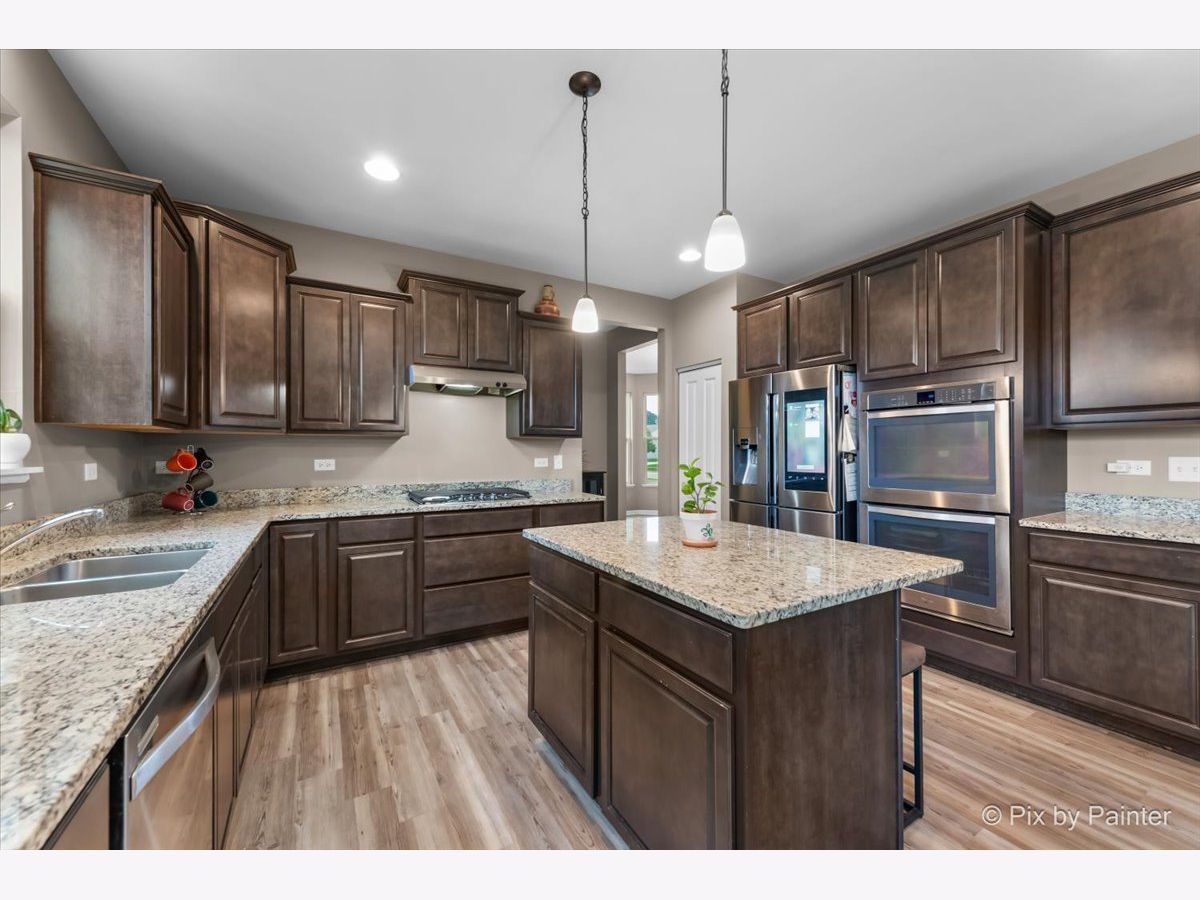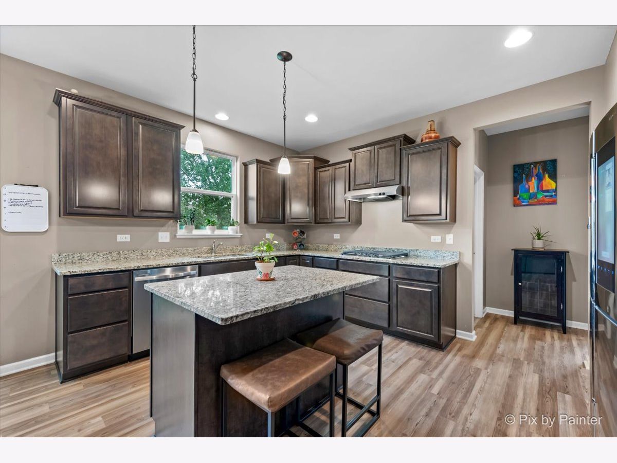 Spacious 5 Bedroom Home in the Sonatas Subdivision is Ready for the Market! 1st Floor Bedroom (has a Notch Out for Closet) or Office! Desirable 3 Car Garage Too! Open Floor Plan with 2 Story Foyer with Dark & Metal Railings! 9' Ceilings Throughout Main Floor! Entire 1st Floor with Brand New Wood Plank Vinyl Flooring in 2024! Formal Living Room & Dining Room With Bay Area & Notch Out to Fit Any Large Cabinet! Large Open Chef Style Gourmet Kitchen with Recessed Lights, Upgraded Staggered Dark Cabinets, Island with Breakfast Bar & Pendent Lights, Granite Countertops, Pantry & Stainless Appliances Including Cooktop, Double Oven, Dishwasher & Samsung Smart Refrigerator with Computer Screen for Meal Planning, etc! Eating Area Off of Kitchen Overlooks Family Room with Wood Burning Fireplace! Office/Den or 5th Bedroom Off of Kitchen with Notch Out to Finish a Closet! Convenient Powder Room & Laundry Room with Upgraded Washer & Dryer! LARGE Primary Bedroom with Tray Ceiling & Light (Can Convert to Ceiing Fan)! SPACIOUS Primary Bathroom with Elevated Double Sink Vanity Includes Plenty of Cabinets, Corner Soaking Tub & Separate Large Glass Shower Plus Walk-In Closet! All 3 Additional Bedrooms are Large & Each Have Ceiling Lights! Each Bedroom has Surprises Including a Chandelier, Fun Ship Themed Fort Type Bunk Bed & Rope Lighting! Hall Bathroom Also with Double Sinks! FULL UNFINISHED Basement with NEW Sump Pump in 2023 with So Much Potential to Add Another 1377 Square Feet! Step Out from the Eating Area to the Deck to Access the Back Yard! There is a Neighborhood Playground & Pond Too! Close to DESIRABLE Historic Woodstock Square with Restaurants, Shopping, Theater & Woodstock Opera House & Metra Train Station! You Will Fall in Love!