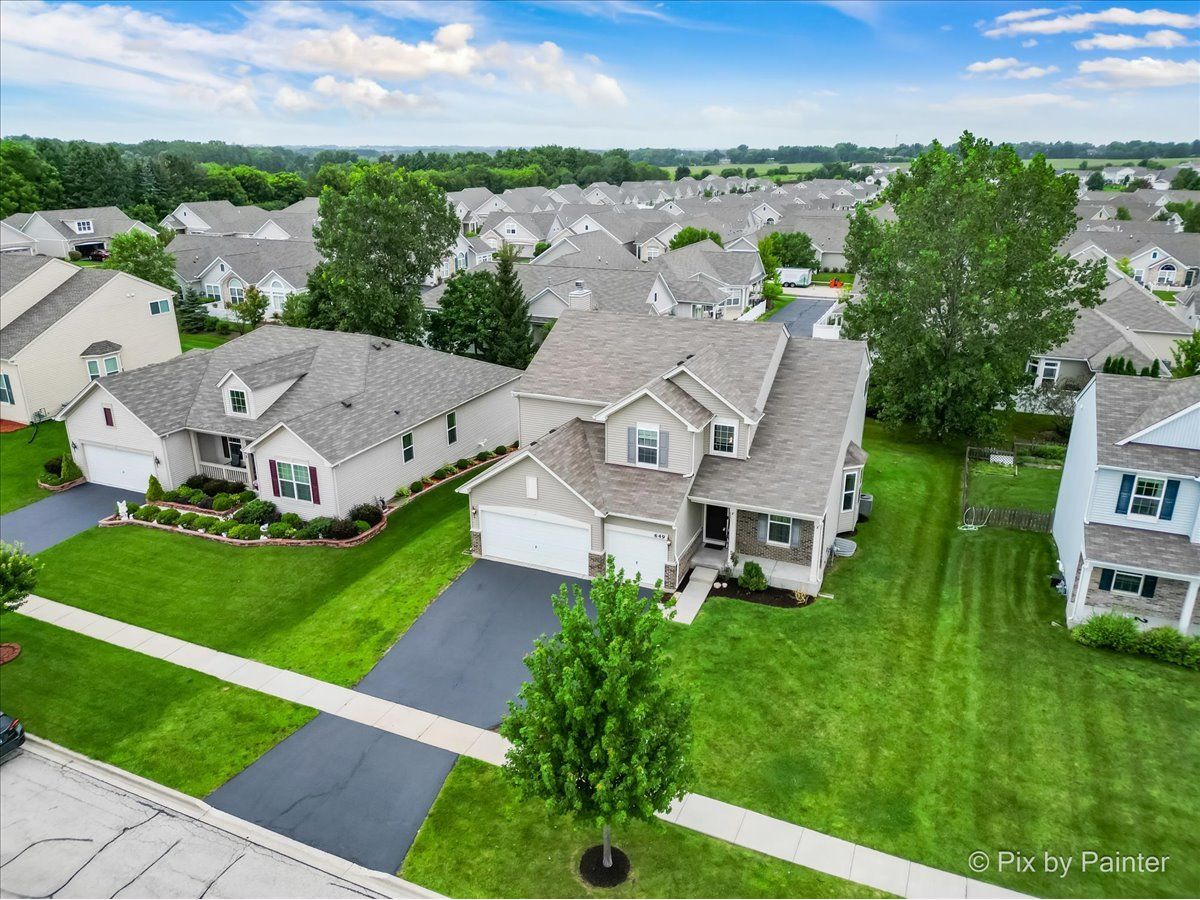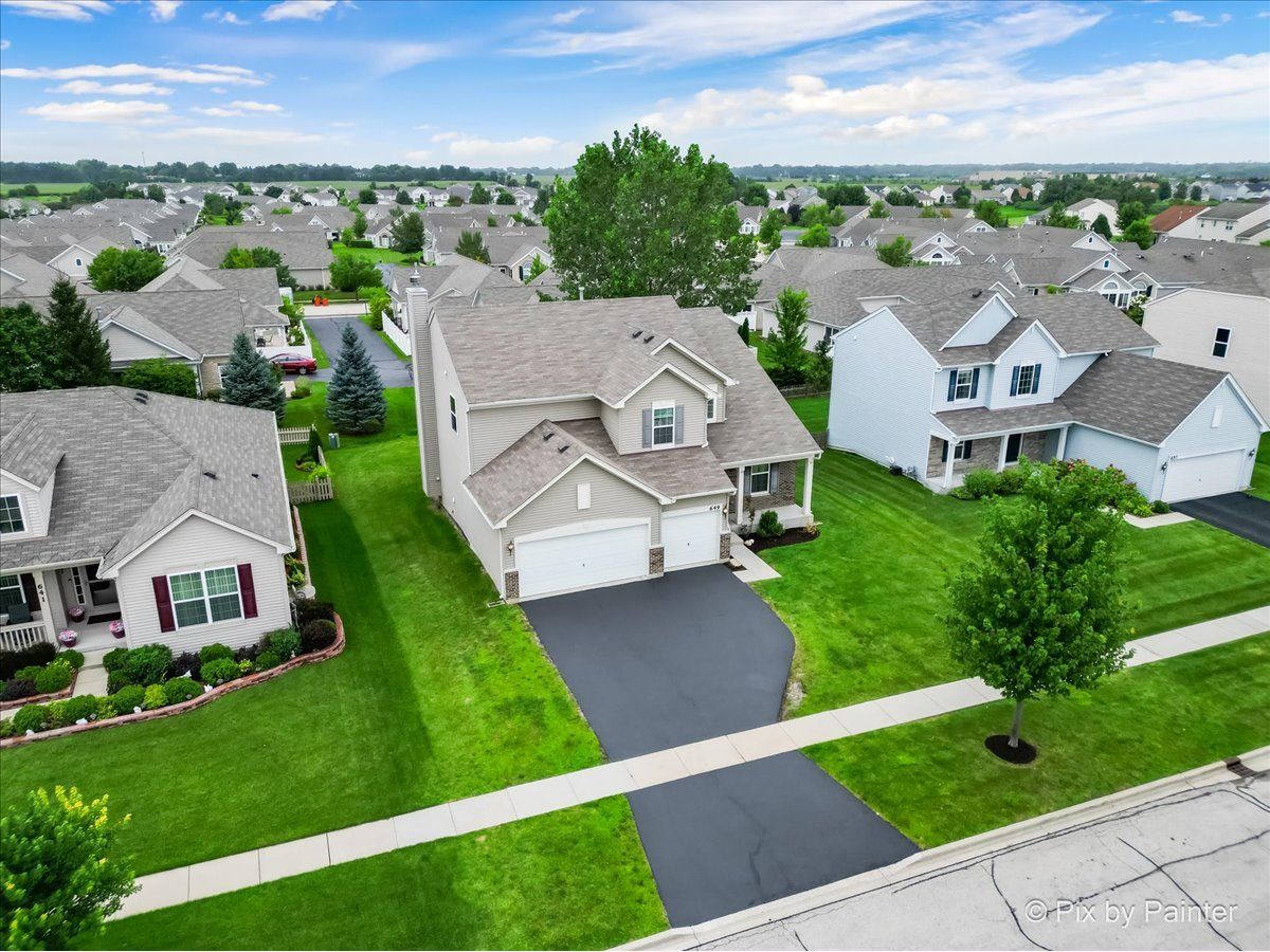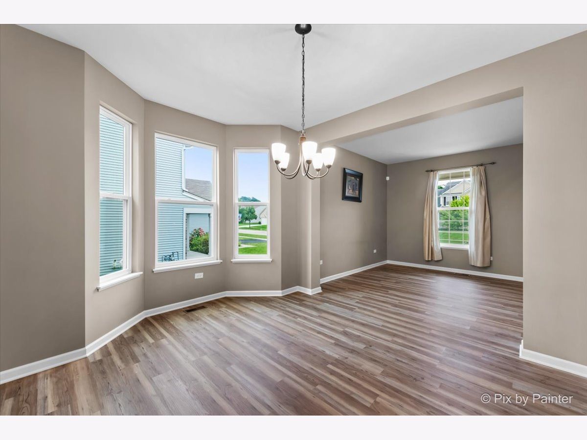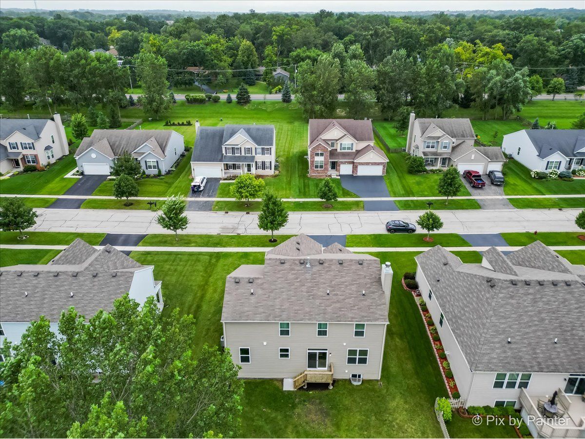 Spacious 5 Bedroom Home in the Sonatas Subdivision is Ready for the Market! 1st Floor Bedroom (has a Notch Out for Closet) or Office! Desirable 3 Car Garage Too! Open Floor Plan with 2 Story Foyer with Dark & Metal Railings! 9' Ceilings Throughout Main Floor! Entire 1st Floor with Brand New Wood Plank Vinyl Flooring in 2024! Formal Living Room & Dining Room With Bay Area & Notch Out to Fit Any Large Cabinet! Large Open Chef Style Gourmet Kitchen with Recessed Lights, Upgraded Staggered Dark Cabinets, Island with Breakfast Bar & Pendent Lights, Granite Countertops, Pantry & Stainless Appliances Including Cooktop, Double Oven, Dishwasher & Samsung Smart Refrigerator with Computer Screen for Meal Planning, etc! Eating Area Off of Kitchen Overlooks Family Room with Wood Burning Fireplace! Office/Den or 5th Bedroom Off of Kitchen with Notch Out to Finish a Closet! Convenient Powder Room & Laundry Room with Upgraded Washer & Dryer! LARGE Primary Bedroom with Tray Ceiling & Light (Can Convert to Ceiing Fan)! SPACIOUS Primary Bathroom with Elevated Double Sink Vanity Includes Plenty of Cabinets, Corner Soaking Tub & Separate Large Glass Shower Plus Walk-In Closet! All 3 Additional Bedrooms are Large & Each Have Ceiling Lights! Each Bedroom has Surprises Including a Chandelier, Fun Ship Themed Fort Type Bunk Bed & Rope Lighting! Hall Bathroom Also with Double Sinks! FULL UNFINISHED Basement with NEW Sump Pump in 2023 with So Much Potential to Add Another 1377 Square Feet! Step Out from the Eating Area to the Deck to Access the Back Yard! There is a Neighborhood Playground & Pond Too! Close to DESIRABLE Historic Woodstock Square with Restaurants, Shopping, Theater & Woodstock Opera House & Metra Train Station! You Will Fall in Love!