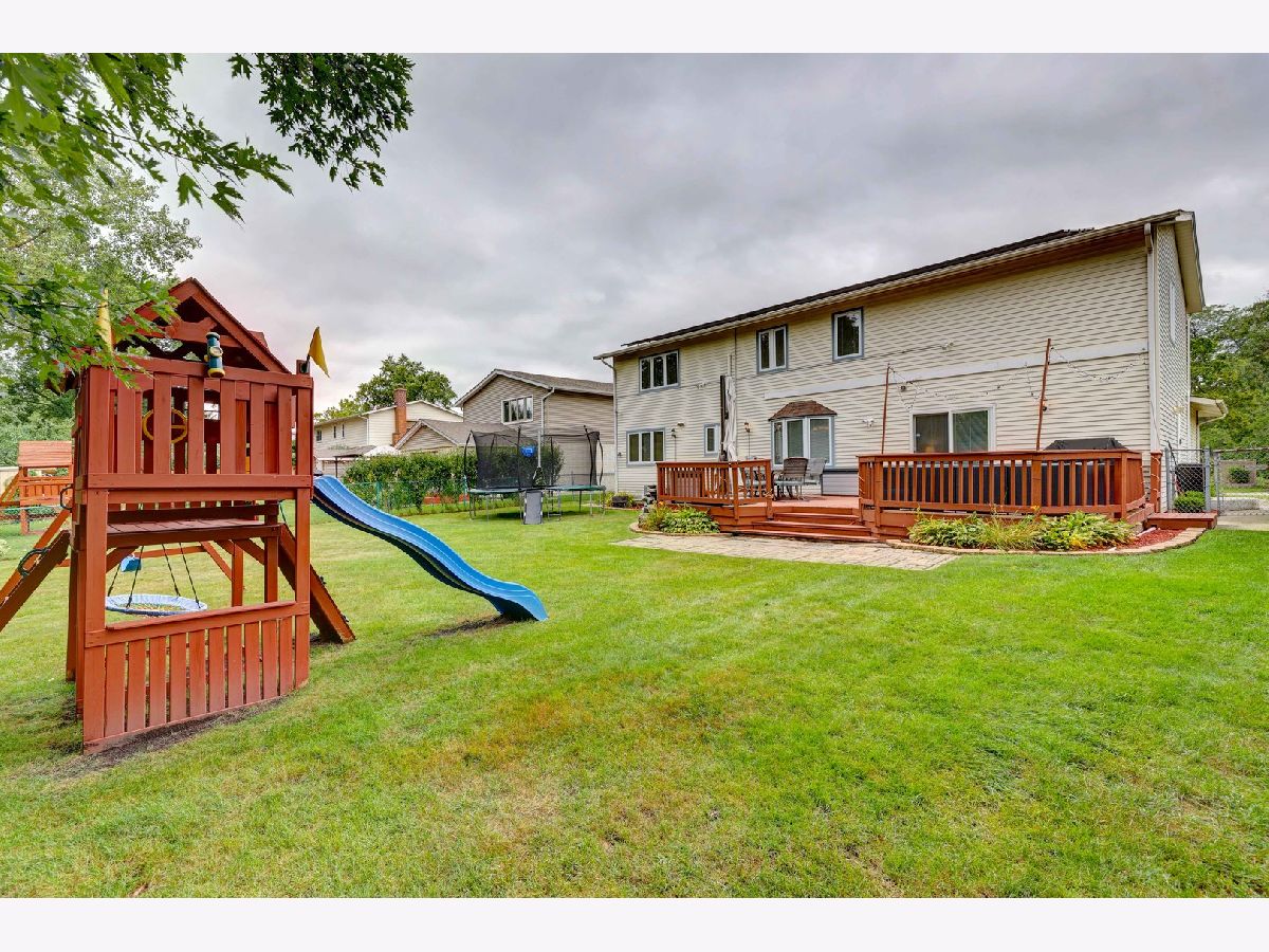 Spacious, Updated Colonial with Full Finished Basement & Paid-Off Solar Panels! Welcome to this beautifully updated large 5-bedroom, 2.5-bath home, just minutes from Downtown Palatine, the Park District Pool, and Deer Grove Forest Preserve. With the basement, your new home is close to 3600 square feet. Step inside to fresh paint, upgraded trim, new lighting, and elegant crown molding throughout. The main level features a bright living room and formal dining room, flowing into a modern kitchen with 42" cabinets, a large pantry, granite countertops, and stainless steel appliances. Adjacent to the kitchen, the inviting family room has a cozy fireplace and Andersen slider that opens to a 20x20 deck-perfect for outdoor entertaining-overlooking a serene, south-facing backyard with mature trees. In addition to its many upgrades, the home comes with solar panels that will be paid off in full at closing, offering energy savings for years to come! A convenient mudroom/laundry room is just off the attached garage. Upstairs, you'll find five spacious bedrooms, including a primary suite with a massive walk-in closet and a private en-suite bath. The full finished basement provides extra living space and abundant storage. This home has it all-don't miss your chance to see it today!