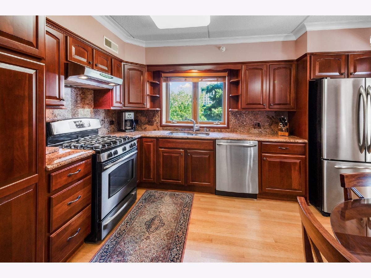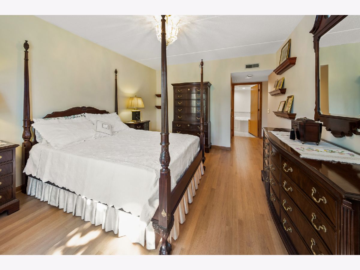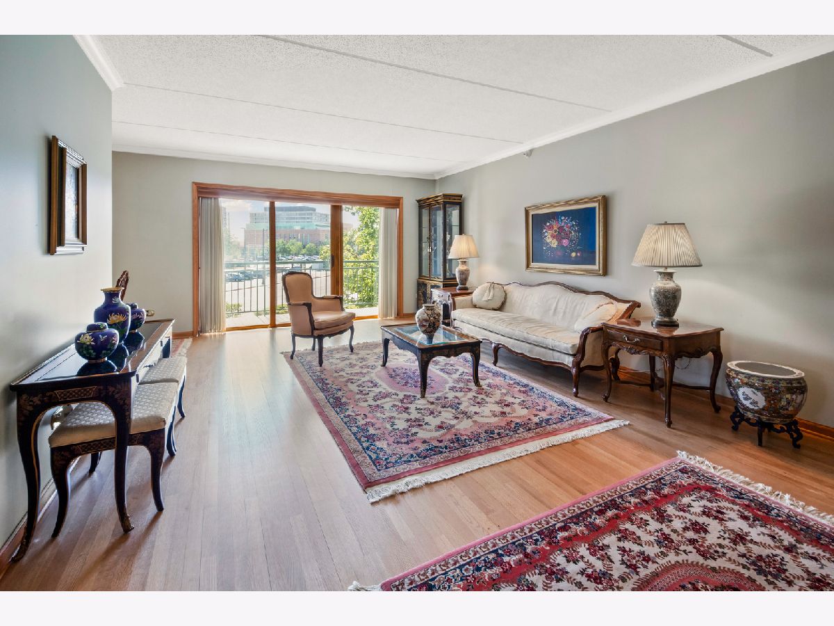 Rarely available, spacious and sun-filled three-bedroom, two-bath condominium with two heated garage spaces and two large storage units at the beautifully maintained and highly sought after River Pointe Condominiums. This property truly checks all the boxes with bright and generous room sizes; a large balcony accessed by sliding glass windows in the living room; a well-equipped eat-in kitchen with beautiful cabinetry, stainless appliances and granite countertops; a primary suite with walk-in closet, a double vanity sink, jacuzzi soaking tub and separate shower; a dedicated in-unit laundry room; custom built-in bookshelves and entertainment center in the 3rd bedroom/office; pristine hardwood flooring and crown moulding; central heat and A/C and various other tastefully curated amenities throughout. Situated on well-manicured grounds in a secure elevator building, the property is located in downtown Des Plaines; in very close proximity to the Metra commuter train, O'Hare airport, various expressways, library, restaurants, shopping and entertainment.